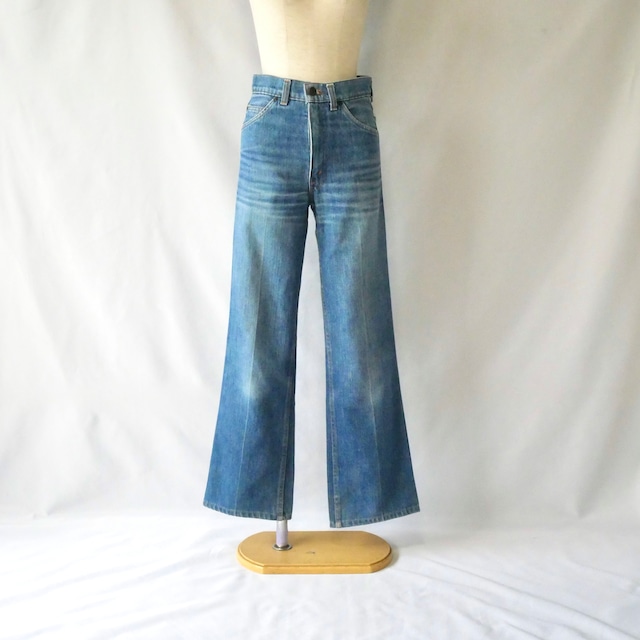 -     70s madein USA levis 646 bellbottom denimpant 70年代 リーバイス アメリカ製 646 ベルボトム デニムパンツ ¥23,980 76年製USA製リーバイス646ベルボトムデニムパンツです。 膝から広がるシルエットが魅力的で、薄めのカラー&短め丈で女性がカジュアルに着やすい一本です。 ヴィンテージのベルボトムもなかなか見つかりませんのでお探しの方おすすめです。 ボタン裏8 総丈88cm 股下65cm ウエスト幅36cm 前股上28cm 後ろ股上35cmワタリ幅28cm 裾幅23cm サイズ表記29×30?(薄くなっておりちゃんと見えません) 実寸 28×25.5 モデル身長 164cm *リーバイスオレンジタブ切られています。 画像ご確認ください。 <採寸について> *寸法は全て平置きで採寸しています。 総丈→ウエストサイドから裾計測 ウエスト→ウエスト部分端から端計測(実際のウエストサイズは2倍でお考え下さい) 股下→股部分から裾計測 股上→前後ウエストから股計測 ワタリ幅→股部分から太もも幅計測 人間の手で1点1点メジャーで計測している為、多少の誤差が生じる可能性がございます。 <コンディションについて> 当店の商品は一部のレザー商品を除いて全て洗濯済みです。 当店では古着に慣れていないお客様や、慣れていても本当なら直接見て買いたい方も安心してお買い物いただけるよう、ダメージなどはなるべく詳しく、分かりやすい画像で撮影しておりますが、細かいダメージに関しては見落とす事もございます。 サイズやダメージなど、ご不安がございましたら、お気軽にお問い合わせ下さいませ。 vintage ビンテージ ヴィンテージ 古着 アメリカ古着 アンティーク レトロ 60s 70s 80s 90s USA NO.151