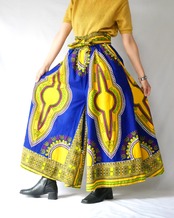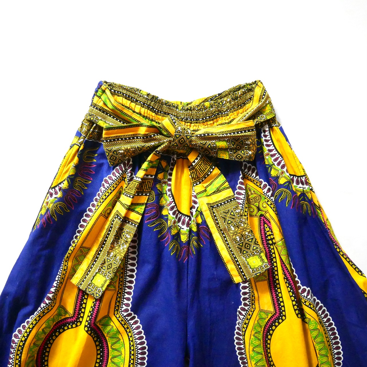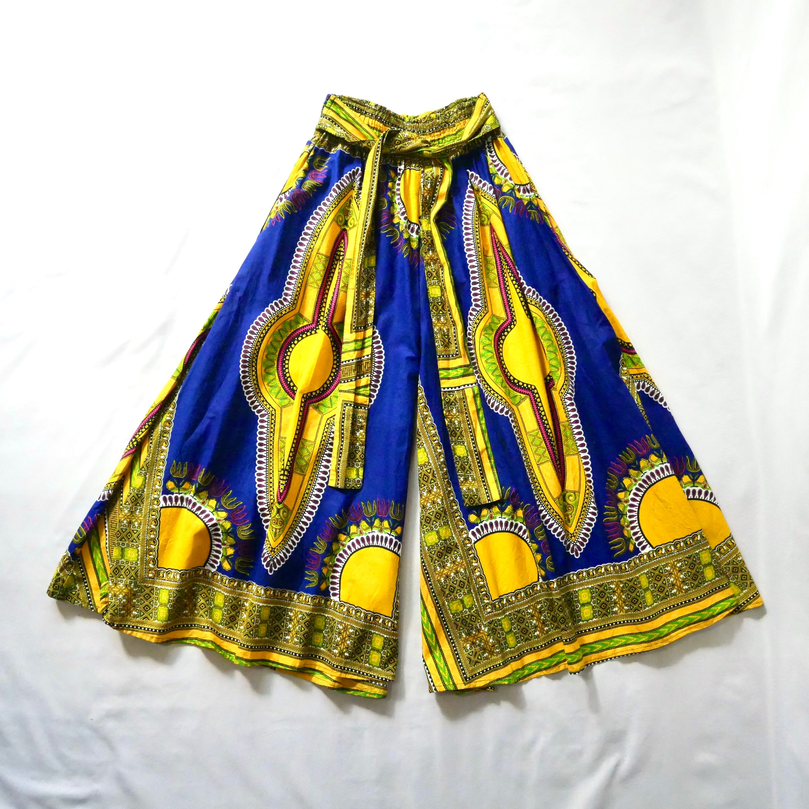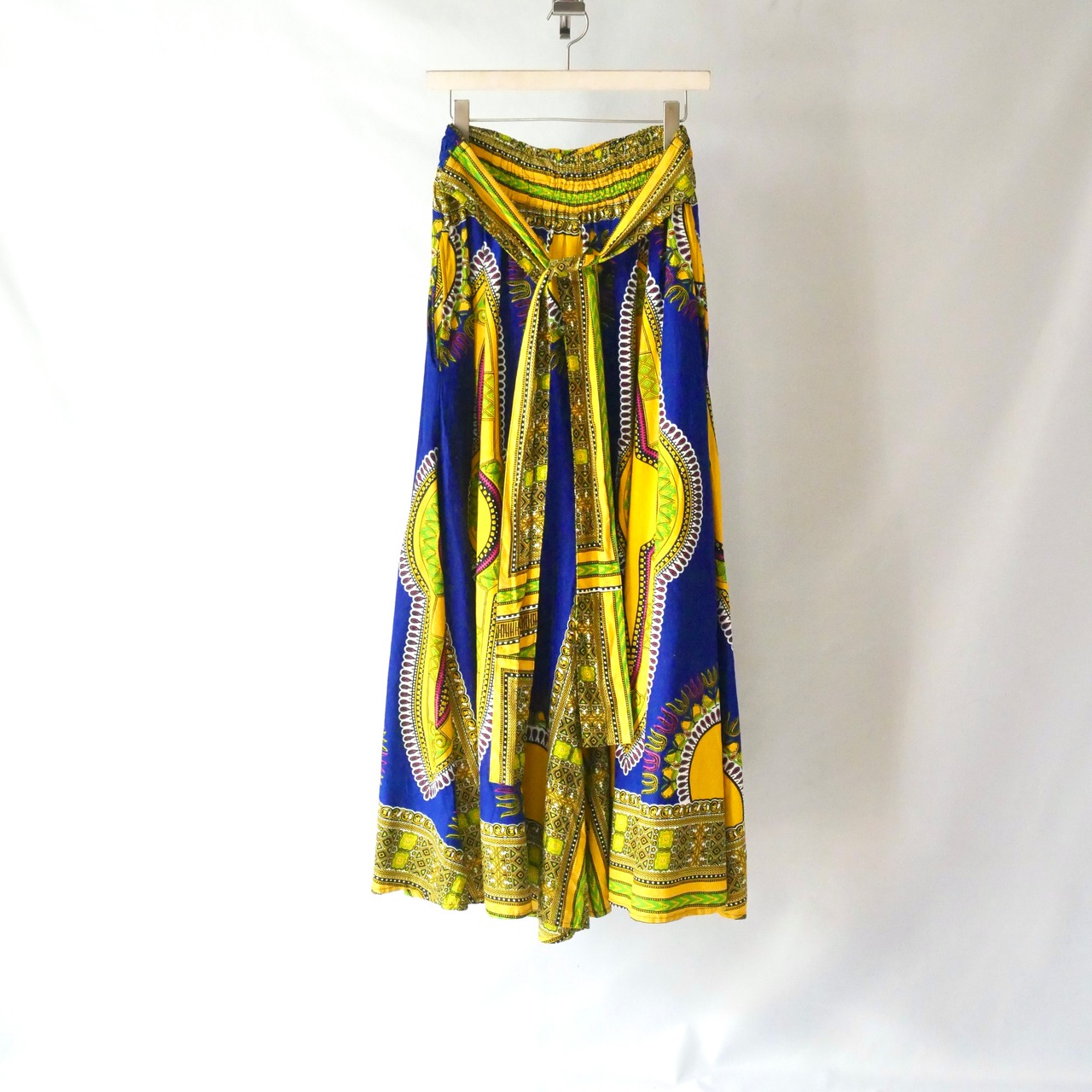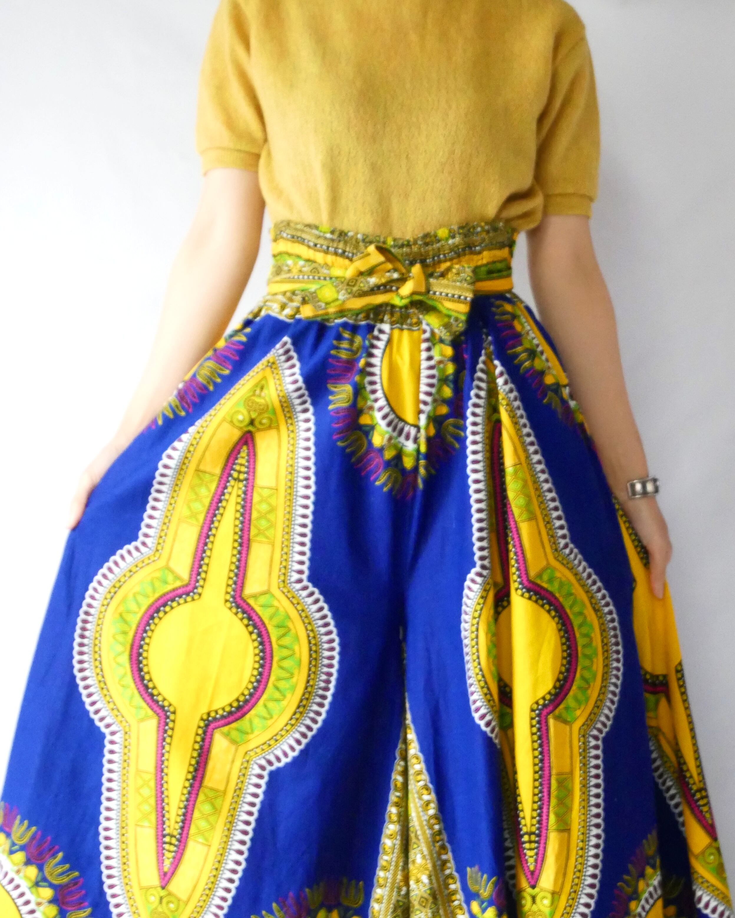 パッキリとしたカラーリングと柄で目を引く80年代頃のアフリカンバティックワイドパンツです。