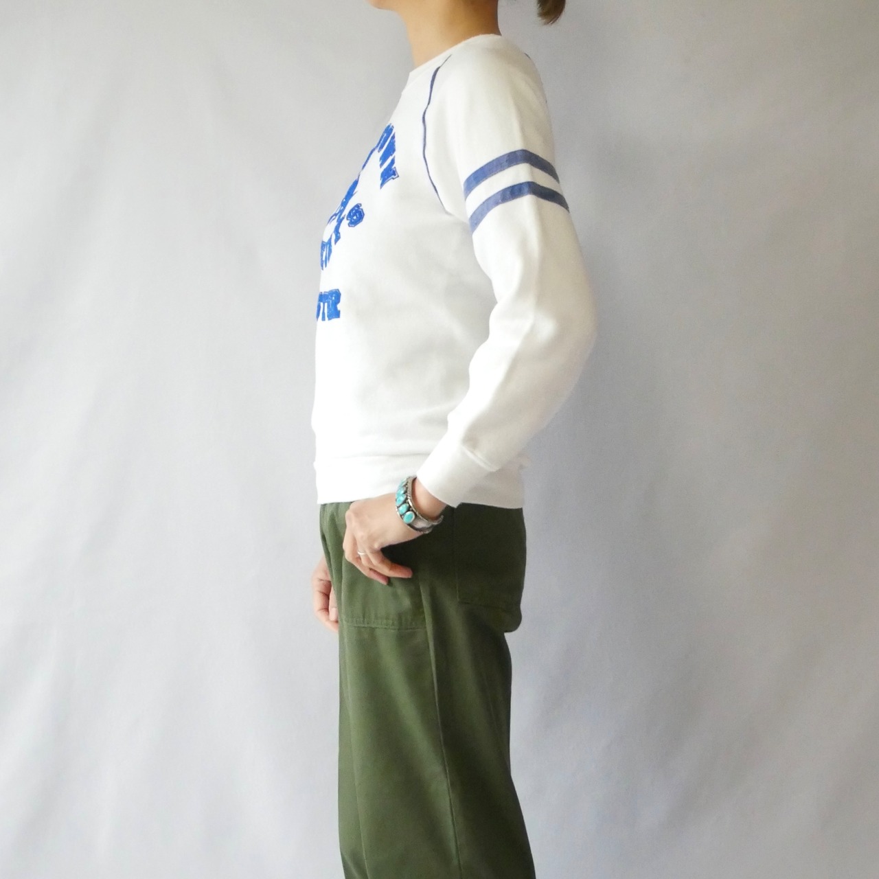 鳥のプリントに3段ロゴ、ブルーのラインも可愛らしい白ベースのスウェットです。