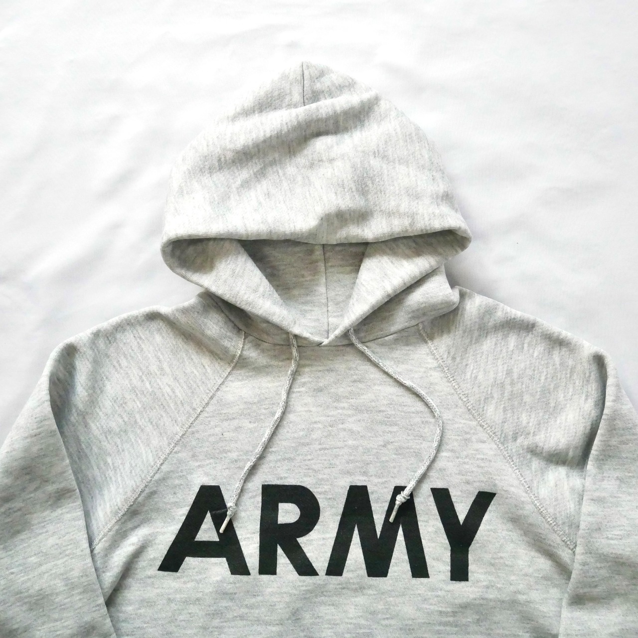 80年代USA製ボディ、定番のARMYプリントのグレースウェットパーカーです。