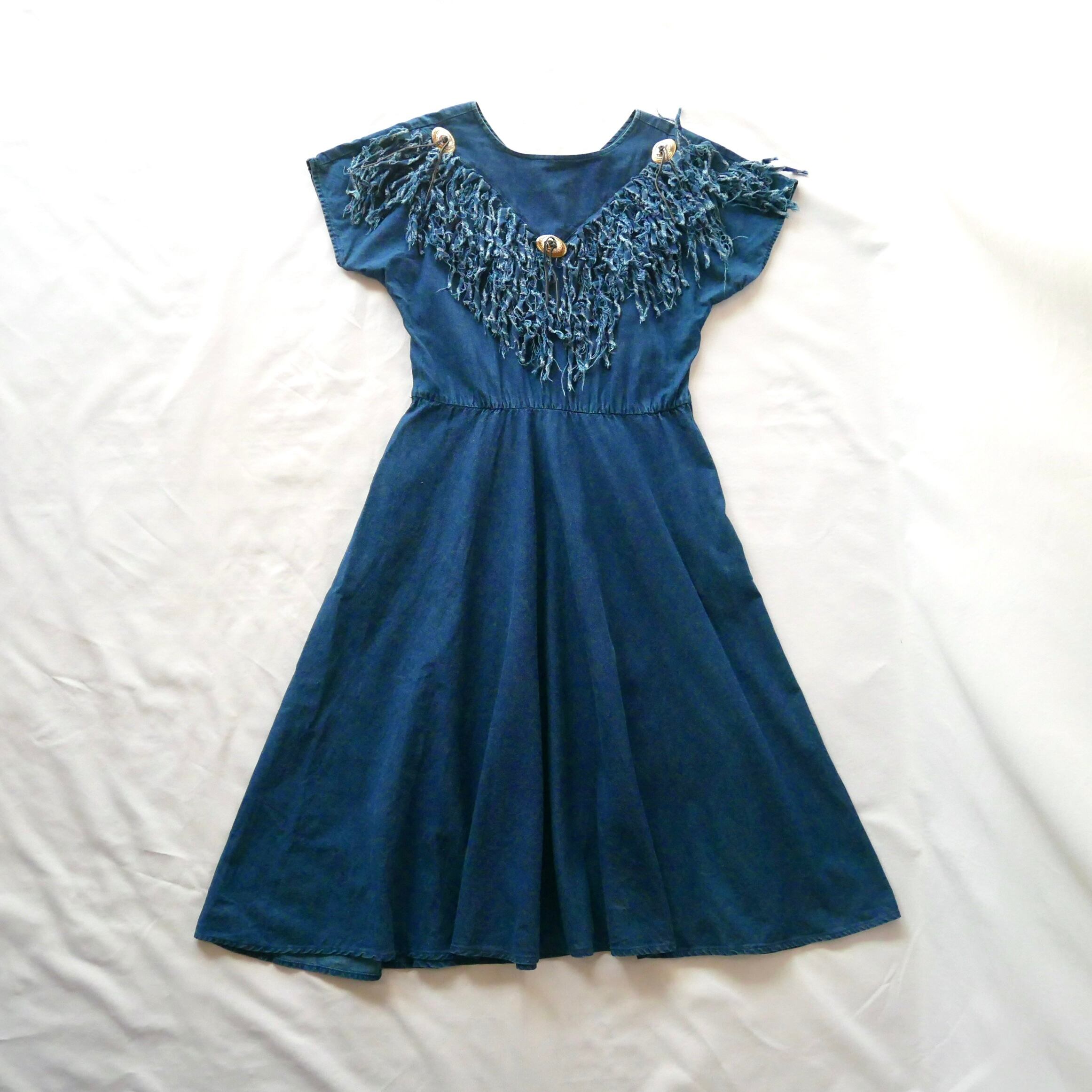 Made in USA 80s vintage denim fringe onepiece アメリカ製 80年代 ヴィンテージ フリンジ コンチョ付き デニムワンピース