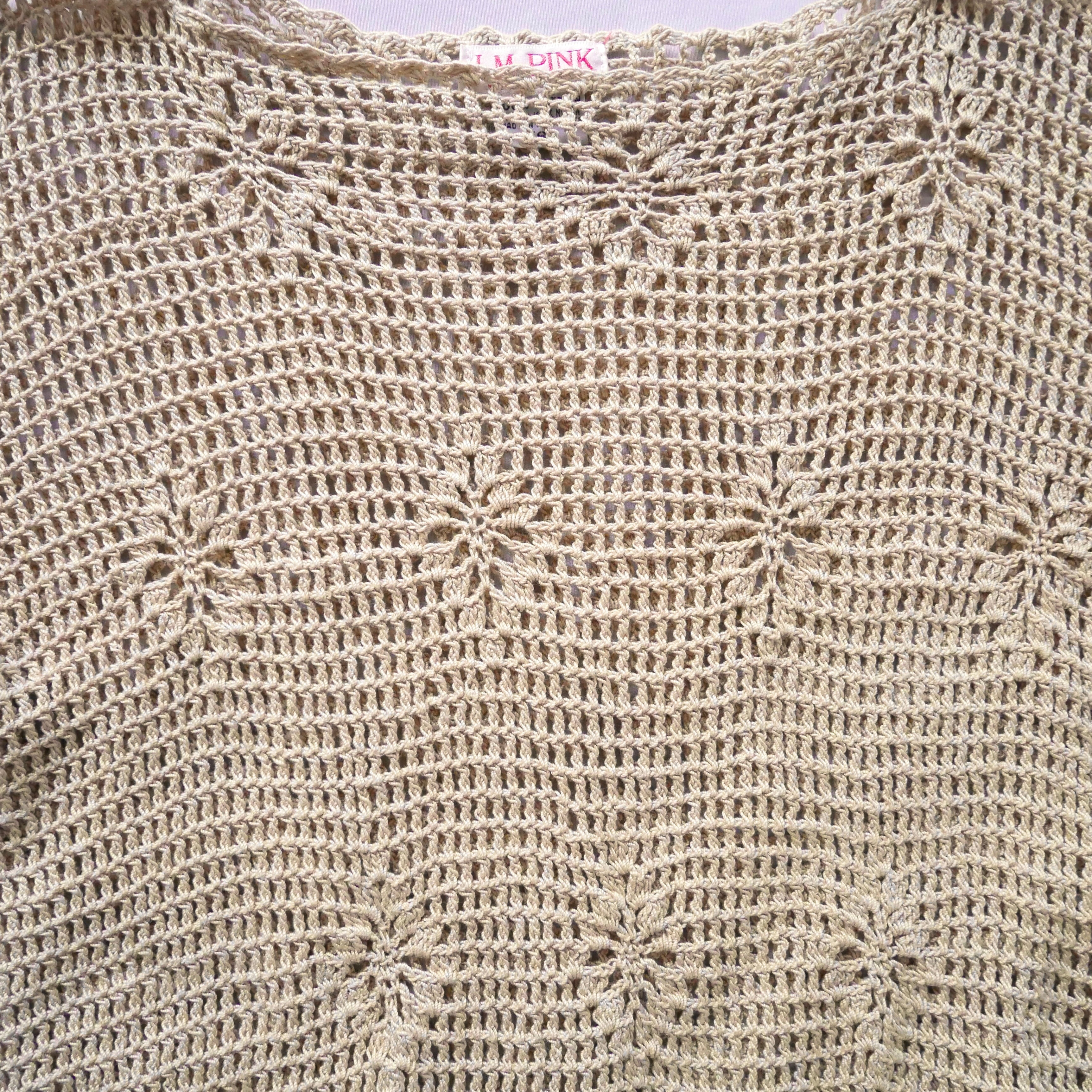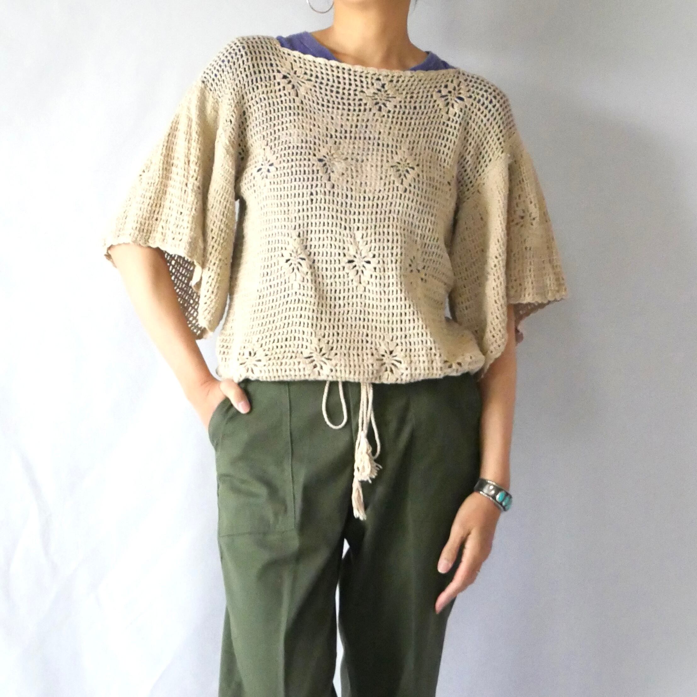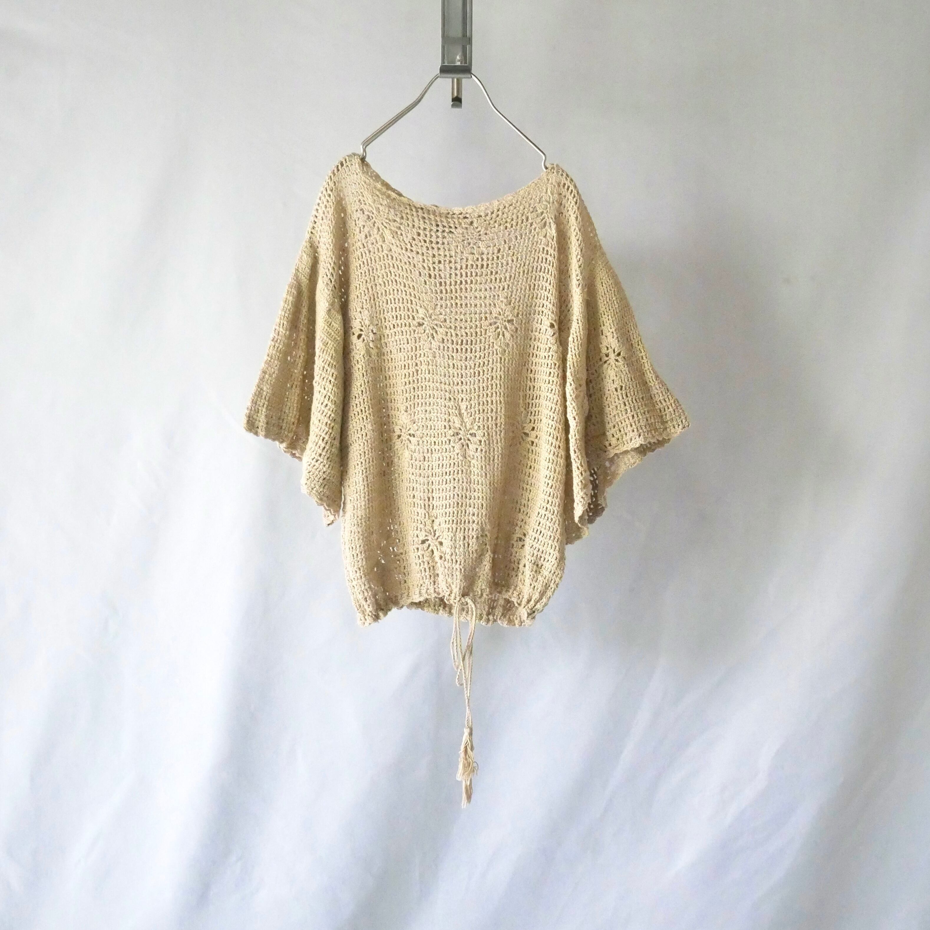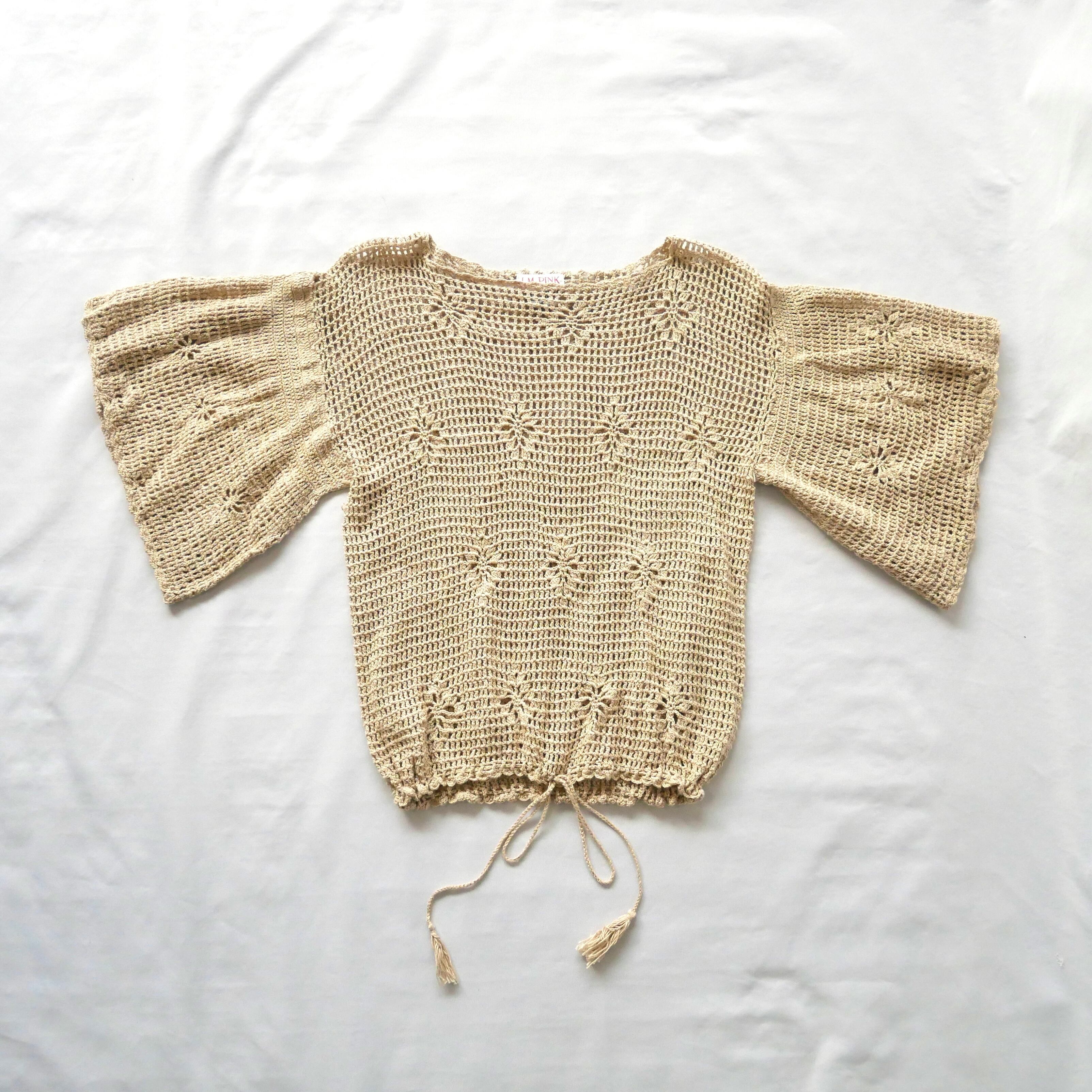 80s hand crochet beige tops 80年代 ベージュ 鍵編み クロシェ ベルスリーブトップス