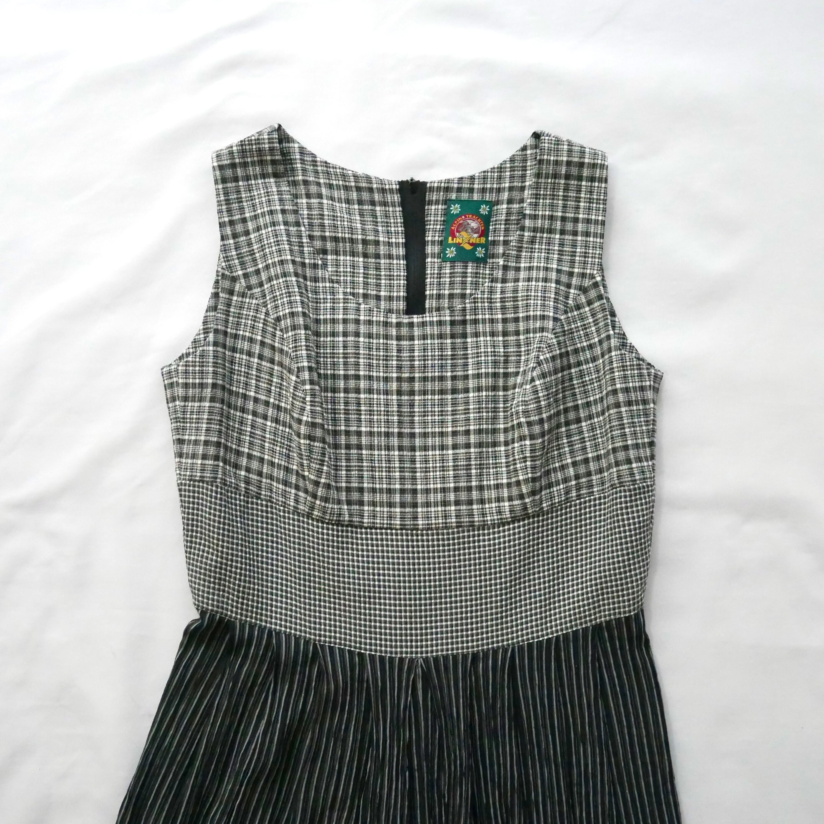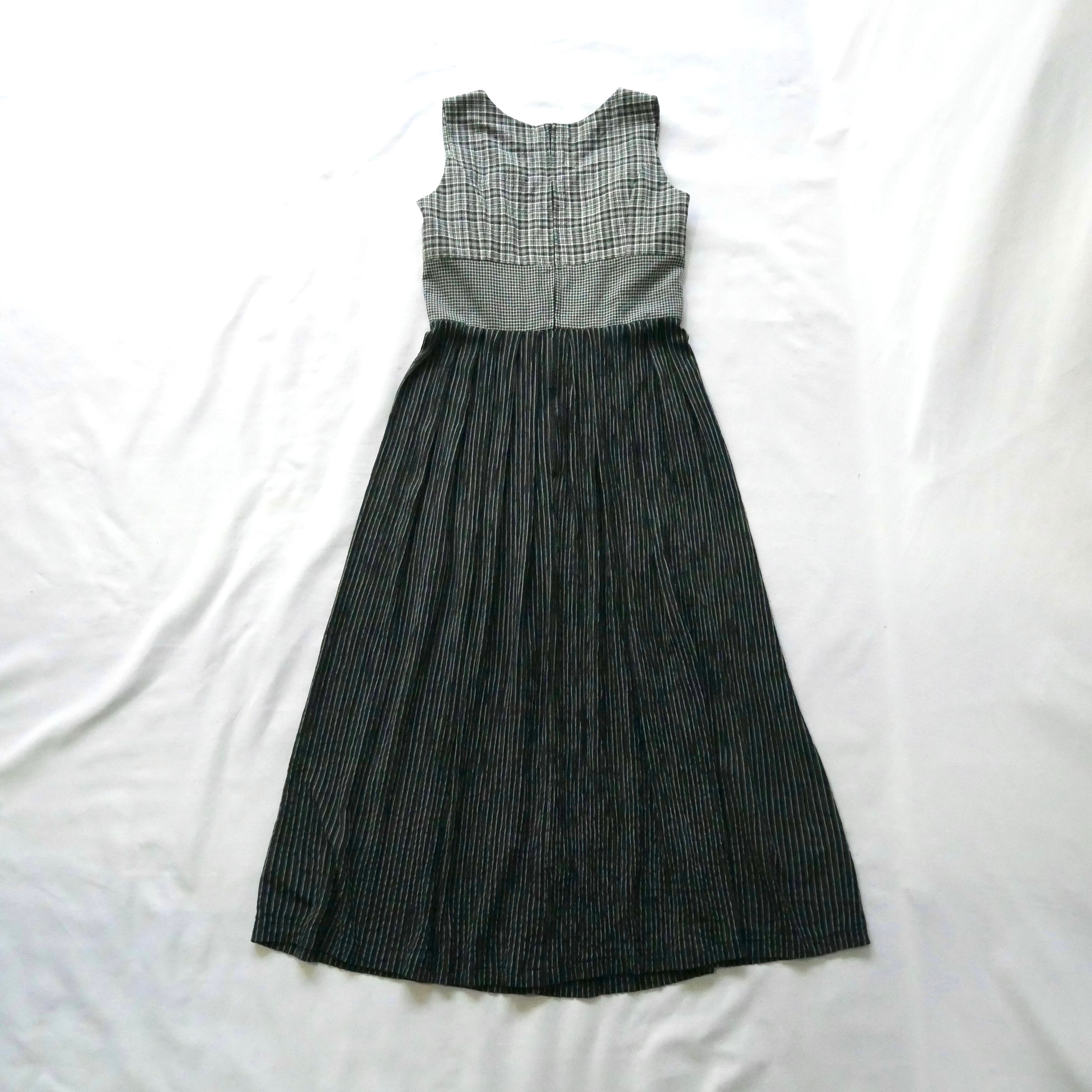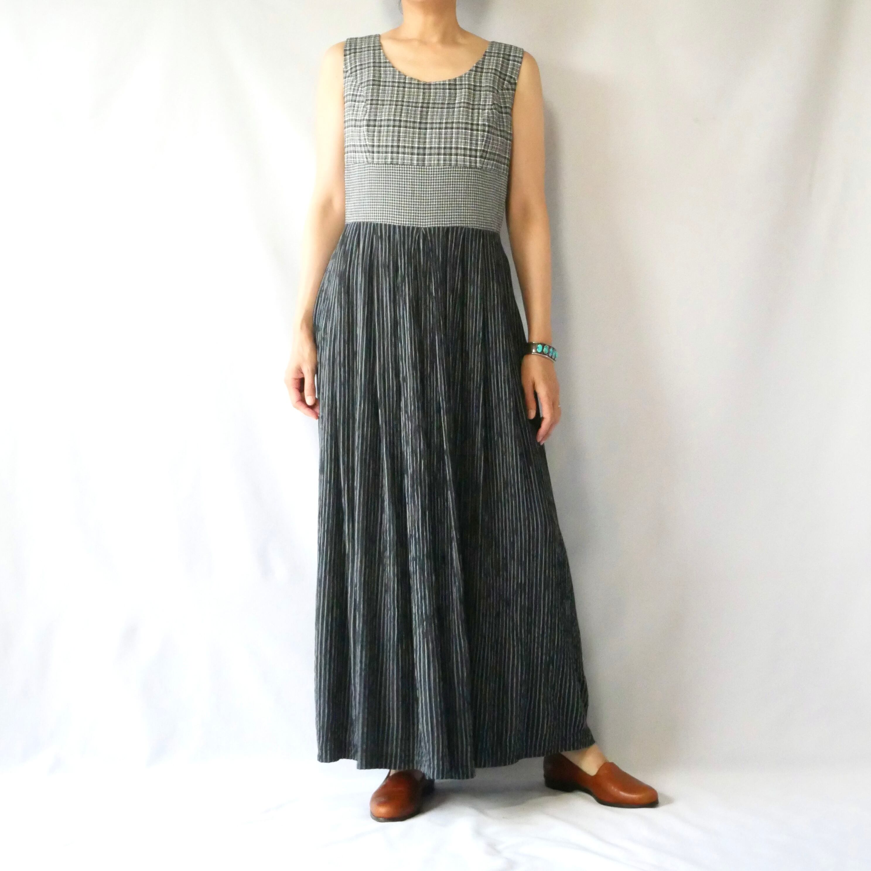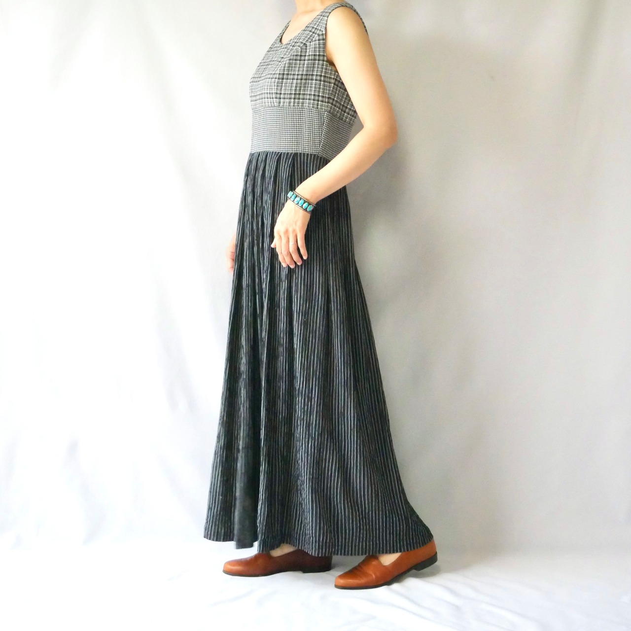 Euro vintage monotone check stripes onepiece ユーロヴィンテージ モノトーン チェック ストライプ マキシワンピース | &Dorothy used&vintage 古着屋