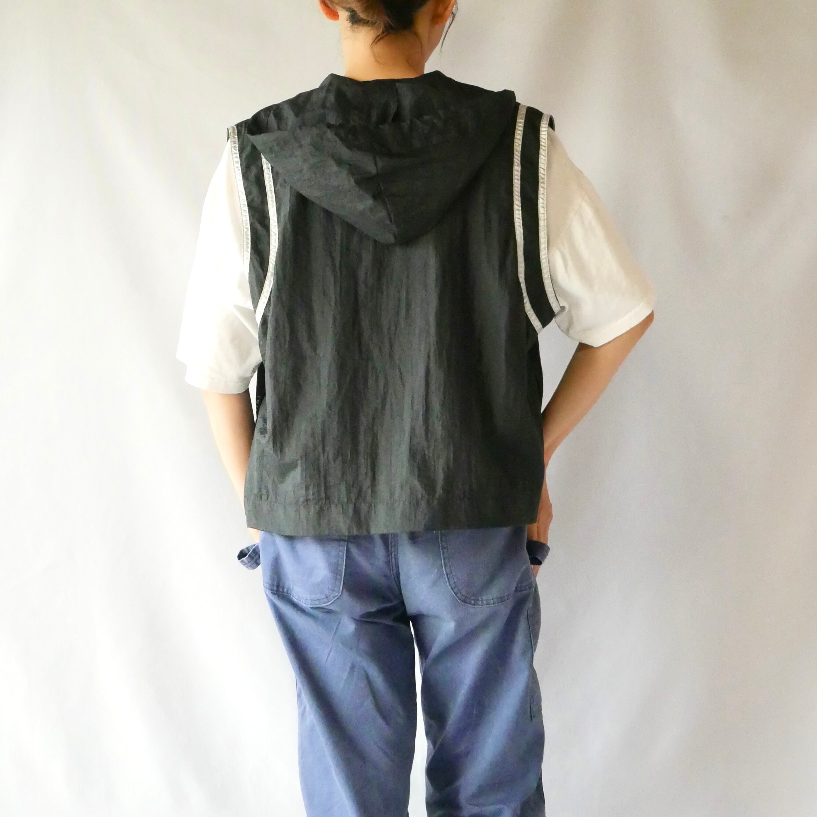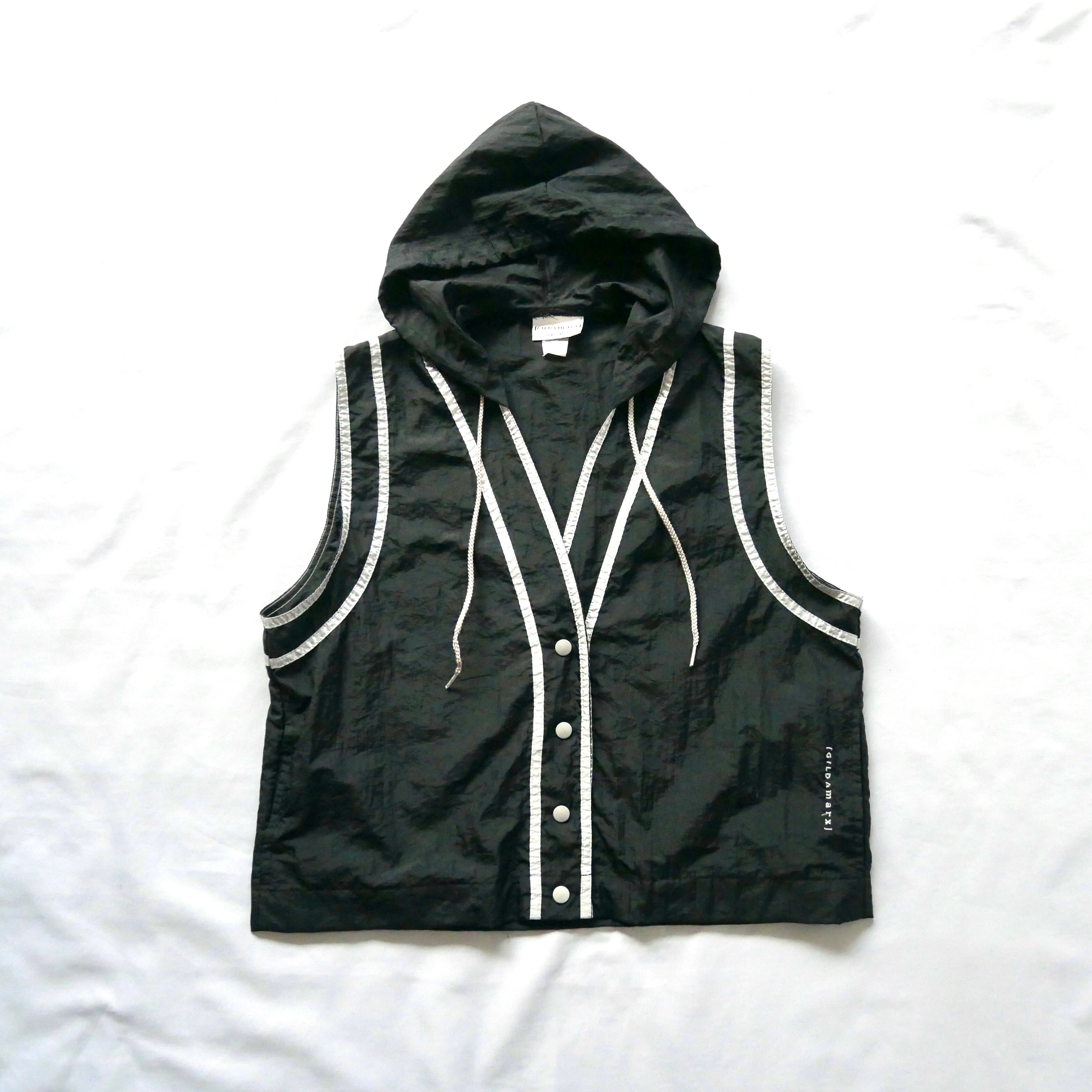シャカシャカ素材にフード付きで90s感満載のUSA製ベストです。
