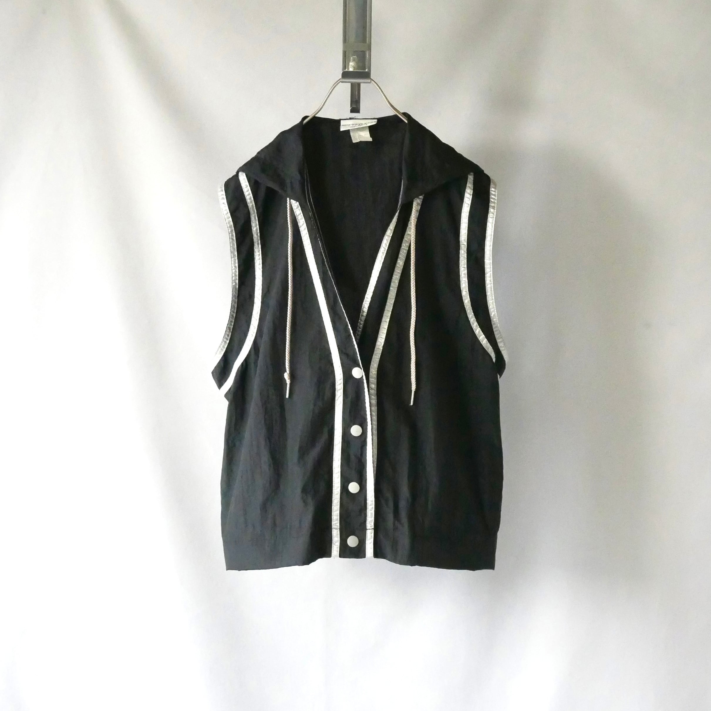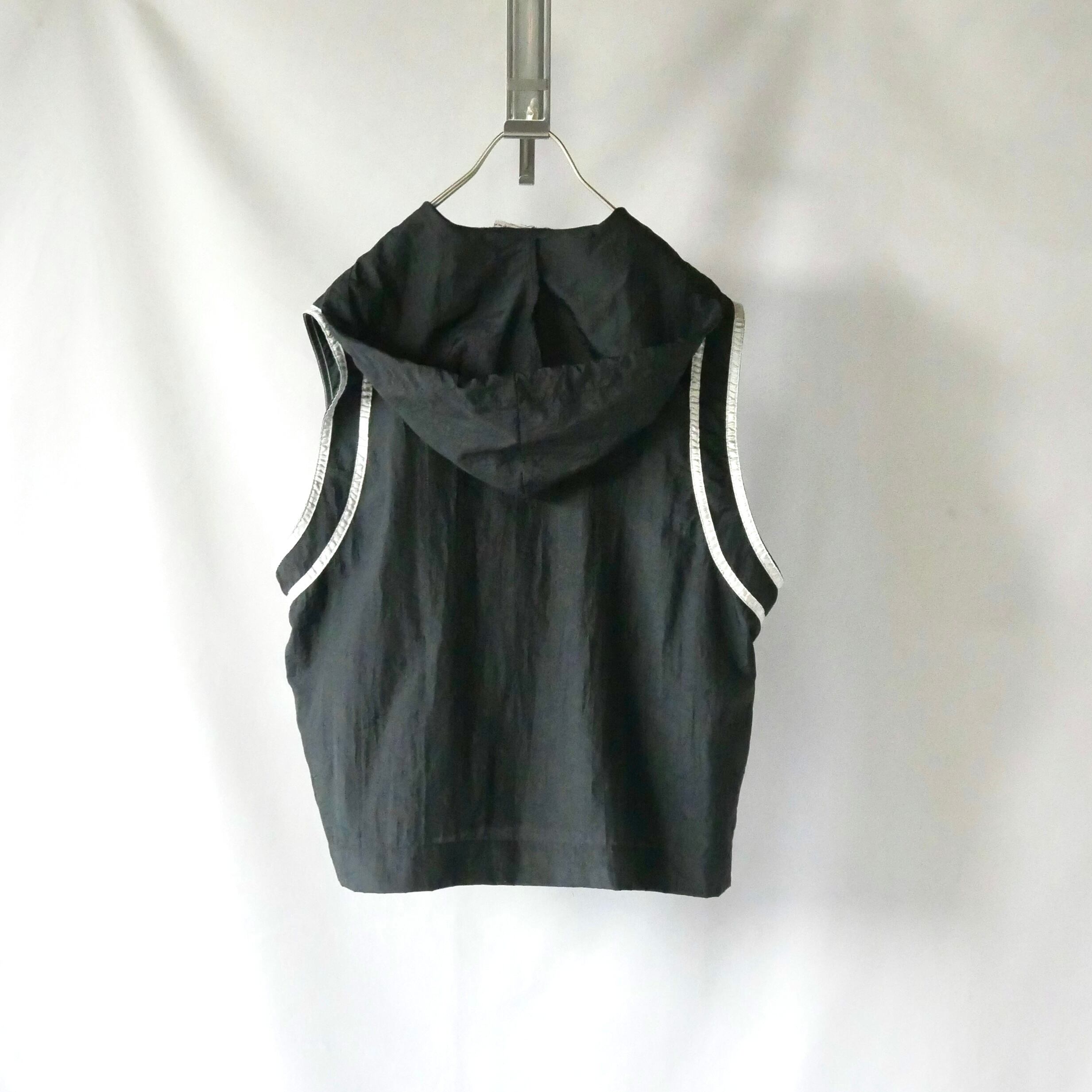 90s madein USA GILDA MARX nylon hooded vest 90年代 アメリカ製 黒 ライン入り フード付き ナイロンベスト