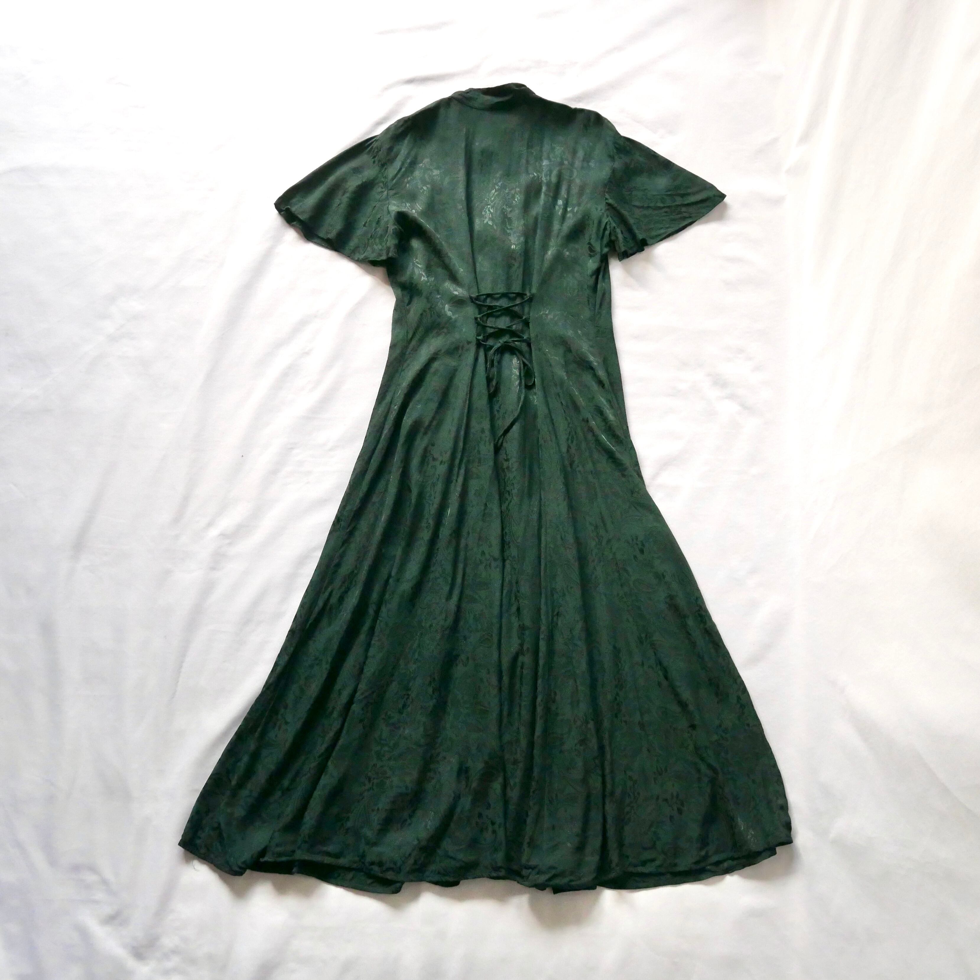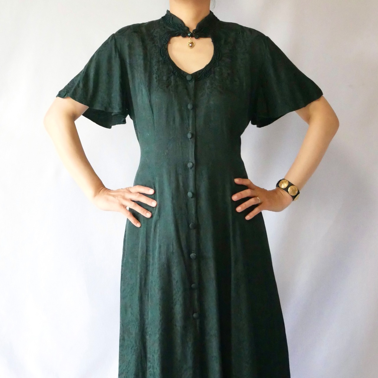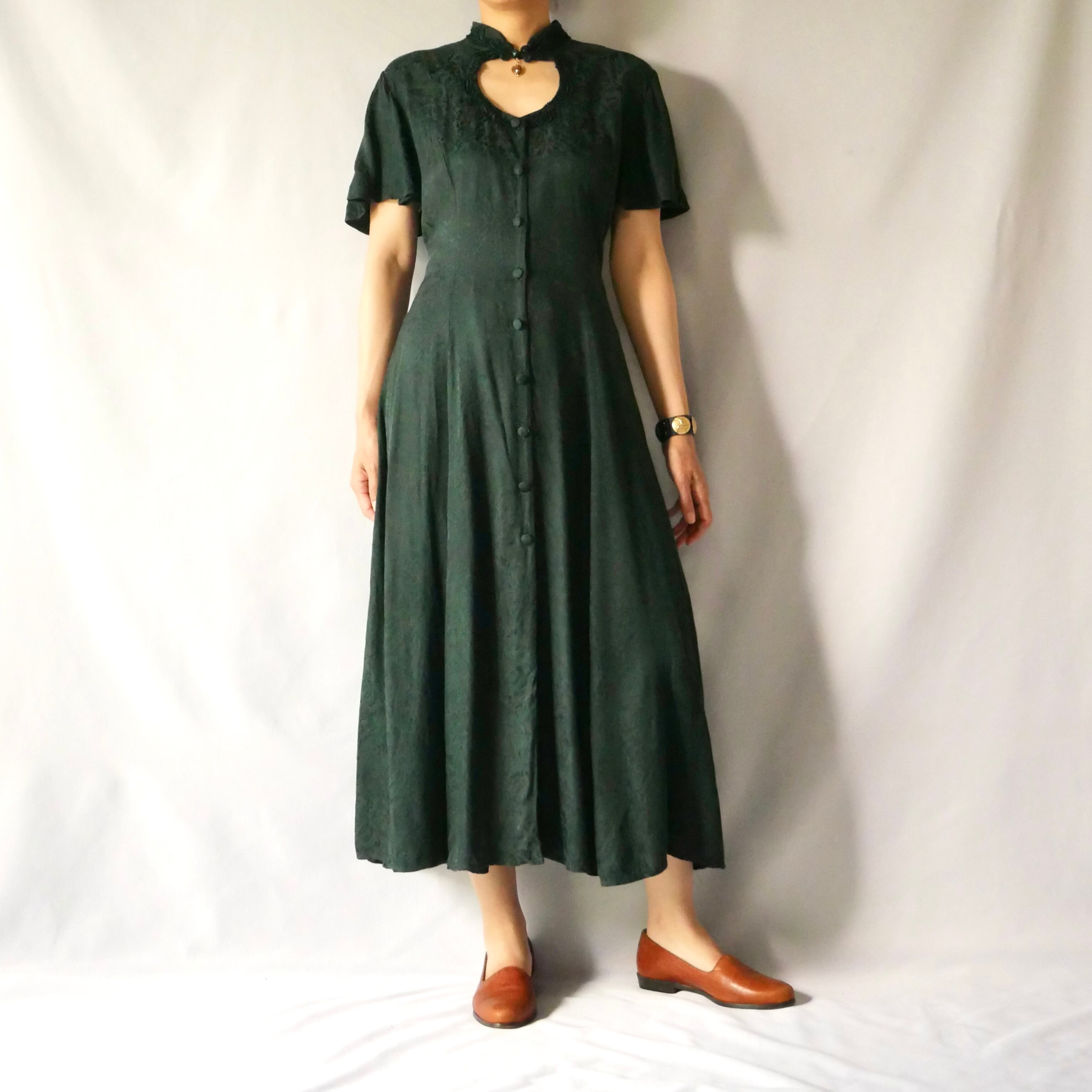 80s madein USA green rayon maxi onepiece 80年代 アメリカ製 グリーン ハートモチーフ レーヨン フレアワンピース