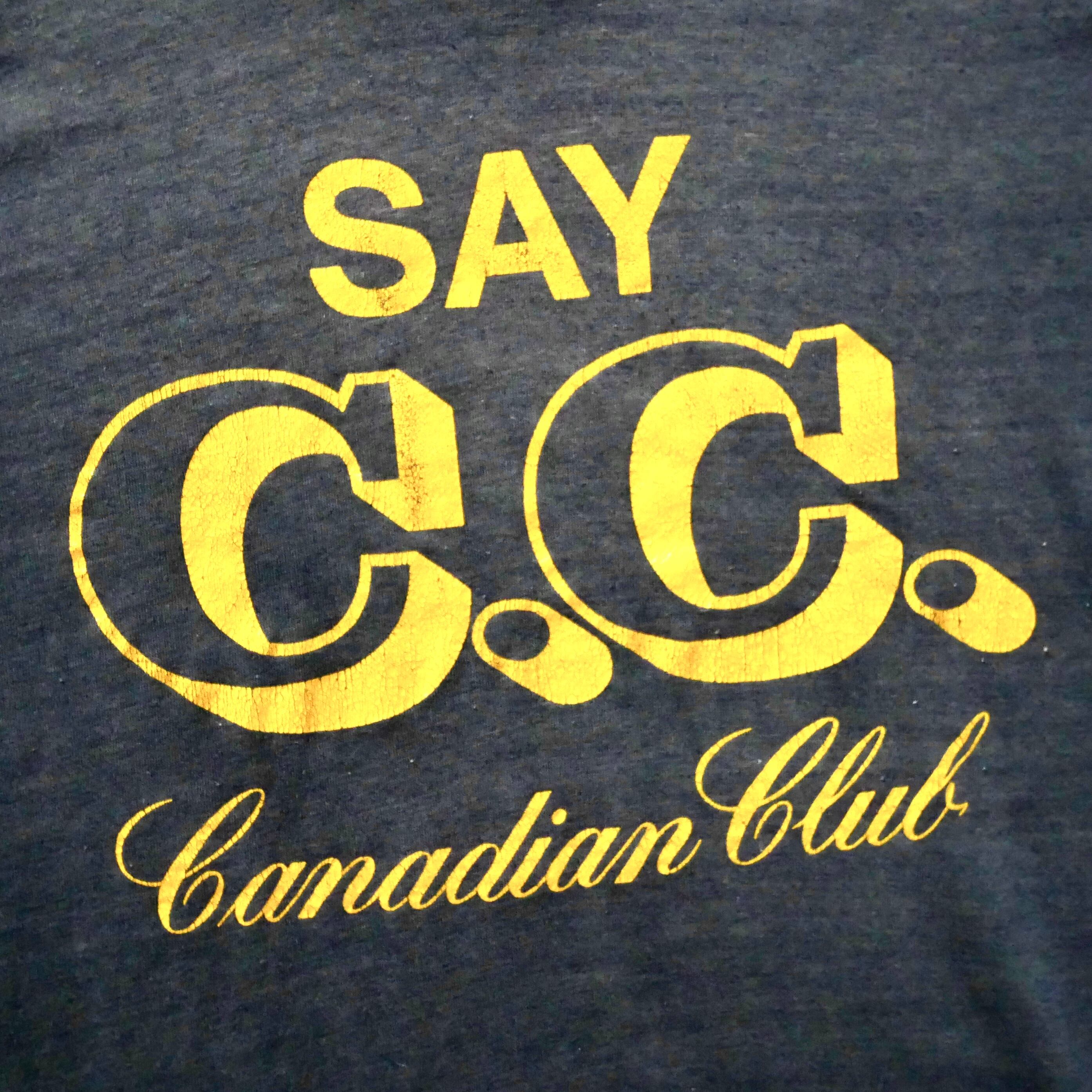 C.C.の愛称で親しまれ1850年代からカナダのオンタリオ州で製造されているウイスキー、カナディアンクラブのTシャツのようです。