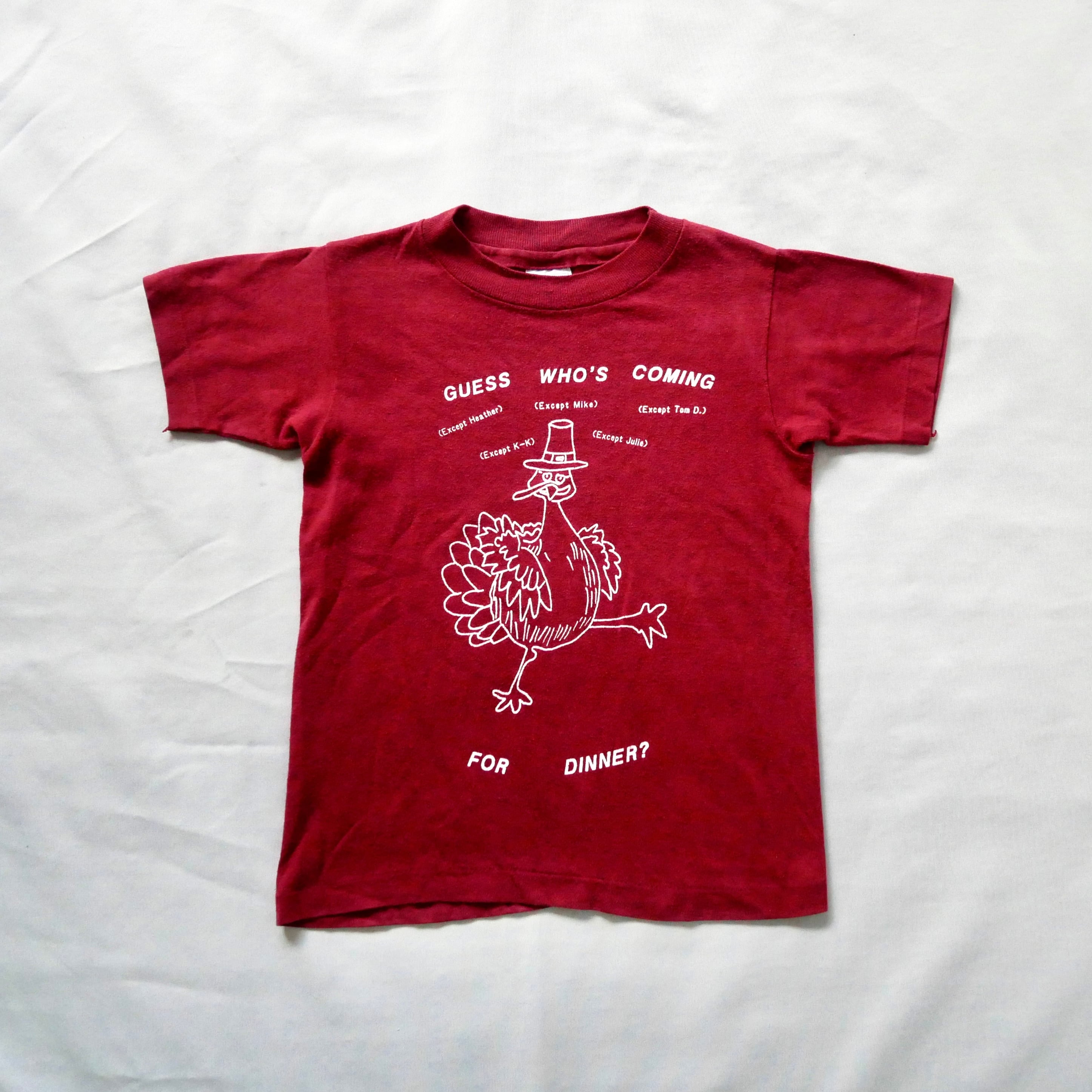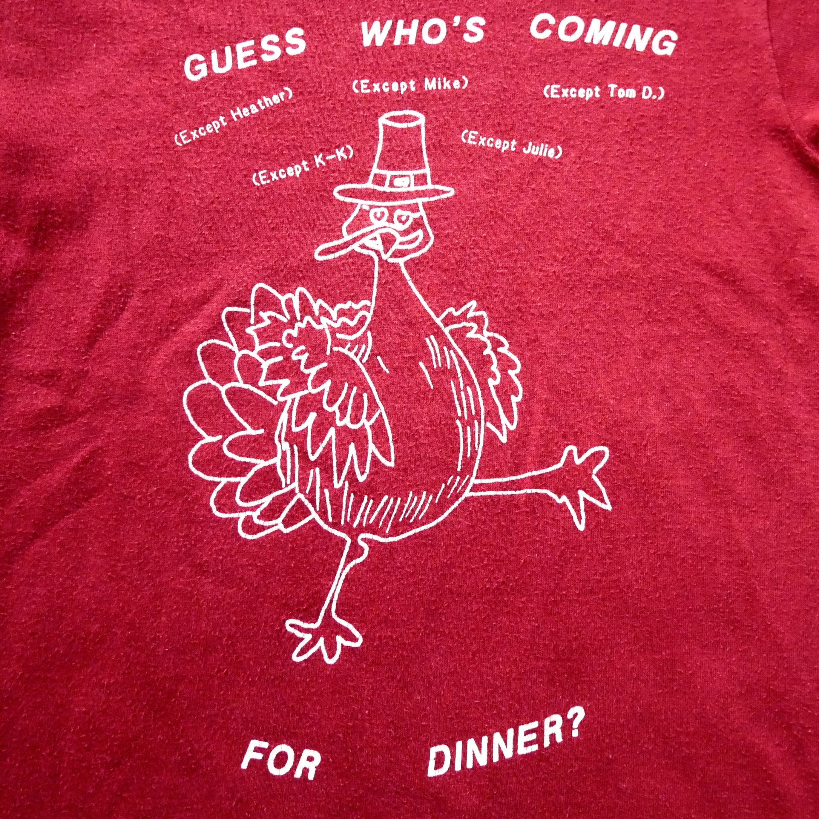 breezy crest farmという所で1986.11.27の感謝祭のディナー記念して作られたTシャツのようです。
