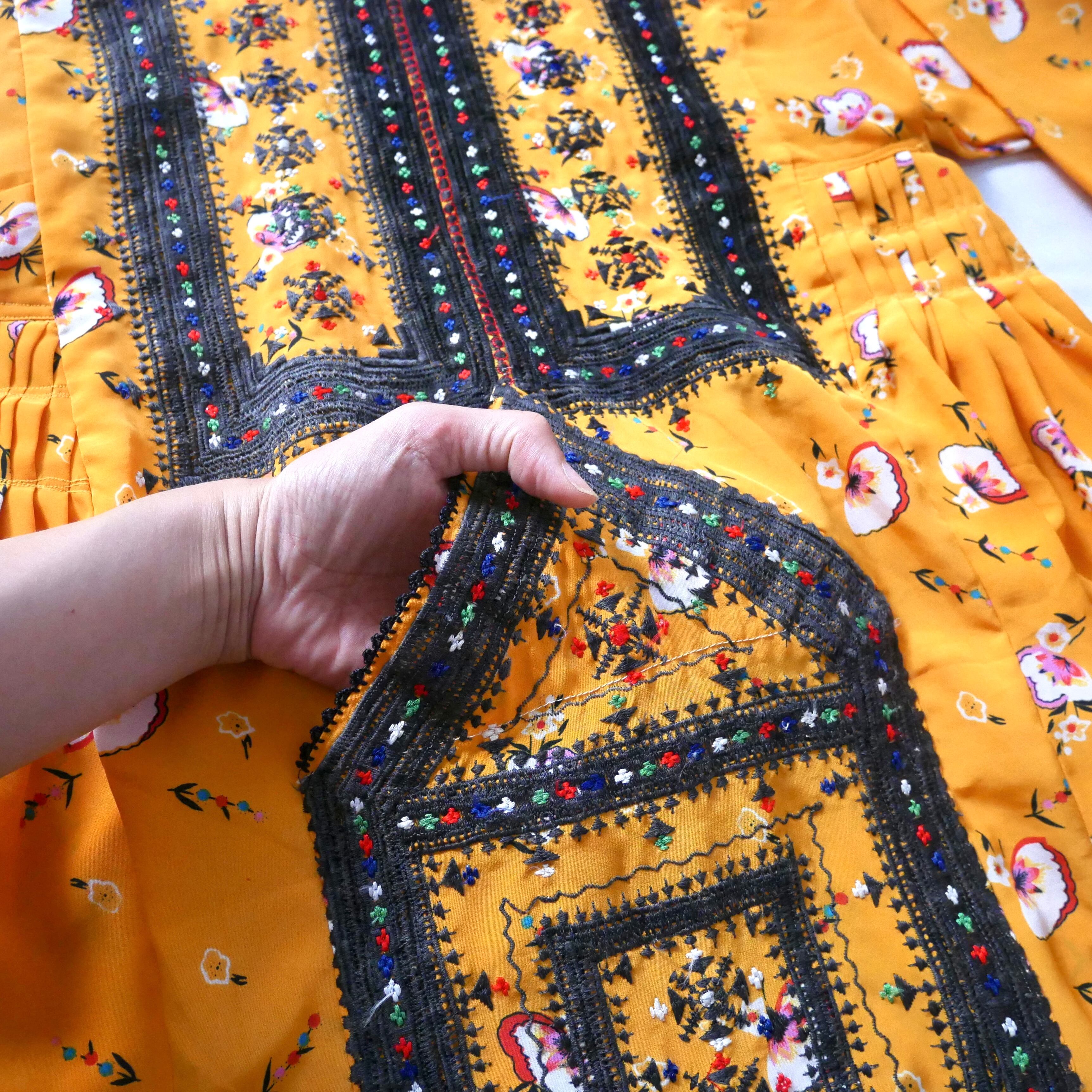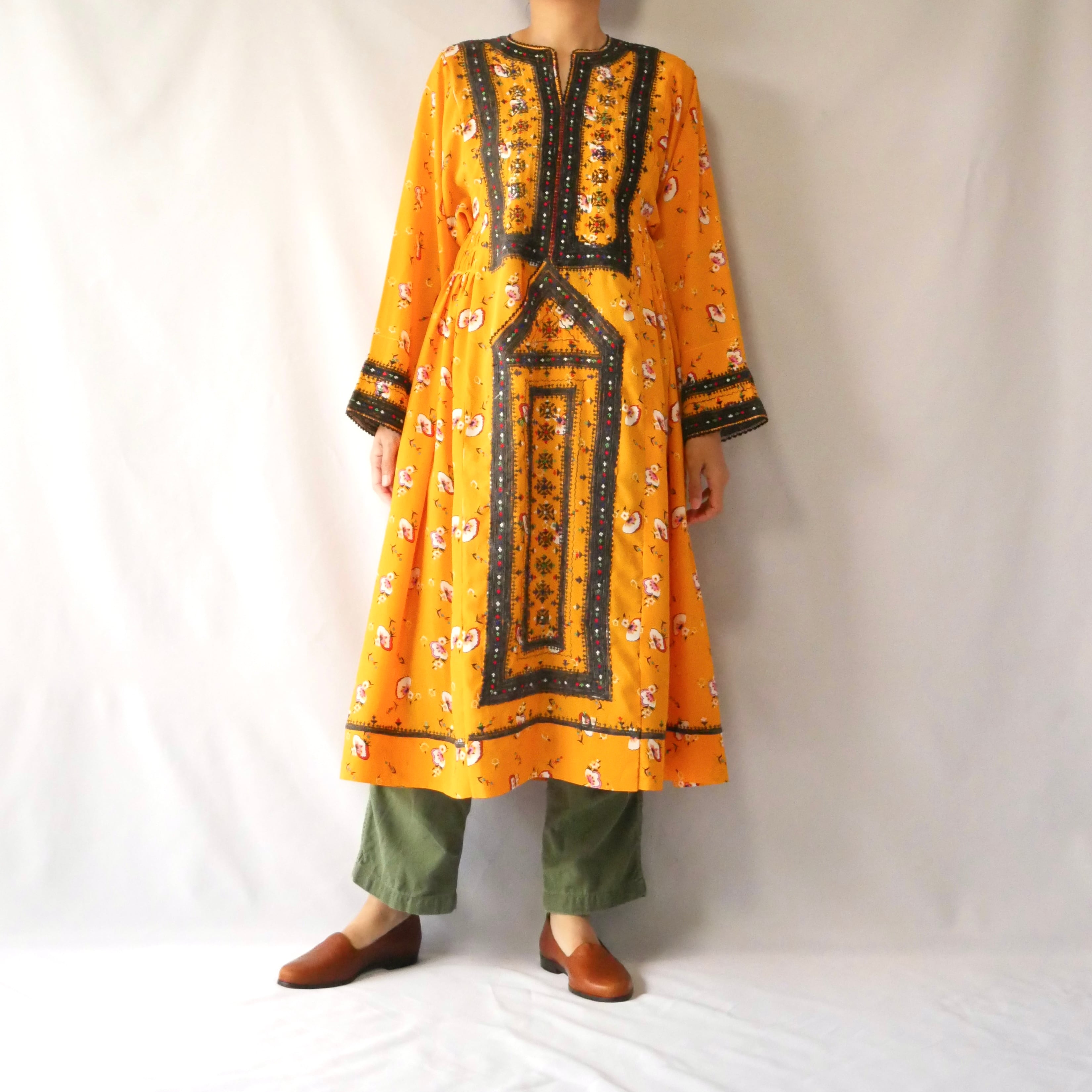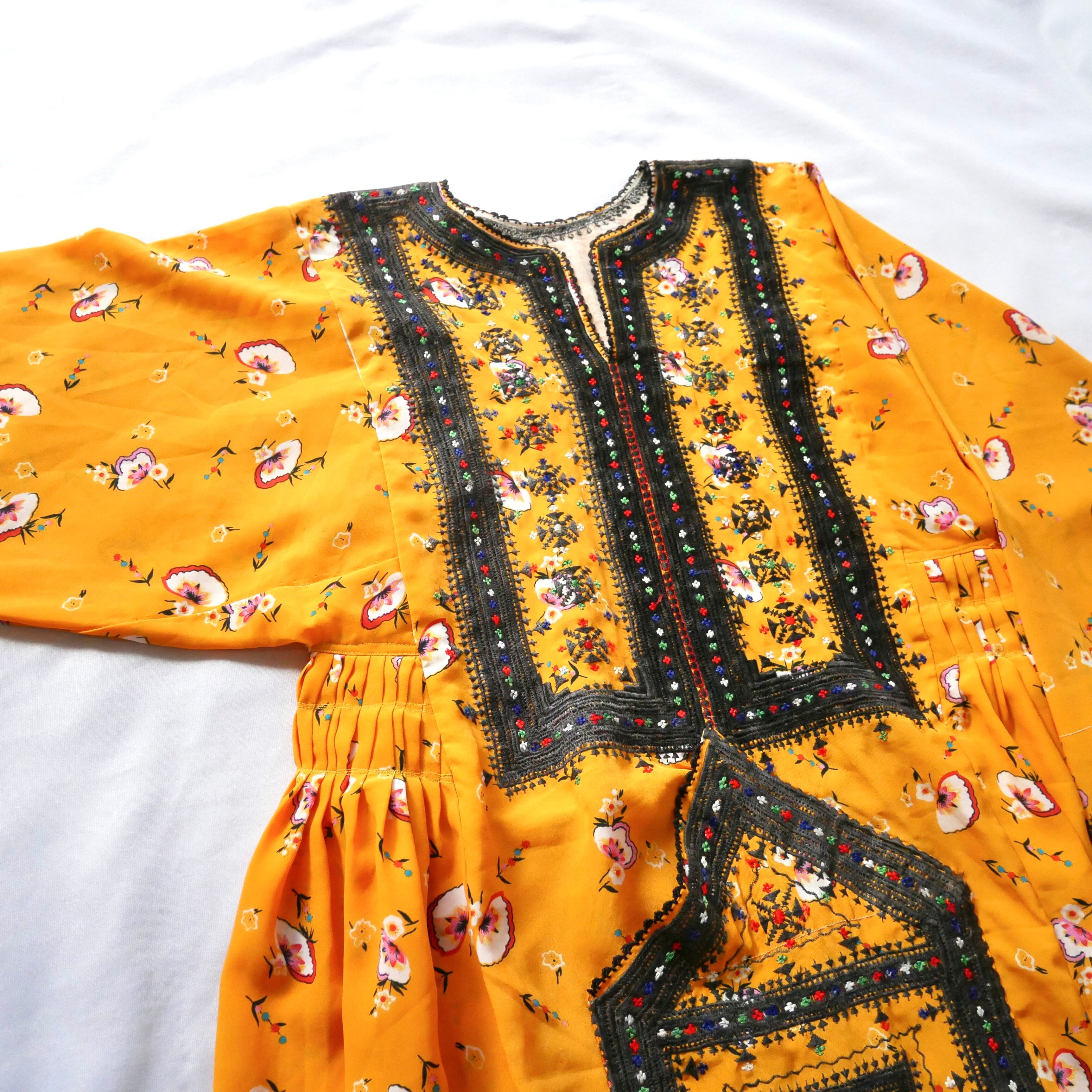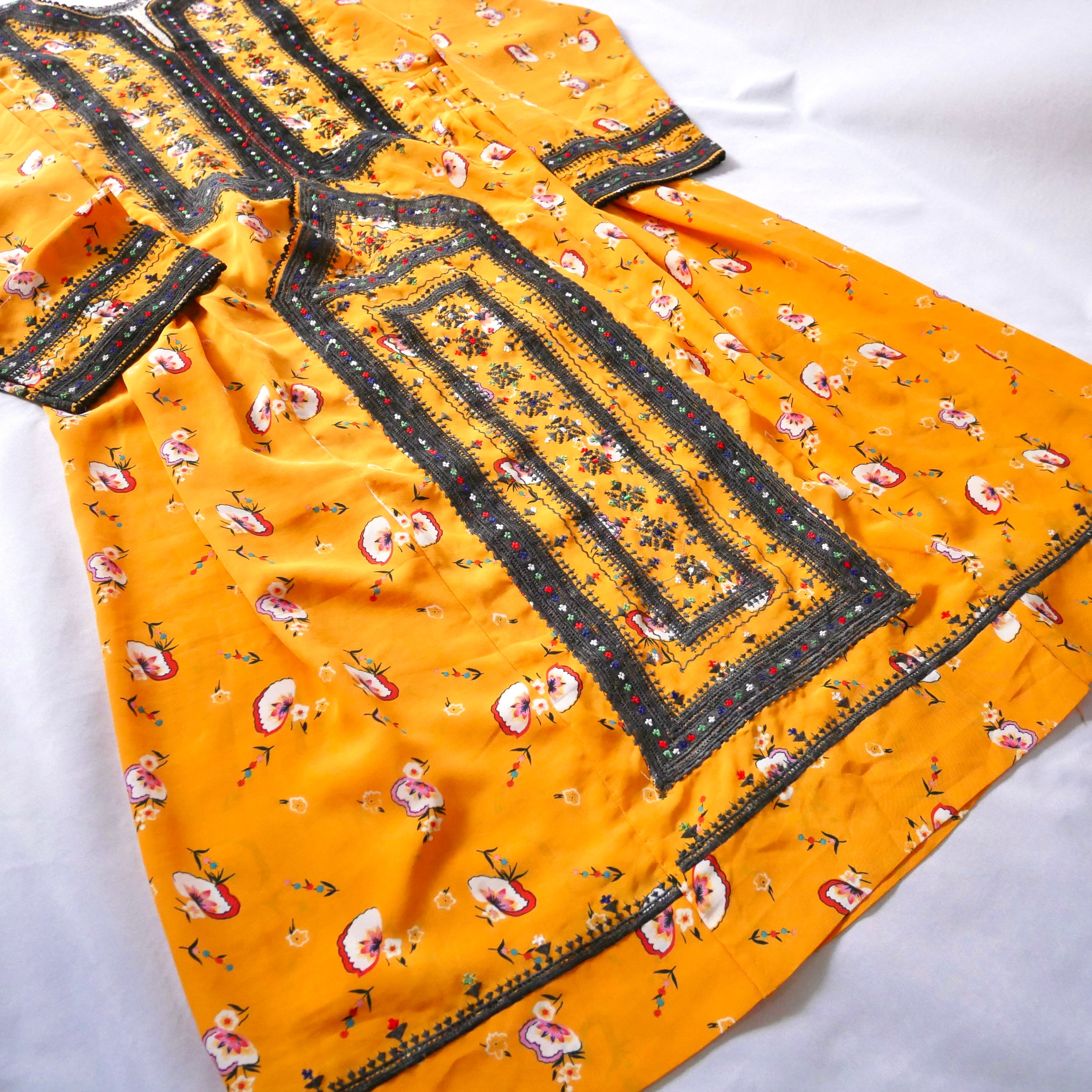 Vintage orange yellow balochistan embroidery dress ヴィンテージ イエロー 黒 刺繍 バロチスタンドレス バロチワンピース | &Dorothy used&vintage 古着屋