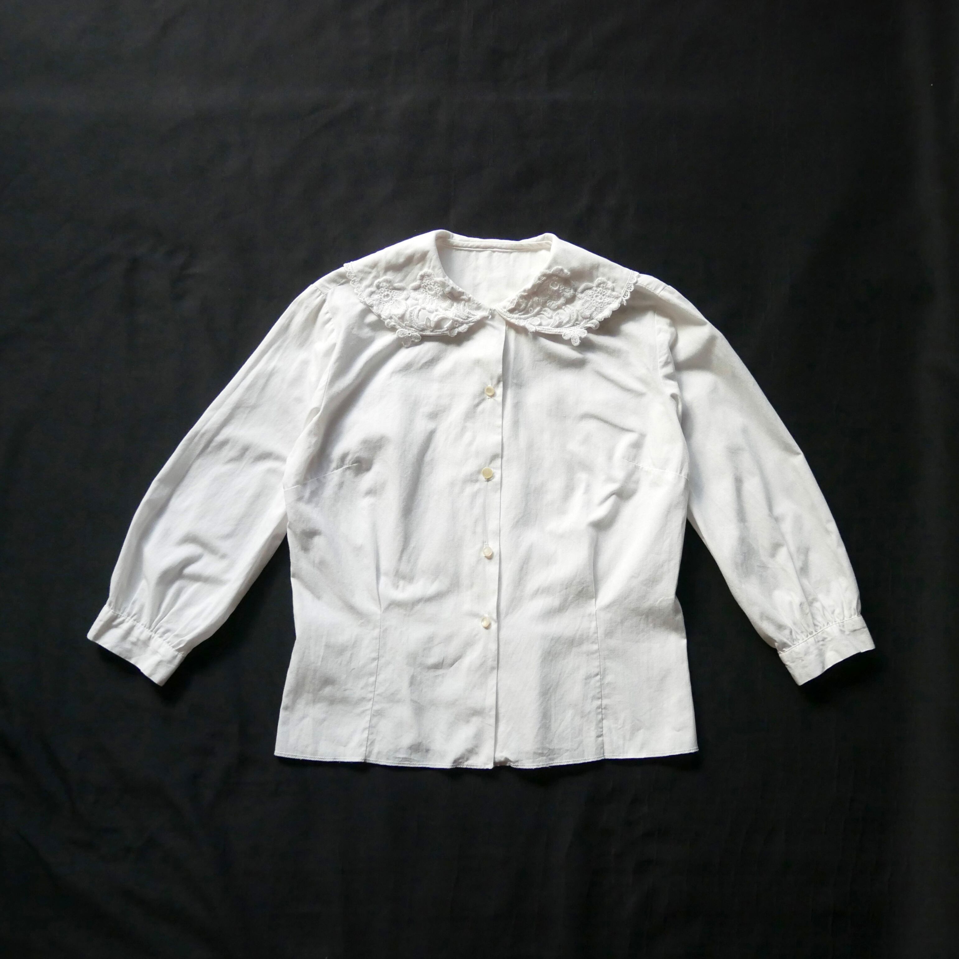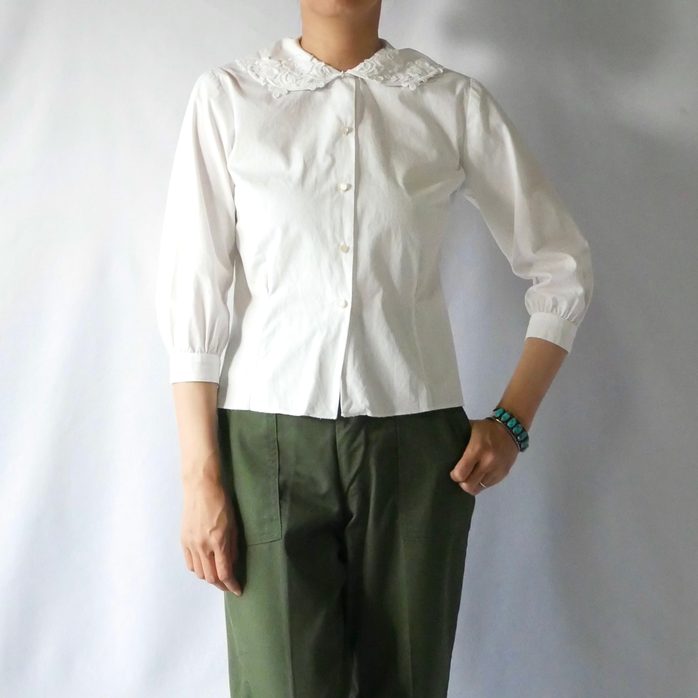 丸襟にレースの飾り、コンパクトなサイズ感が可愛い70年代ヴィンテージブラウスです。
