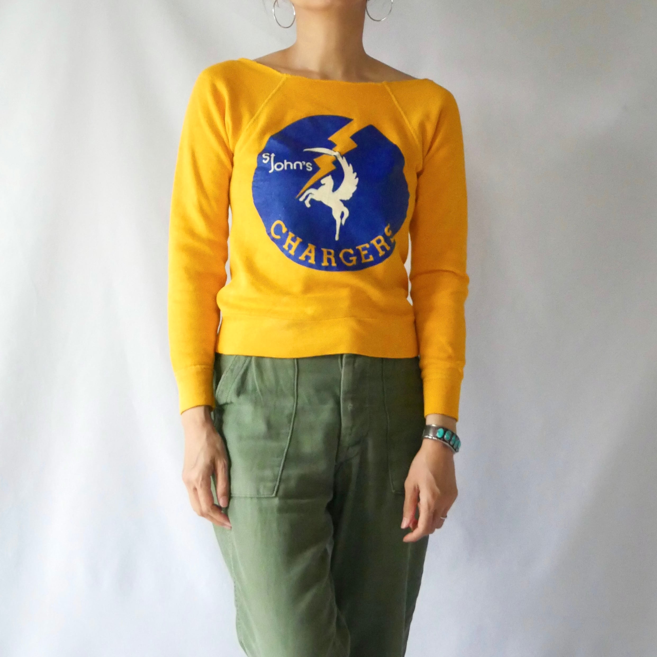 80s madein USA orange cutoff sweat 80年代 ヴィンテージ USA製 カットオフ オレンジ ペガサスプリント スウェット | &Dorothy used&vintage 古着屋
