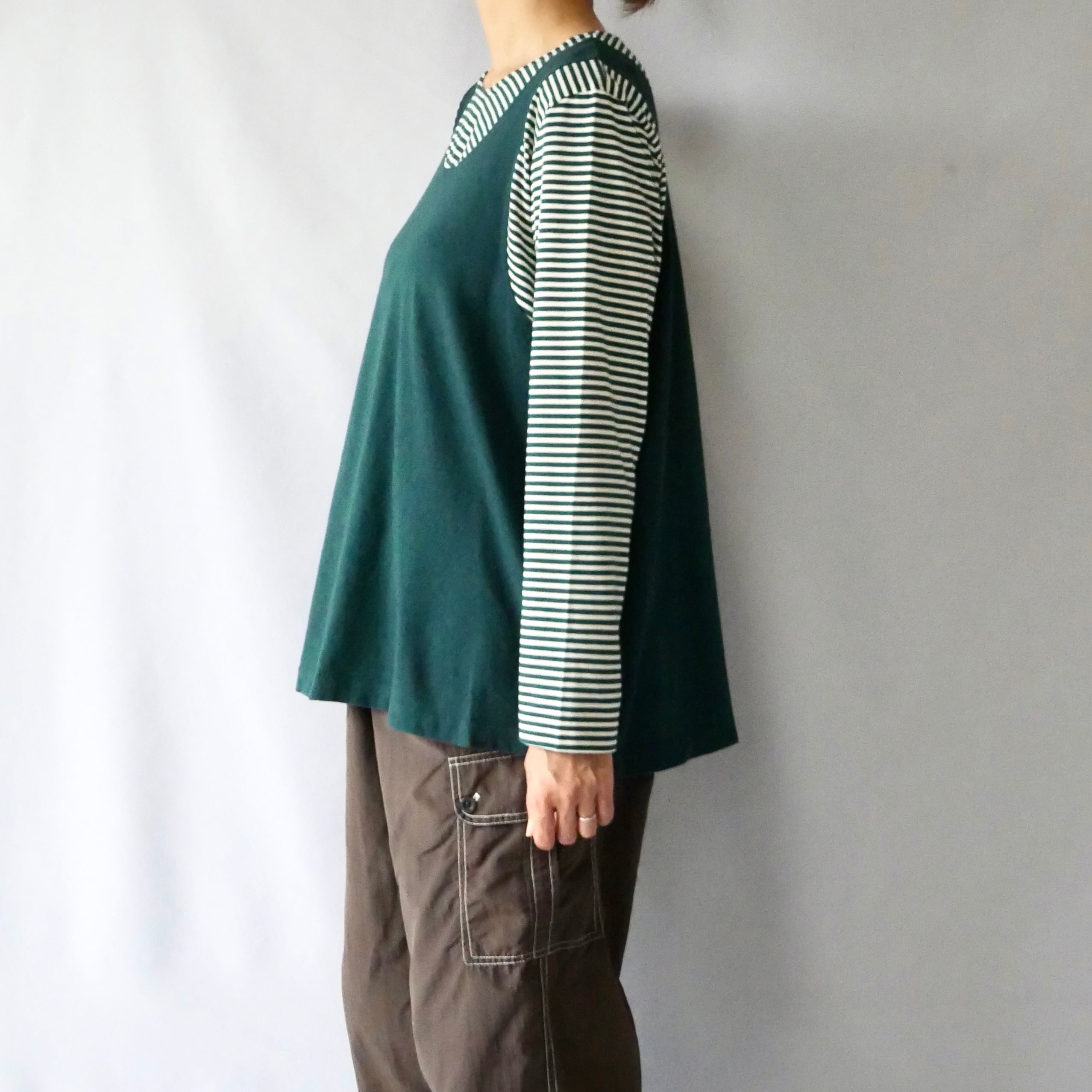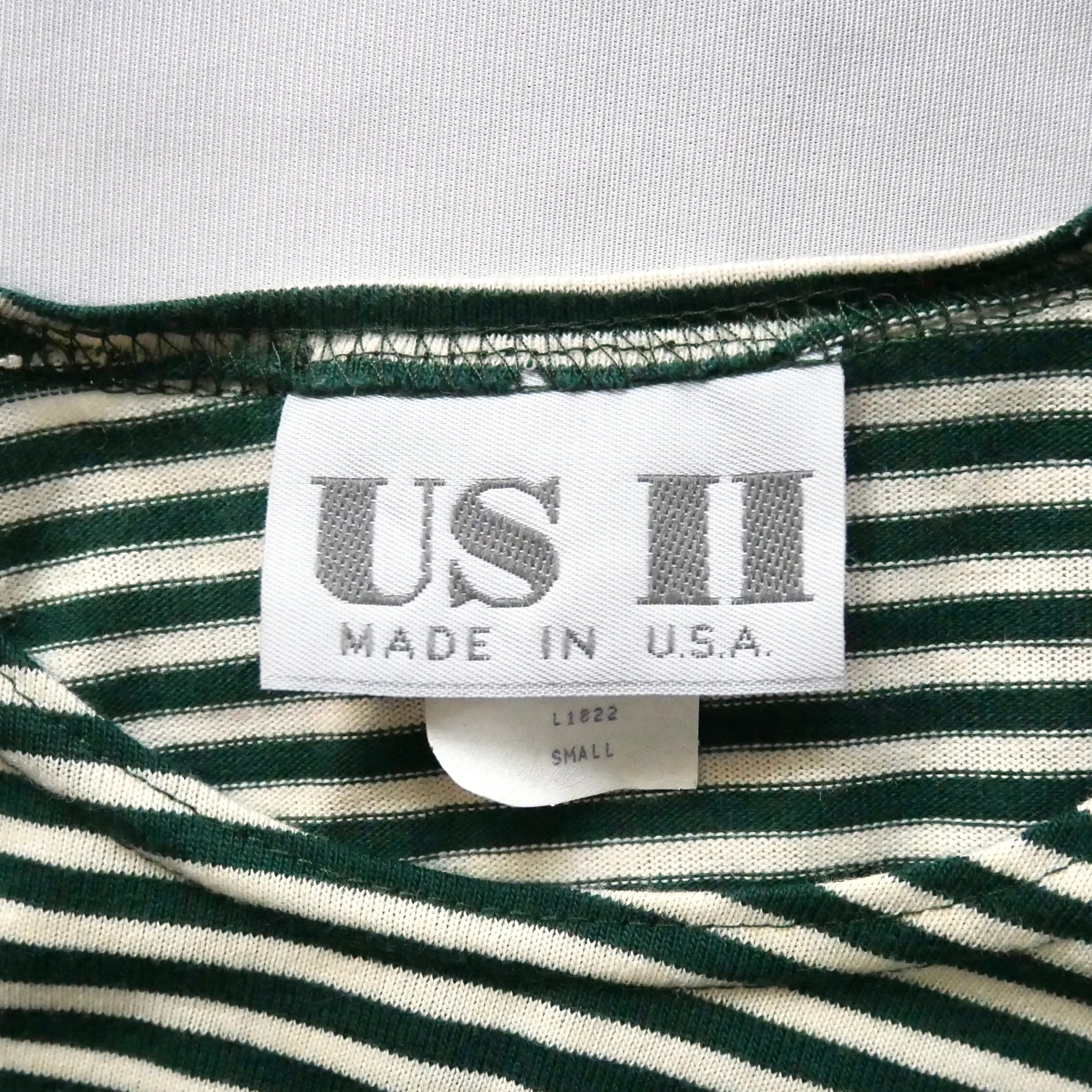 Made in USA 80s green border layered style tops アメリカ製 80年代 グリーン ボーダー 重ね着風 カットソー トップス | &Dorothy used&vintage 古着屋