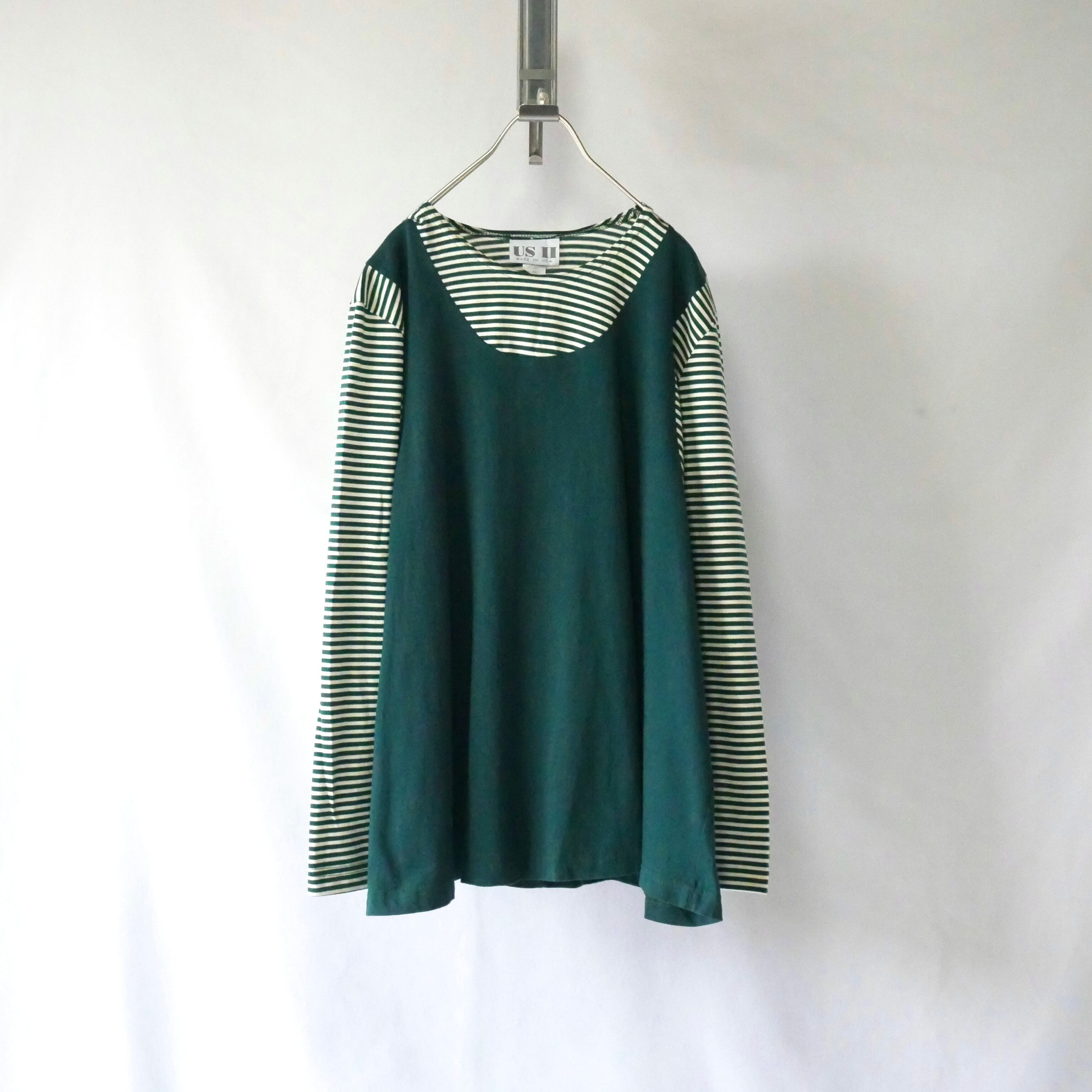 Made in USA 80s green border layered style tops アメリカ製 80年代 グリーン ボーダー 重ね着風 カットソー トップス
