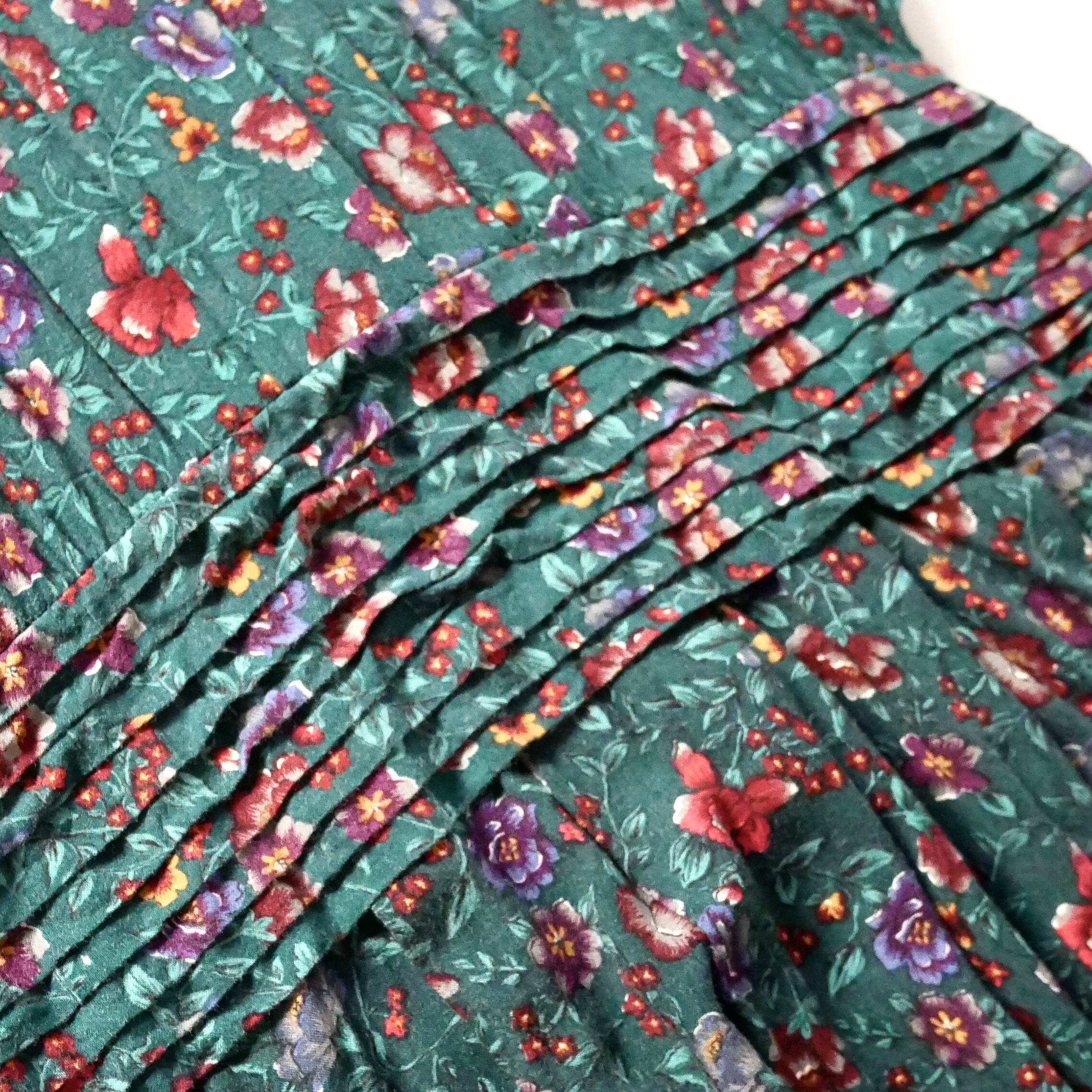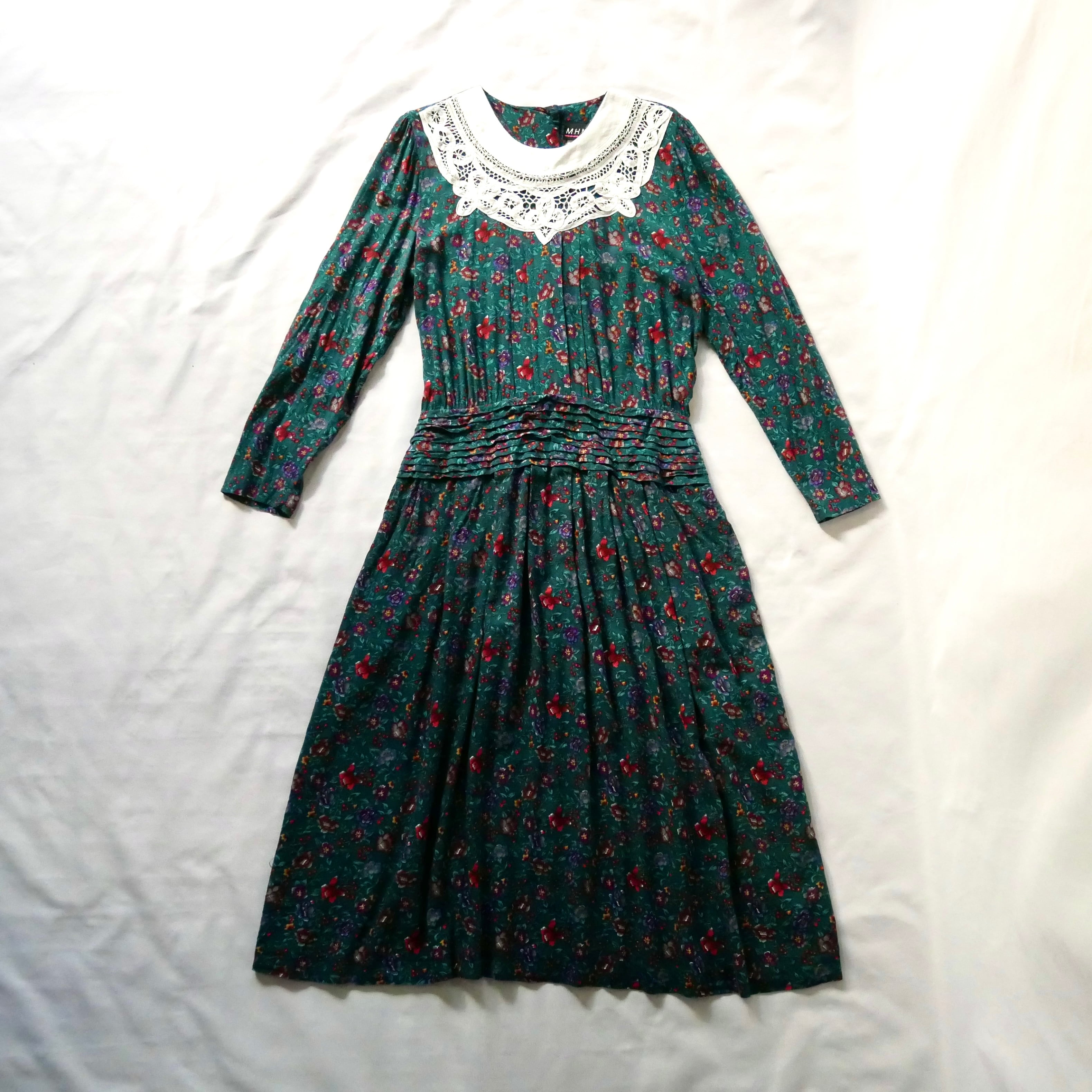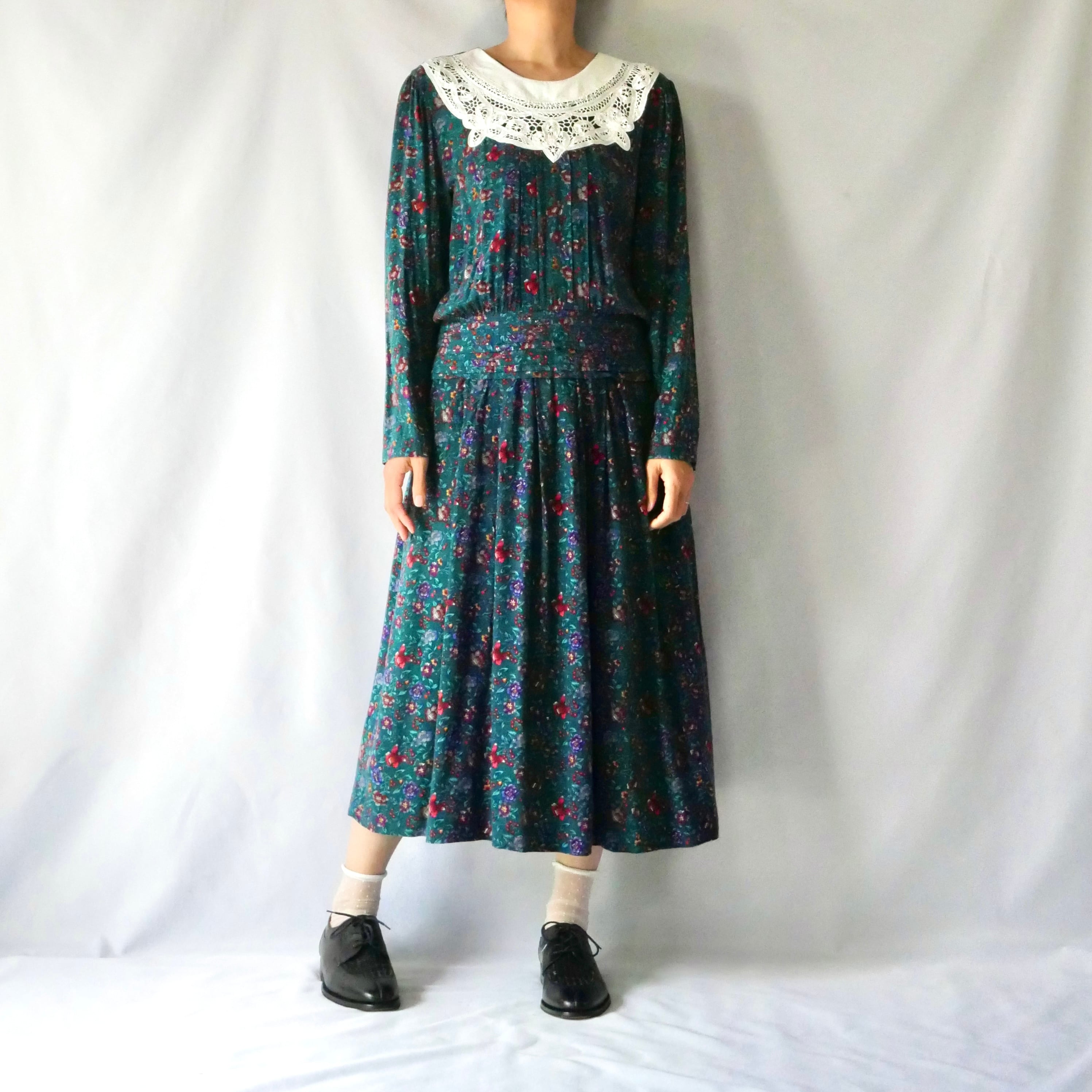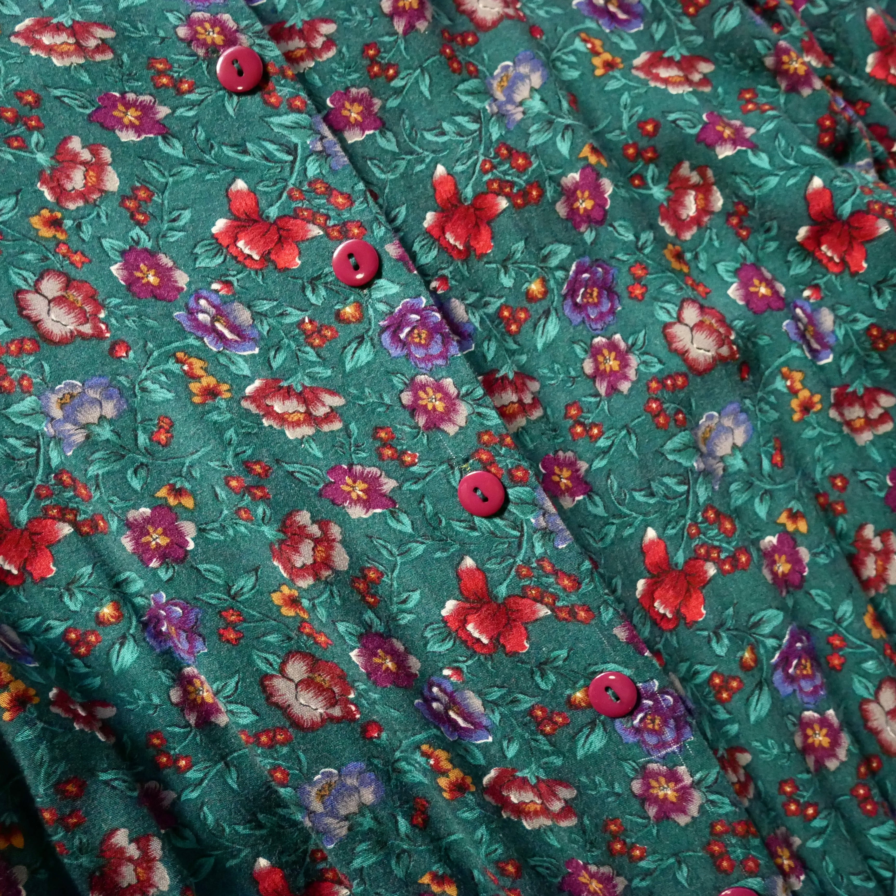80s vintage dark green floral rayon onepiece 80年代 ヴィンテージ グリーン小花柄 レーヨンワンピース | &Dorothy used&vintage 古着屋