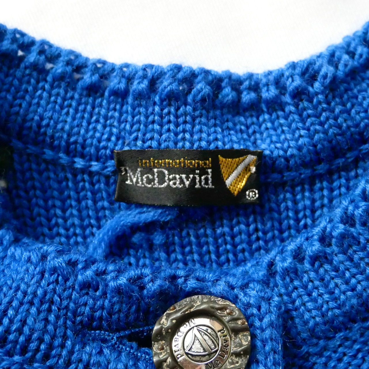 Made in Germany blue floral popcorn knit cardigan ドイツ製 ブルー 花モチーフ ポップコーン ニットカーディガン