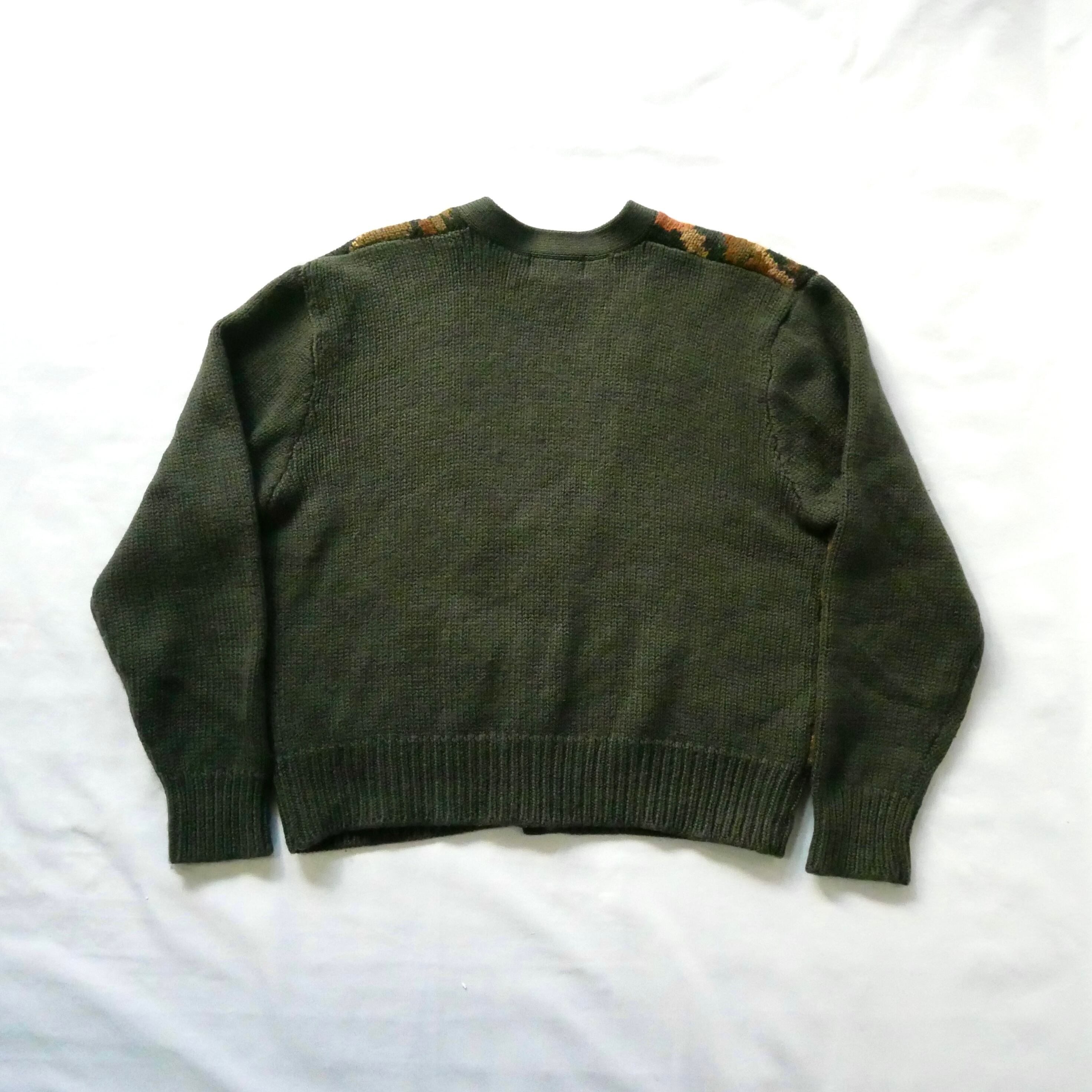 80s vintage darkgreen floral jacquard knit cardigan 80年代 ヴィンテージ ダークグリーン 花 ジャガード ニットカーディガン | &Dorothy used&vintage 古着屋