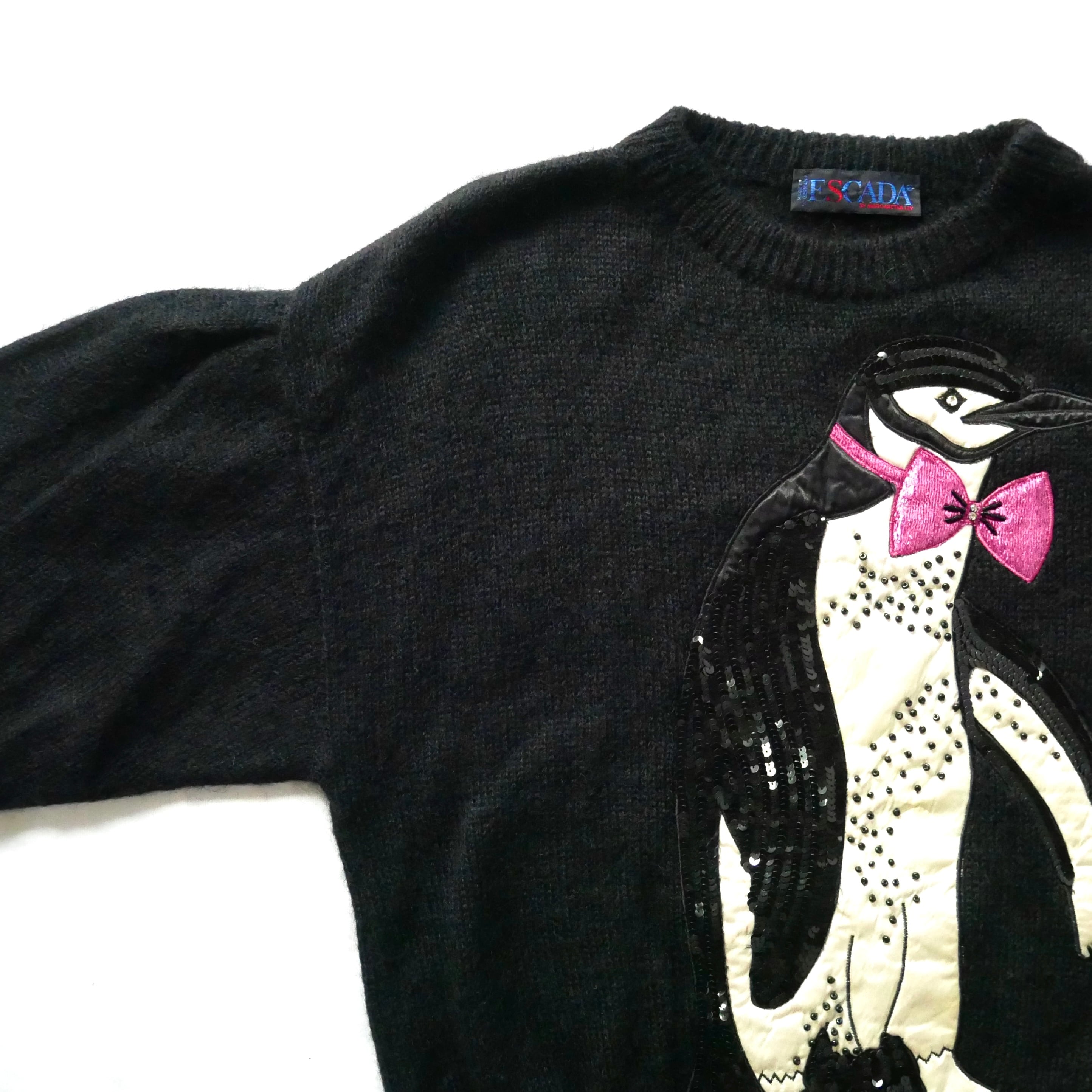 ビーズやスパンコールで可愛く施されたペンギンモチーフがインパクト大な80年代西ドイツ製ニットです。