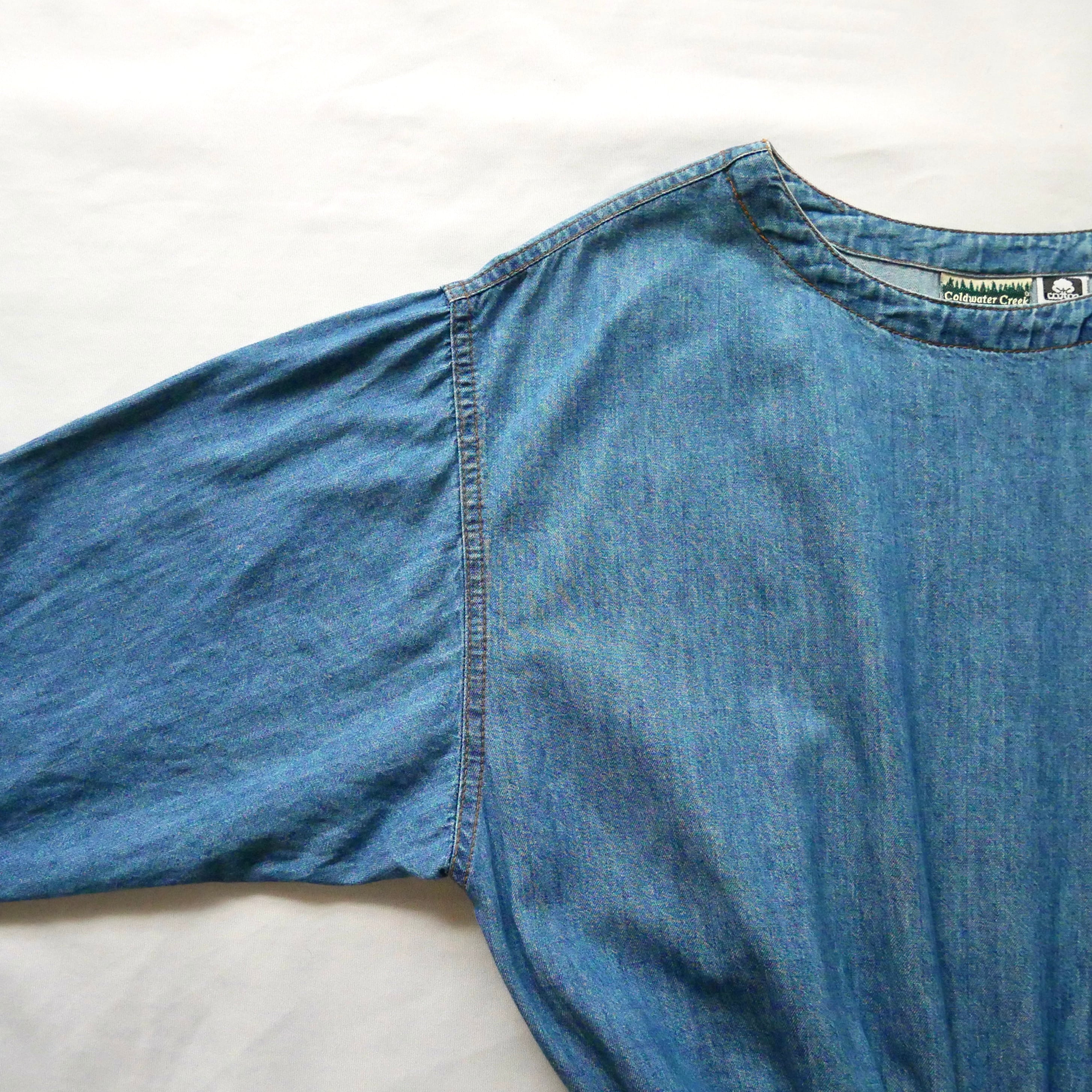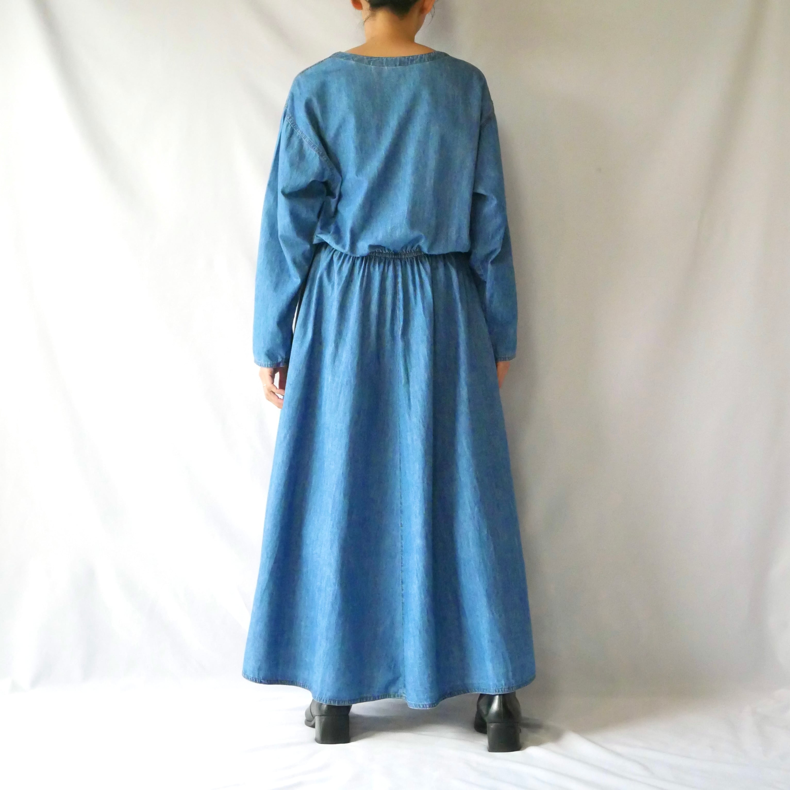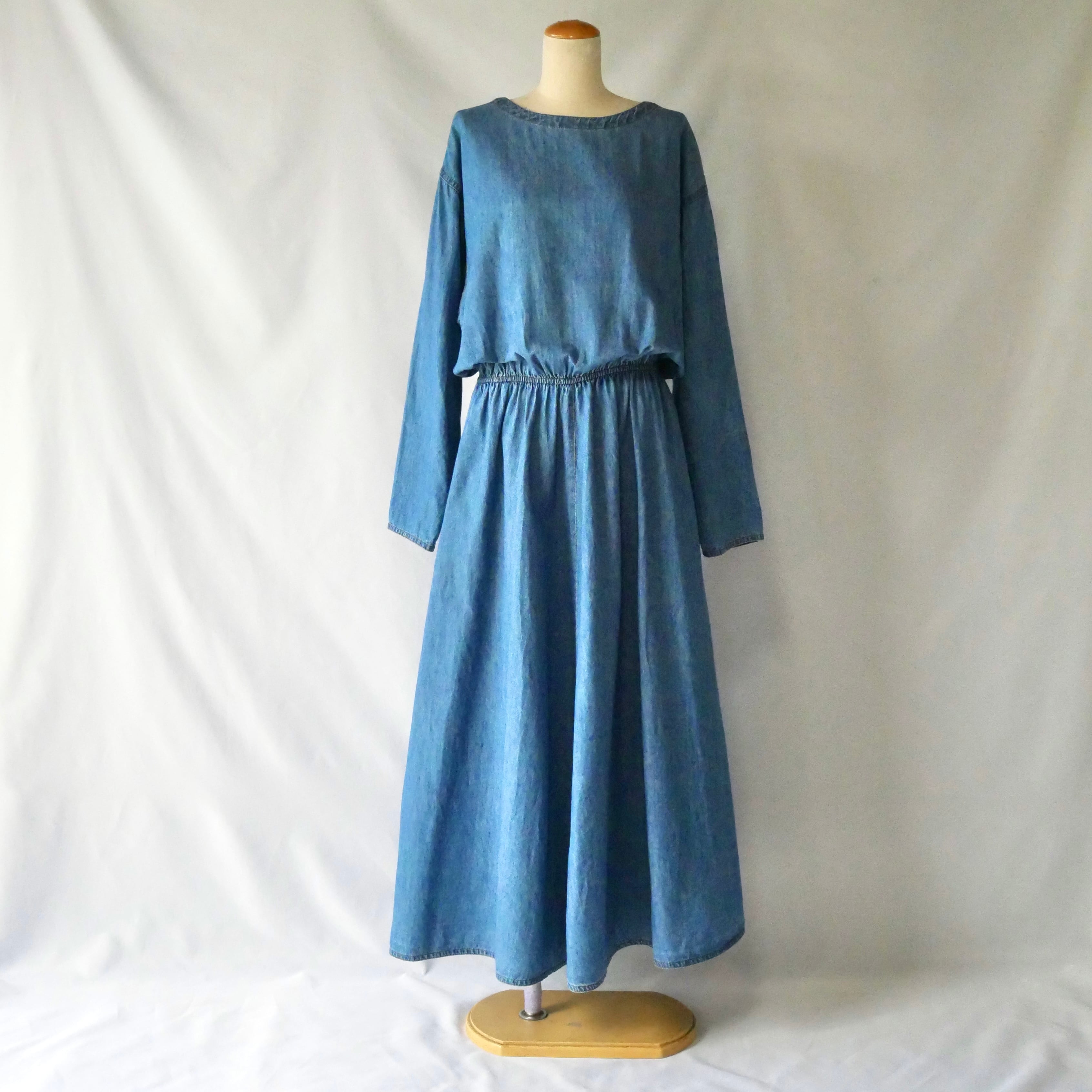 ボリュームあるフレアマキシが可愛いUSA製デニムワンピースです。