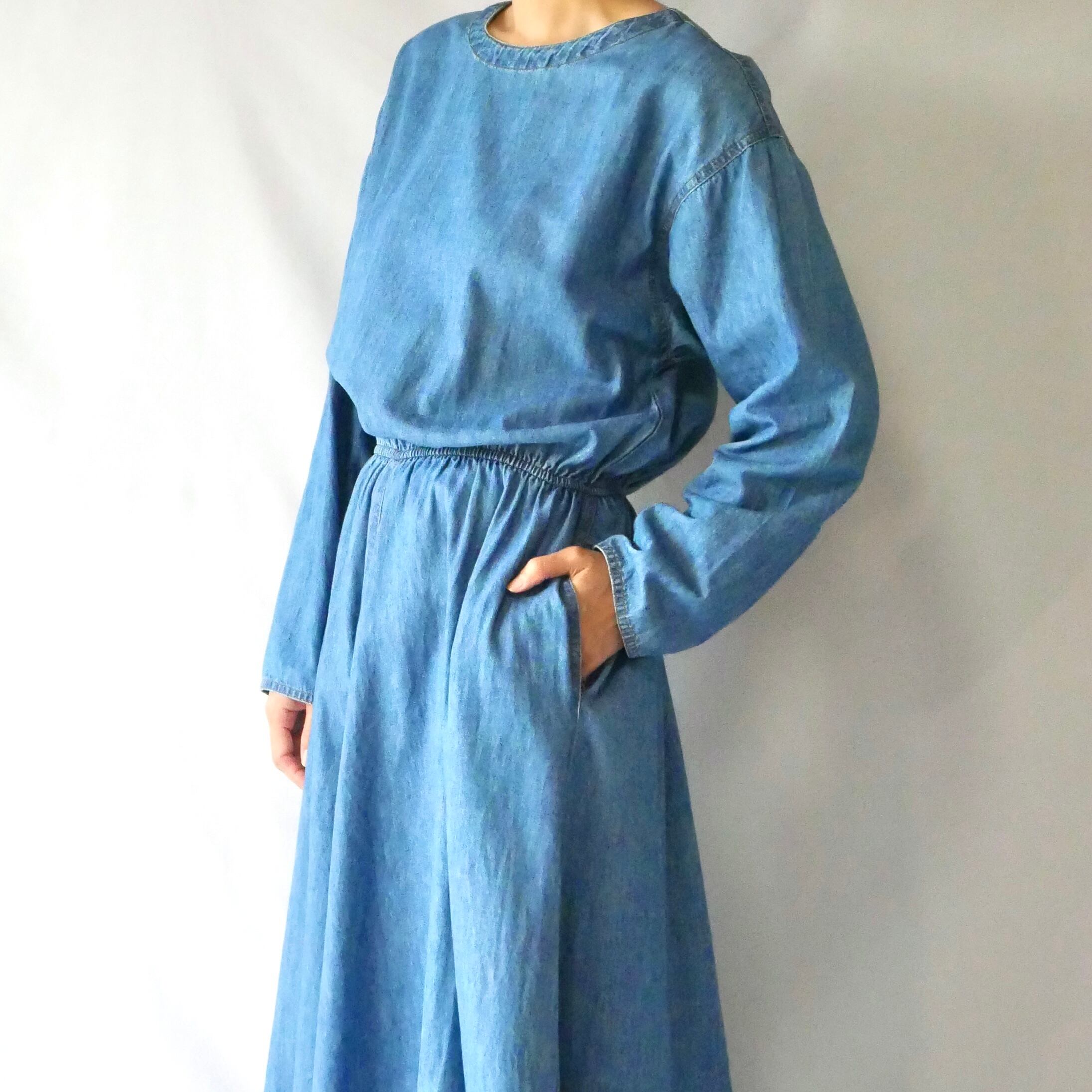Made in USA denim flared maxi skirt アメリカ製 デニムフレア マキシワンピース