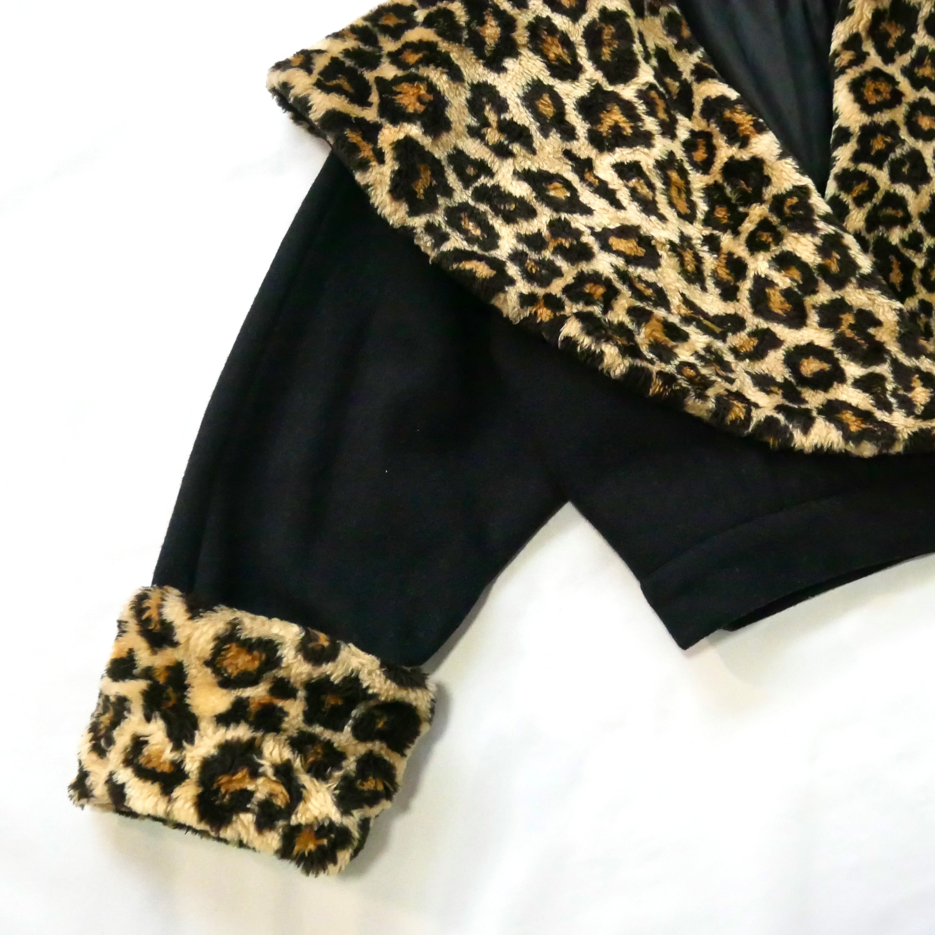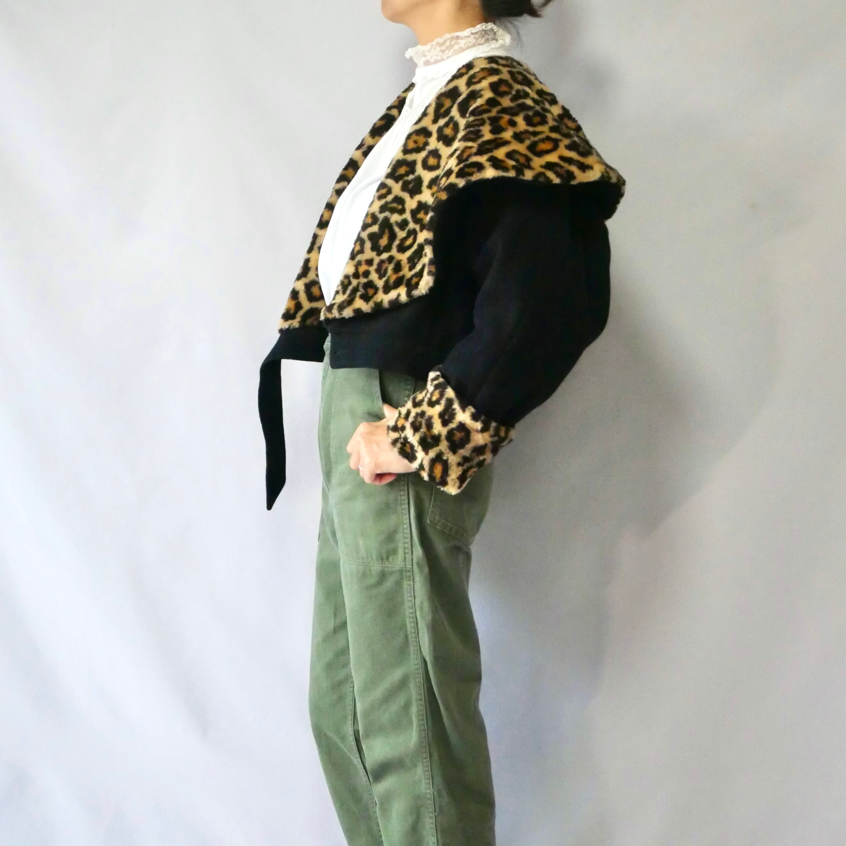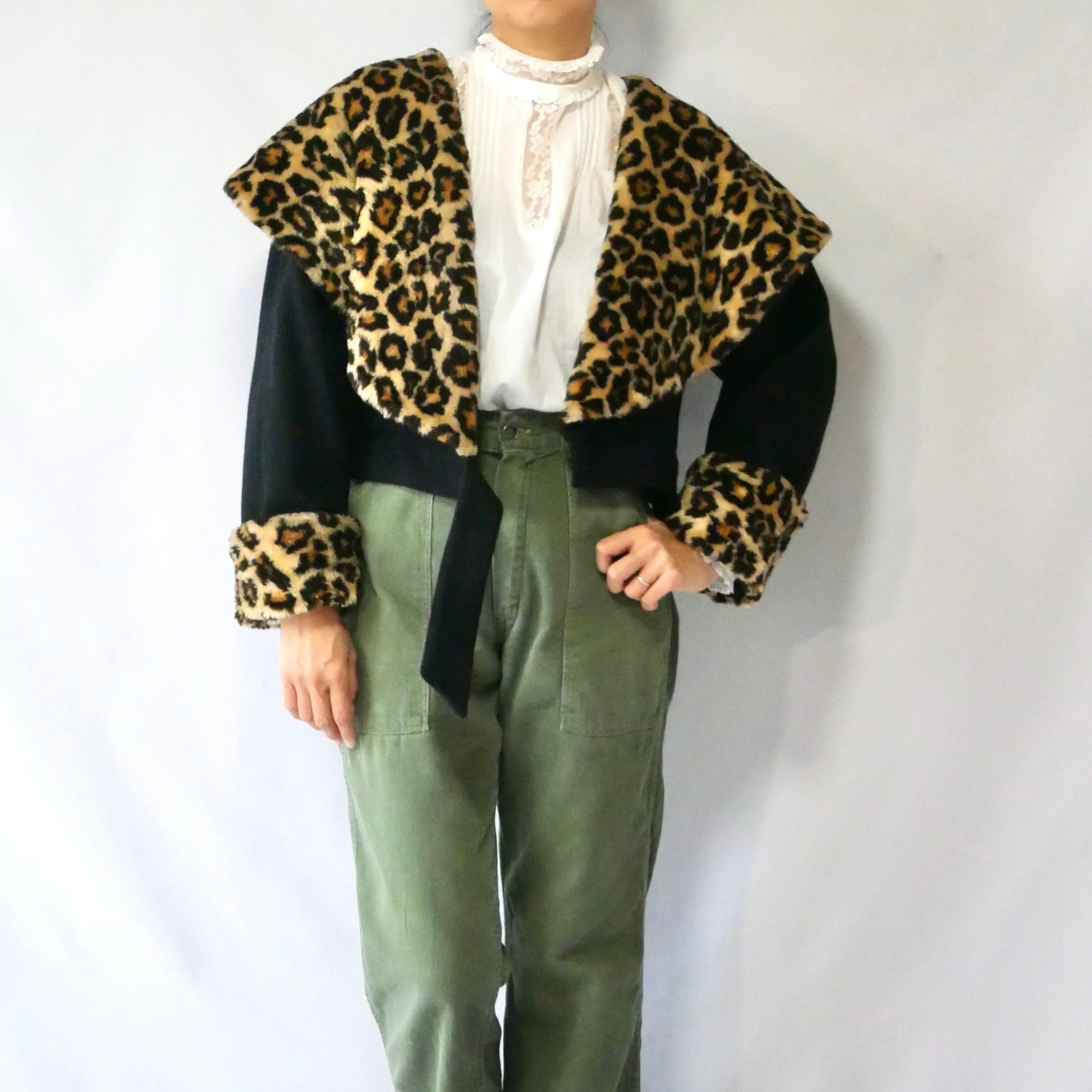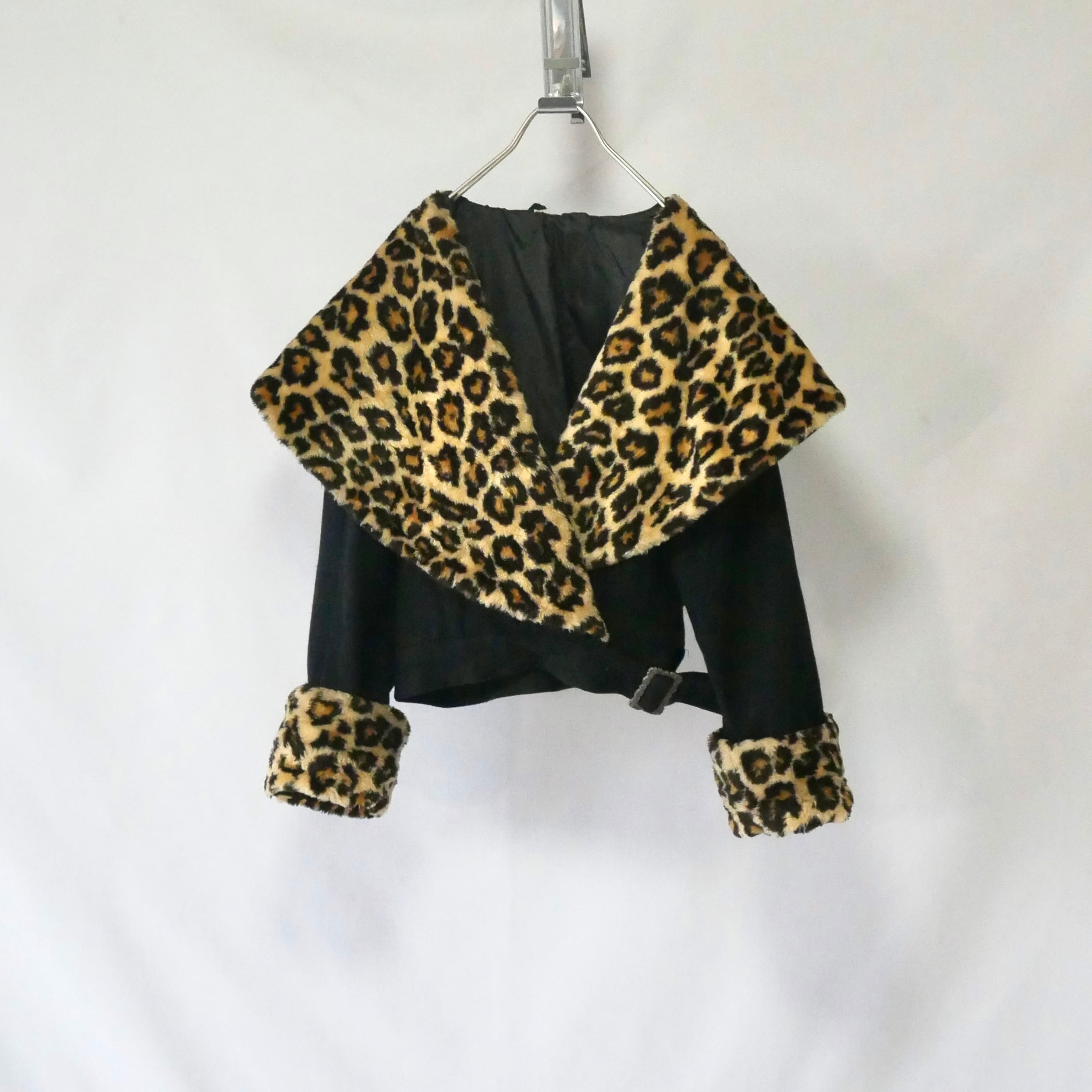 Made in Cyprus leopard fakefur black wool jacket キプロス製 黒 レオパード ヒョウ柄 ウールジャケット | &Dorothy used&vintage 古着屋