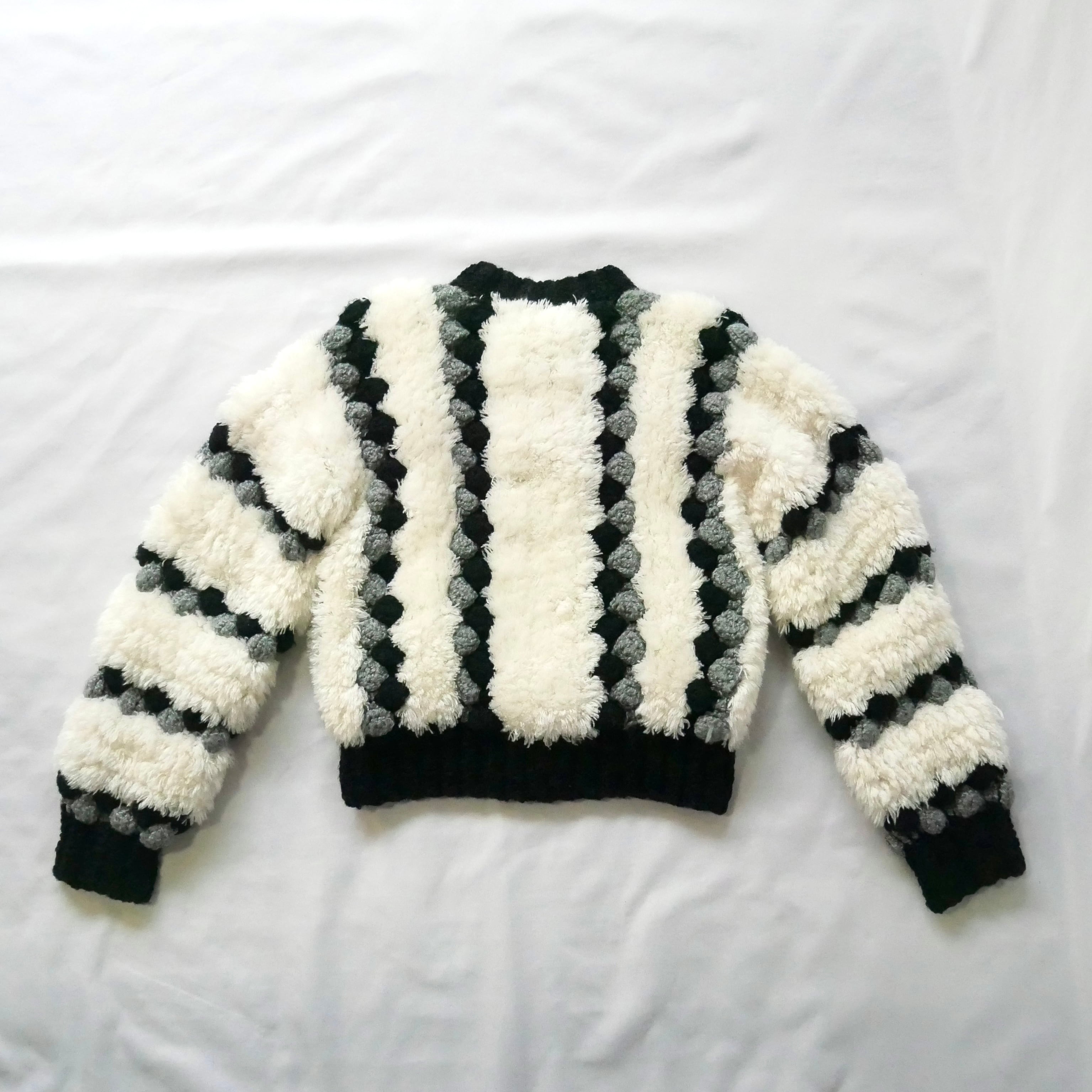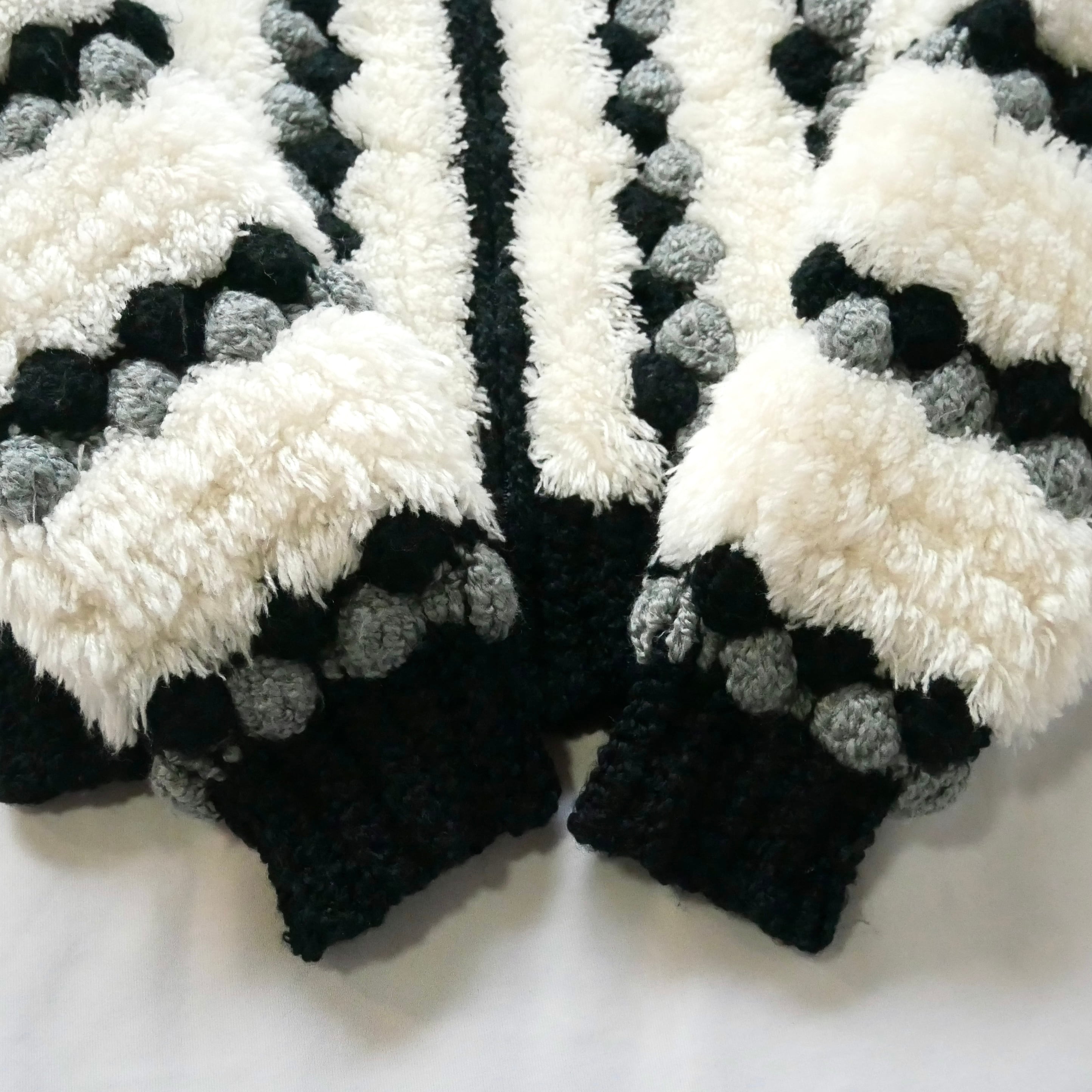 毛足長めなシャギーにモノトーンのニットの組み合わせが可愛いジャケットです。