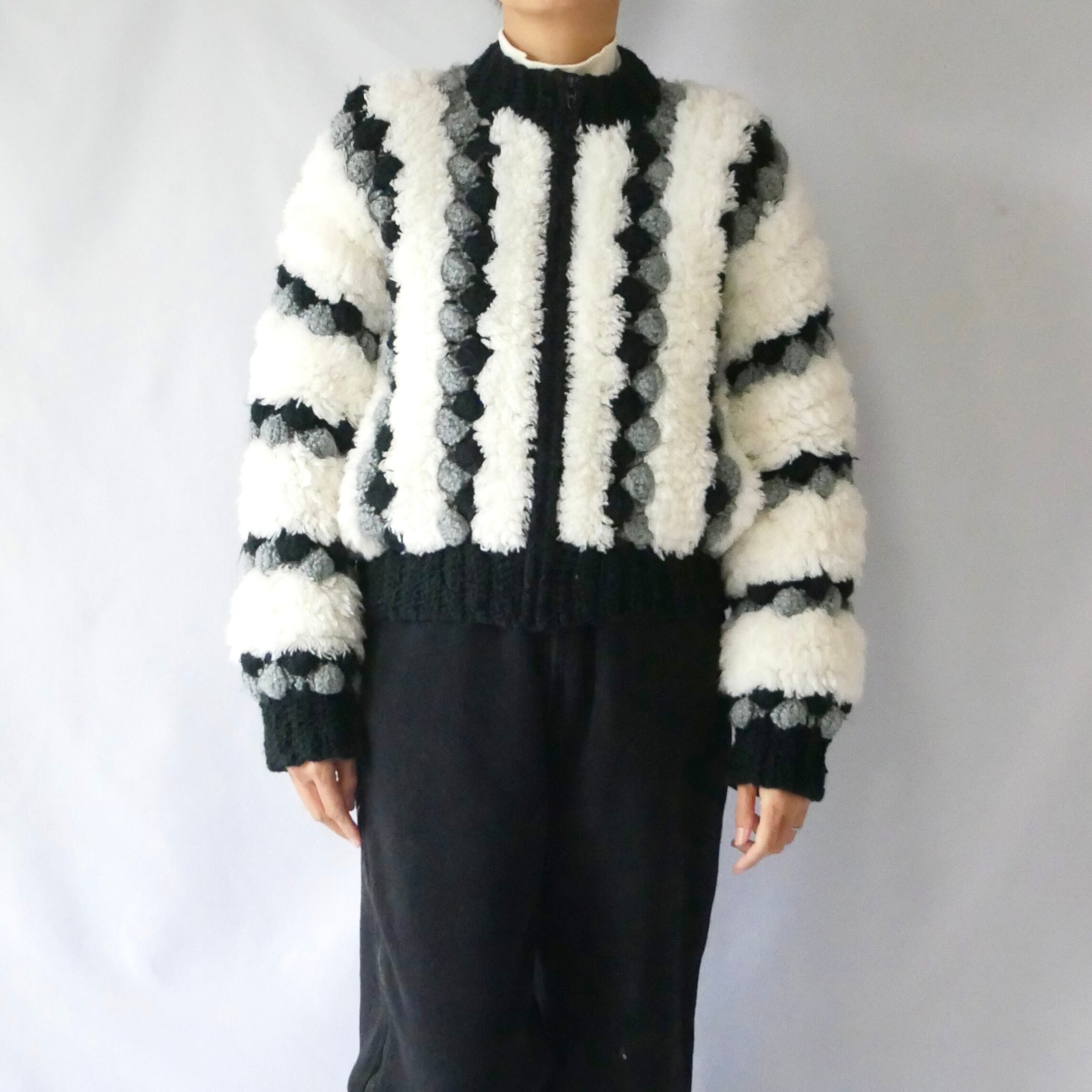 80s vintage shaggy handknit zipup jacket 80年代 ヴィンテージ モノトーン シャギー ニット ジップアップ ジャケット | &Dorothy used&vintage 古着屋
