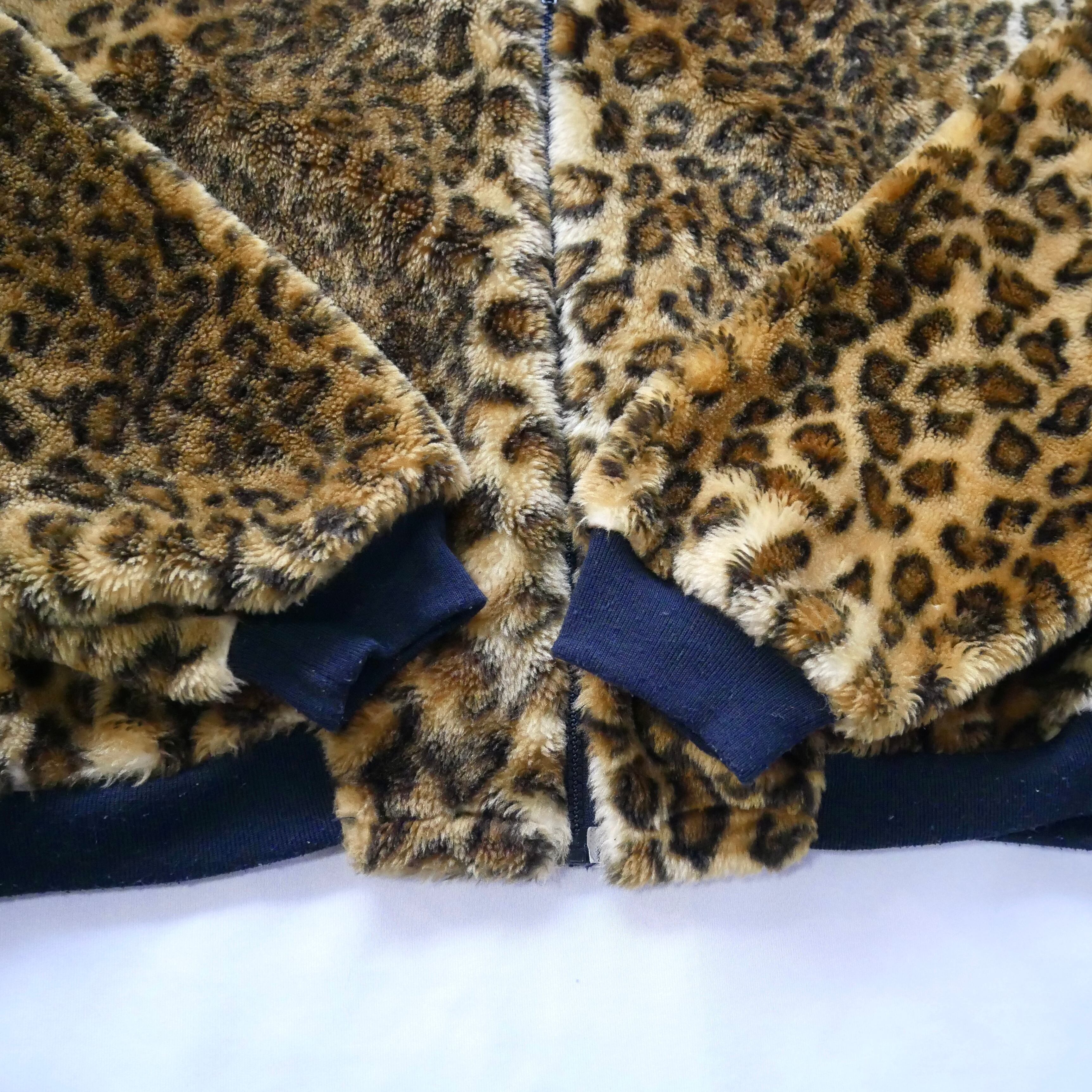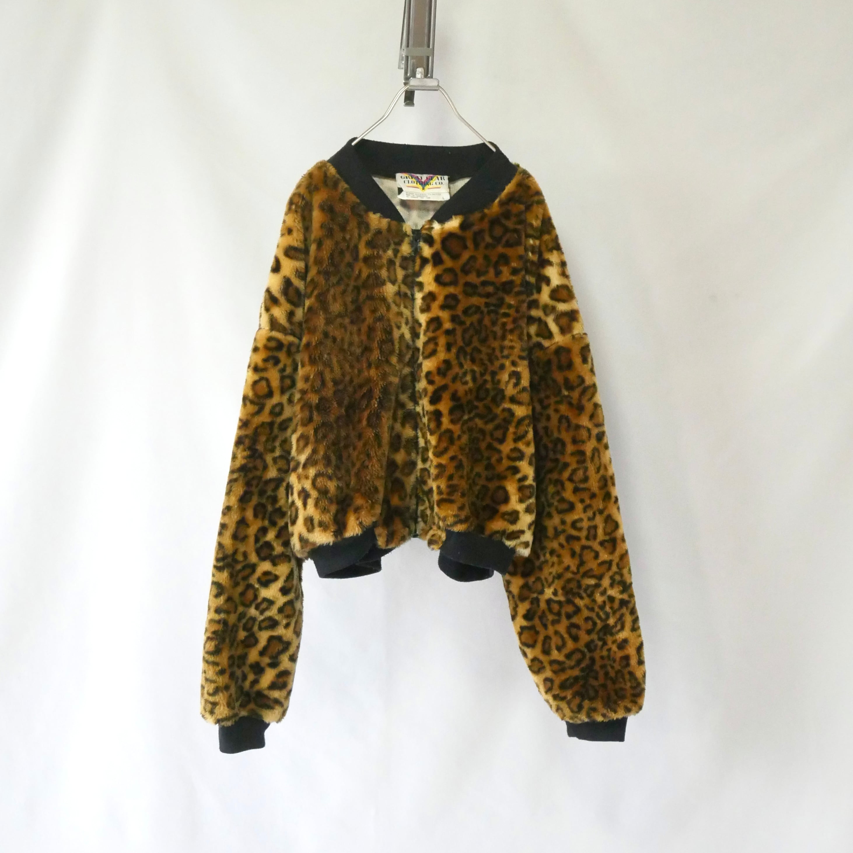ふわふわレオパードフェイクファーフリースが可愛い80年代ジップアップジャケットです。