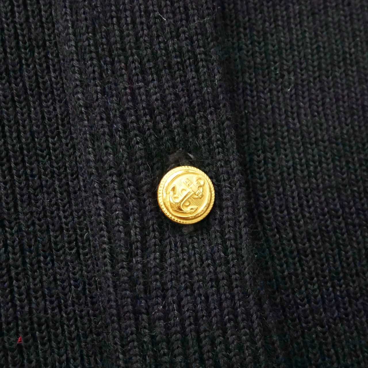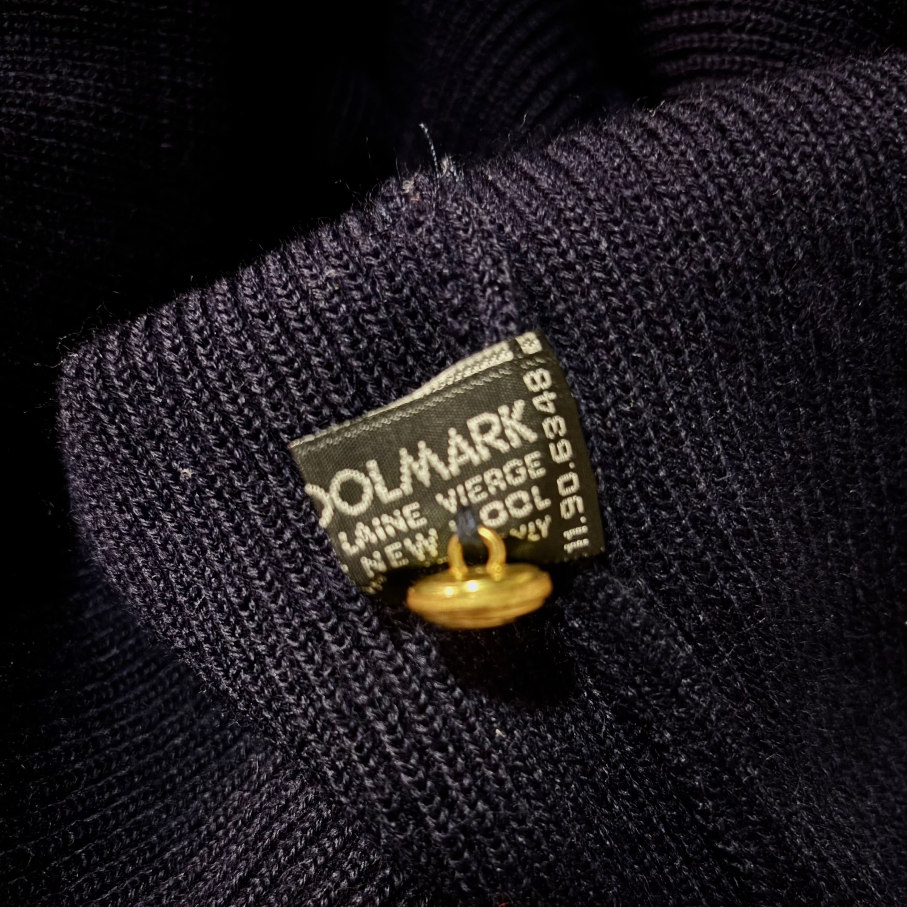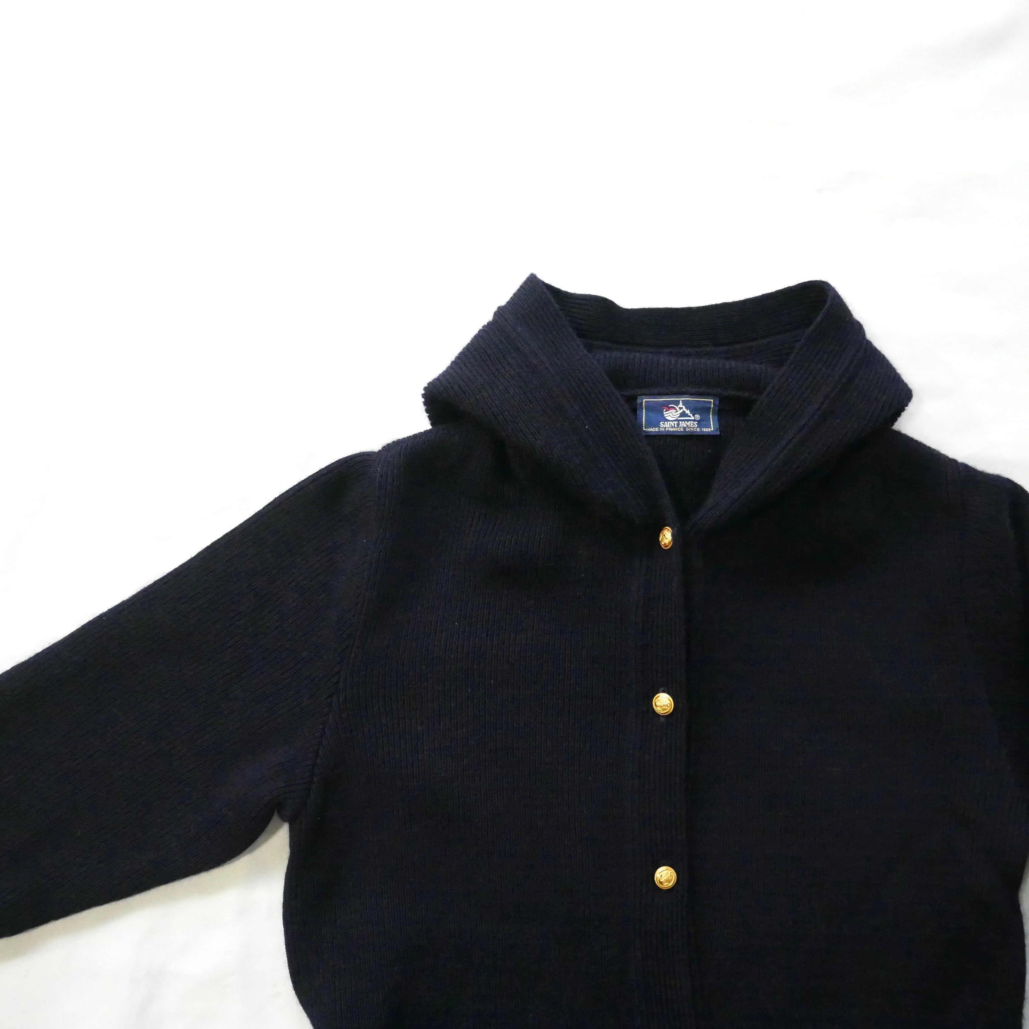 ネイビーの滑らかなリブニットに金ボタンが可愛い80〜90年代頃のセントジェームズ フード付きニットガウンです。
