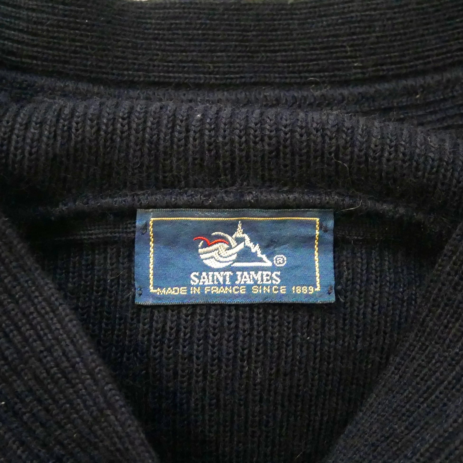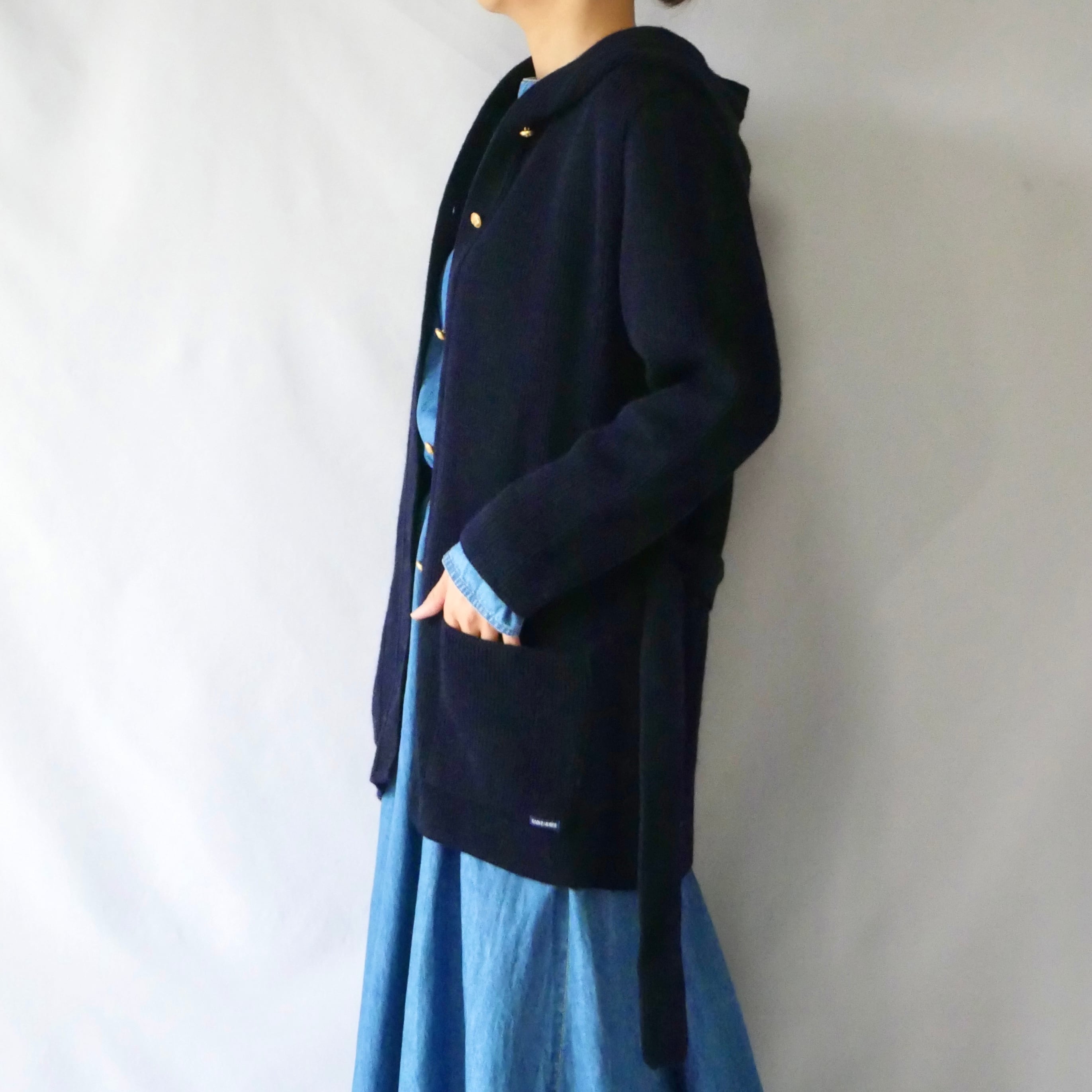 Made in France 80-90s SAINT JAMES navy hooded knit gown 80-90年代 フランス製 セントジェームズ ネイビー ウール フード付き ニットガウン