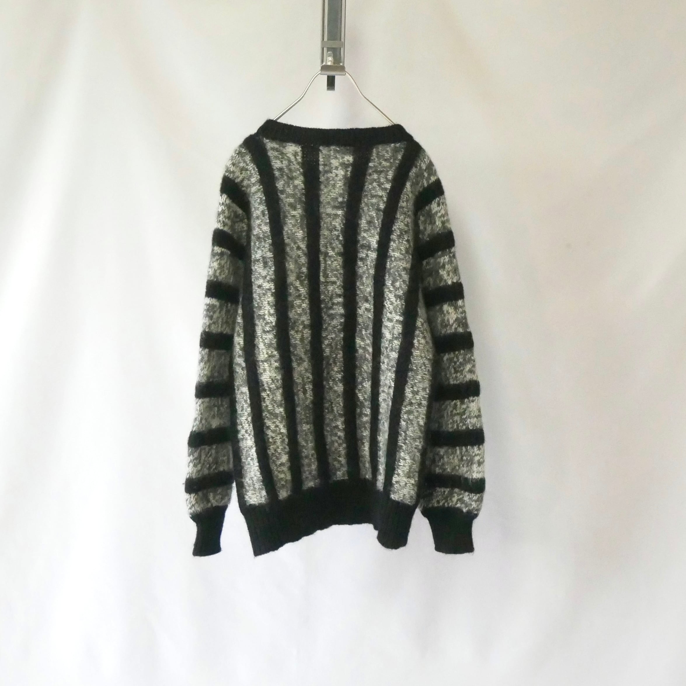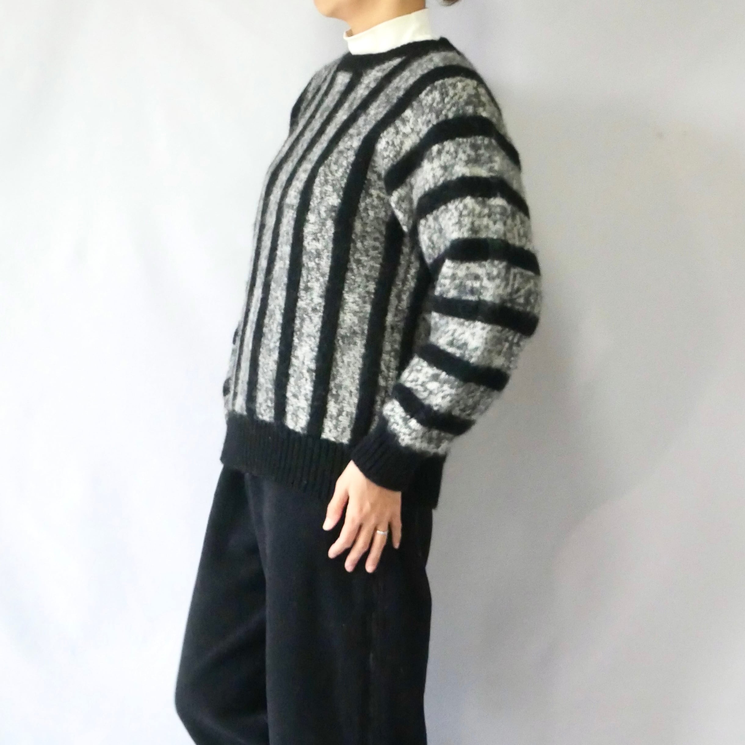 80s vintage black grey stripe wool knit 80年代 ヴィンテージ 黒 グレー ストライプ ボーダー ウールニット | &Dorothy used&vintage 古着屋