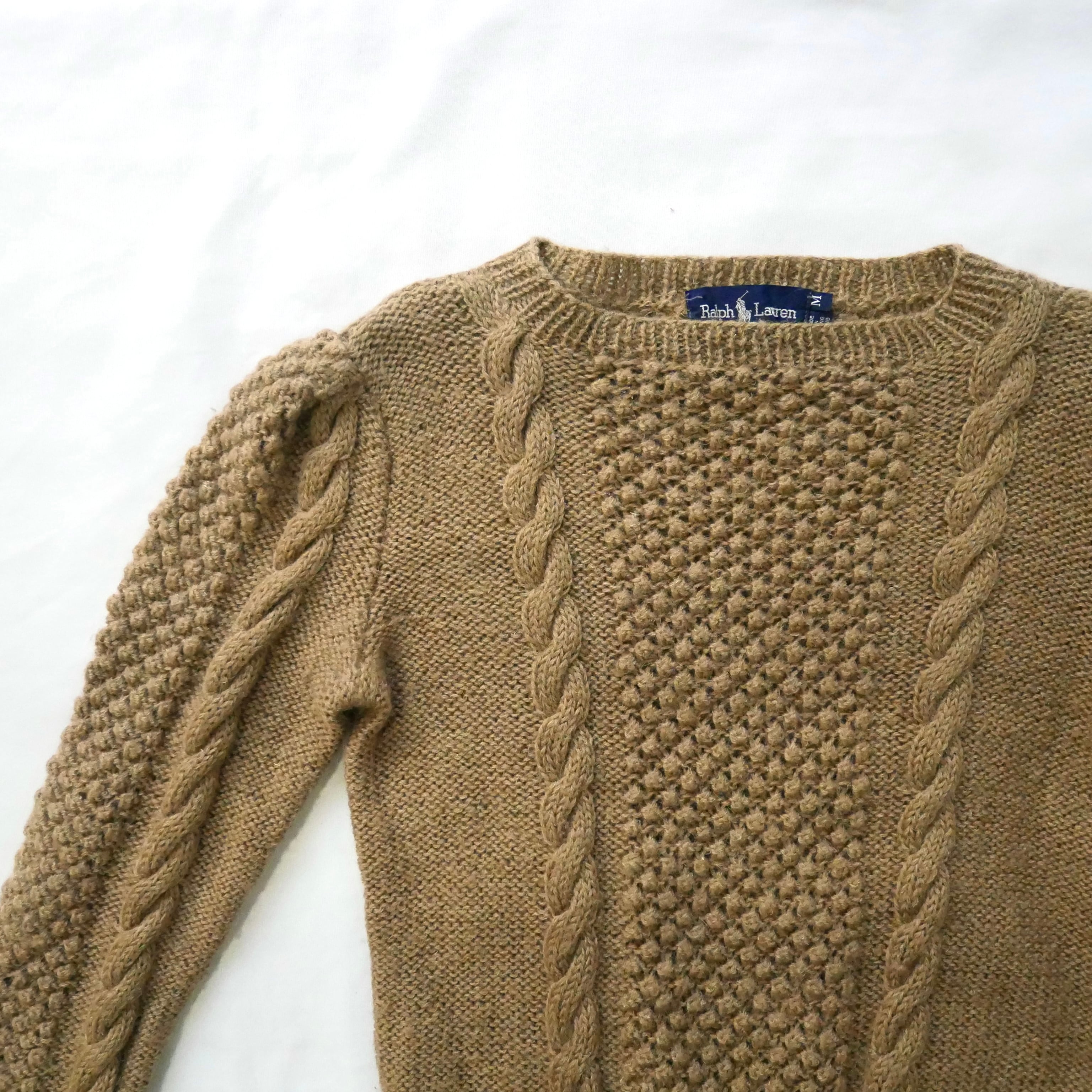 80s Ralph Lauren brown wool fisherman knit 80年代 ヴィンテージ ブラウン ラルフローレン フィッシャーマンニット | &Dorothy used&vintage 古着屋