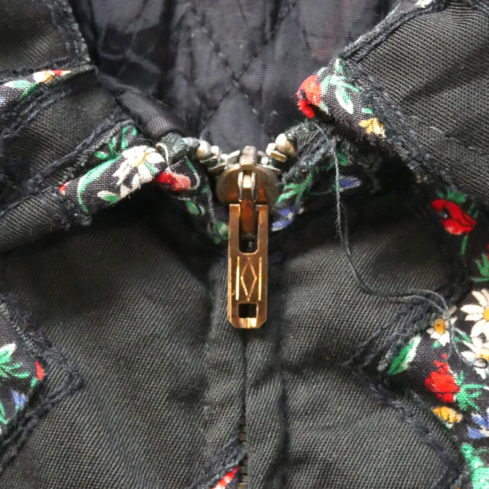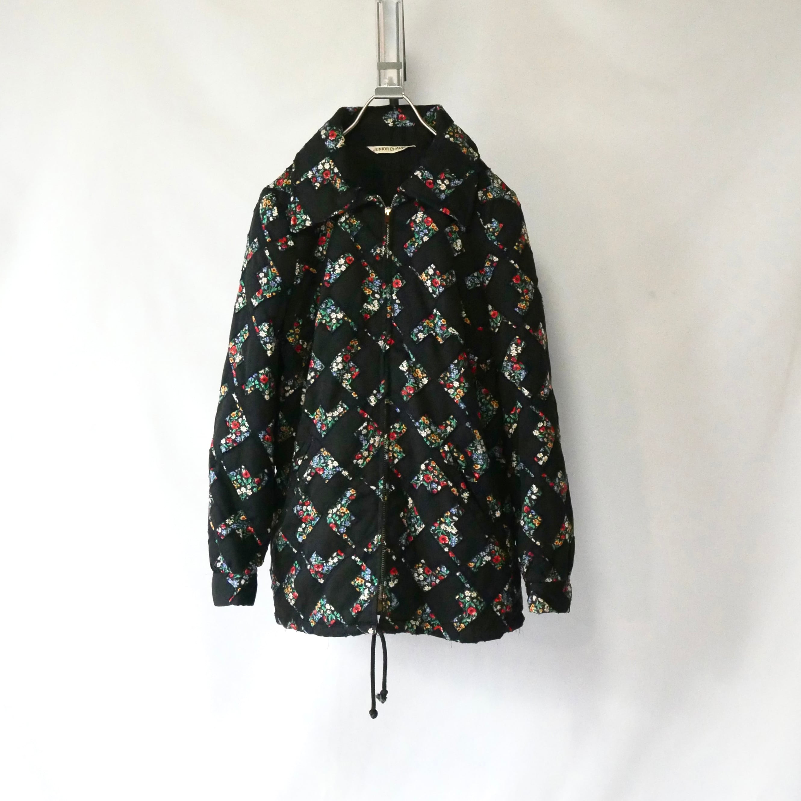 70s vintage madein USA floral patchwork quilting jacket 70年代 ヴィンテージ アメリカ製 黒小花柄 キルティング ジャケット
