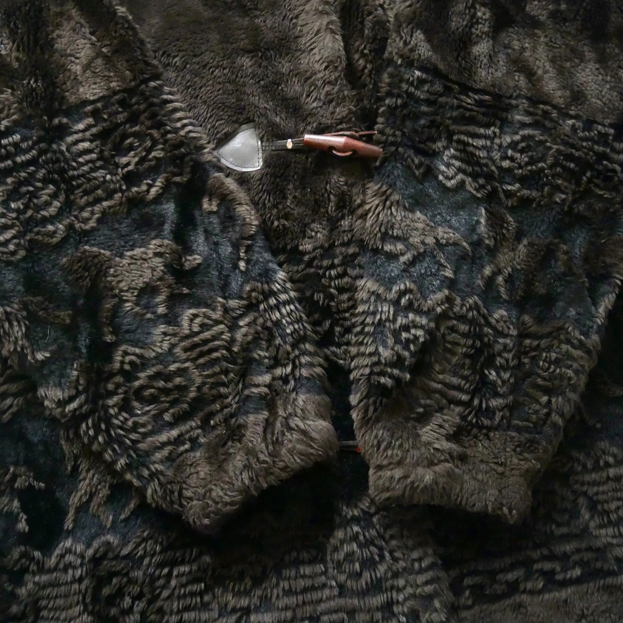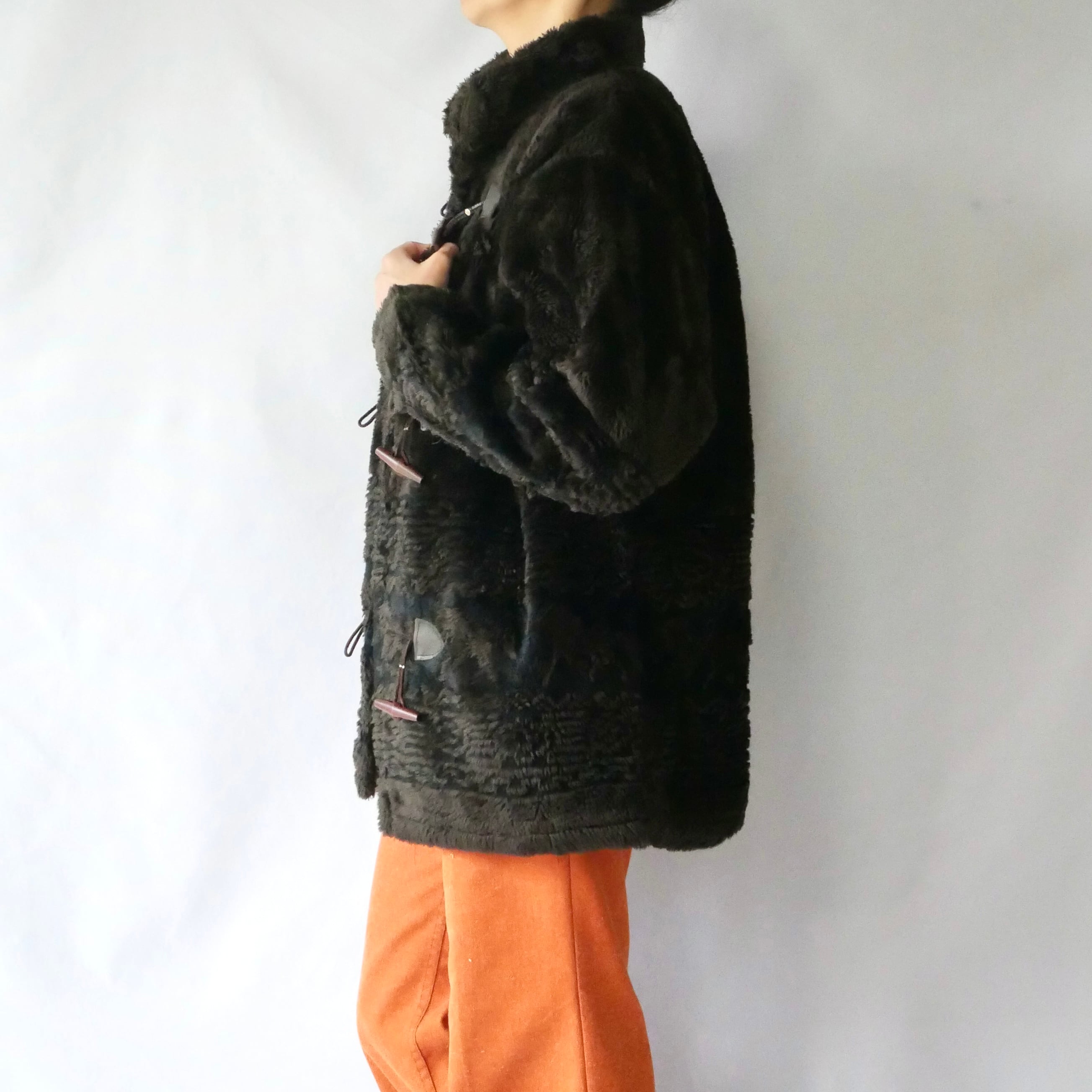 USA製ブラウンフェイクファーダッフルジャケットです。
