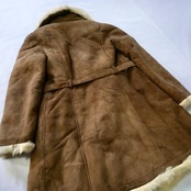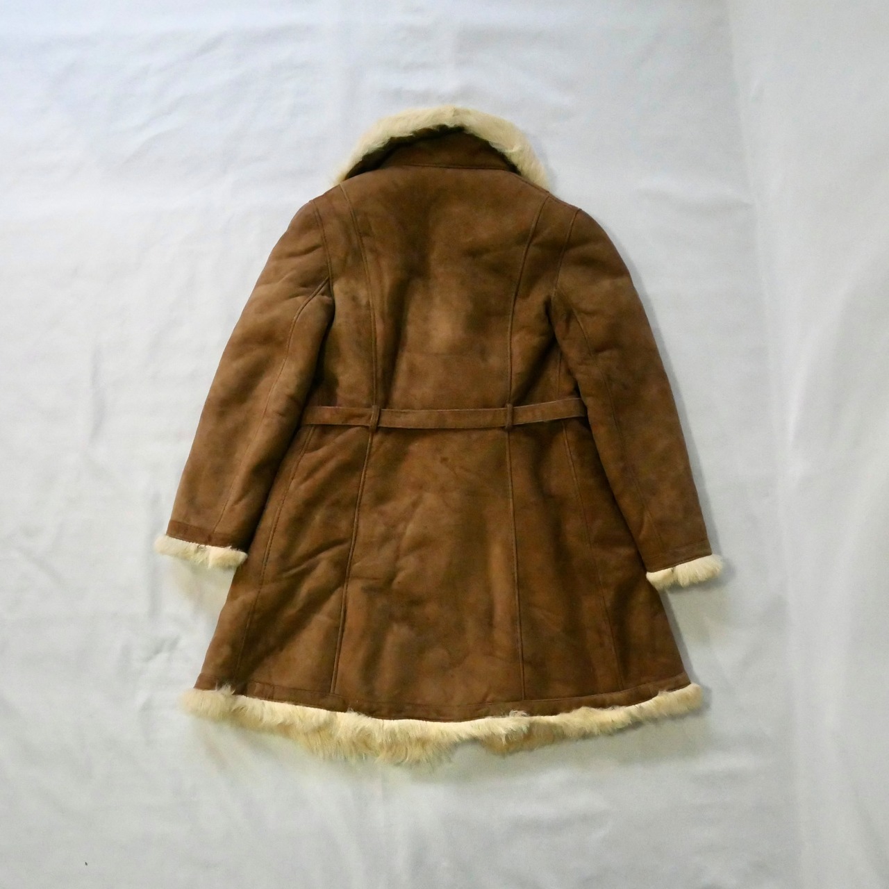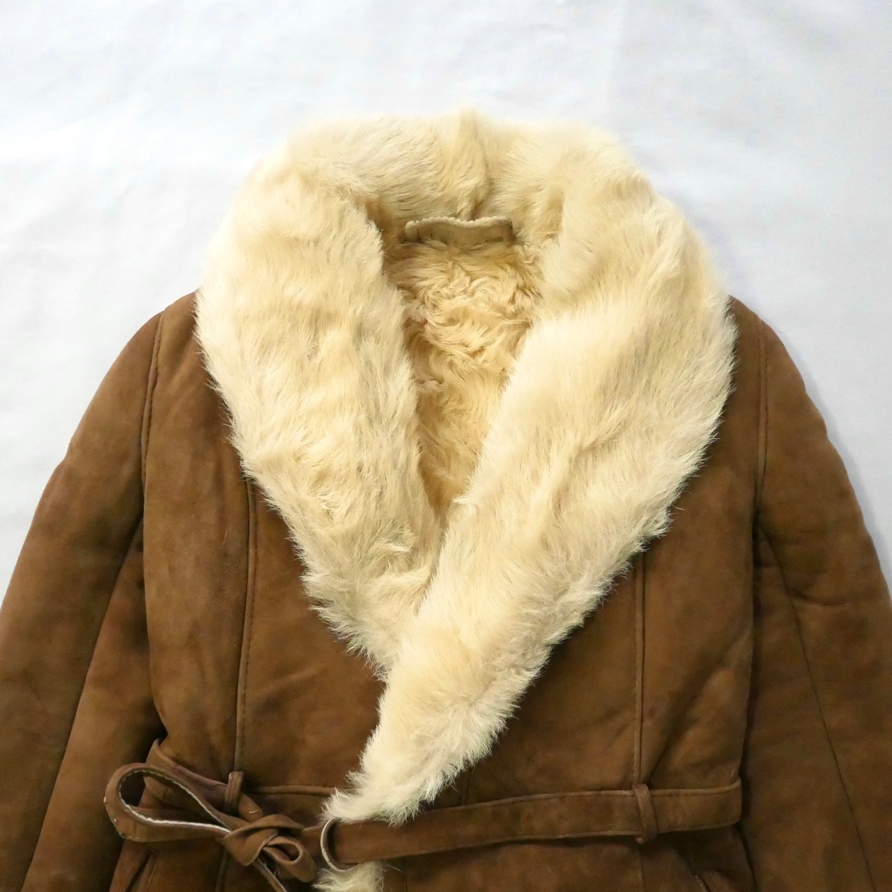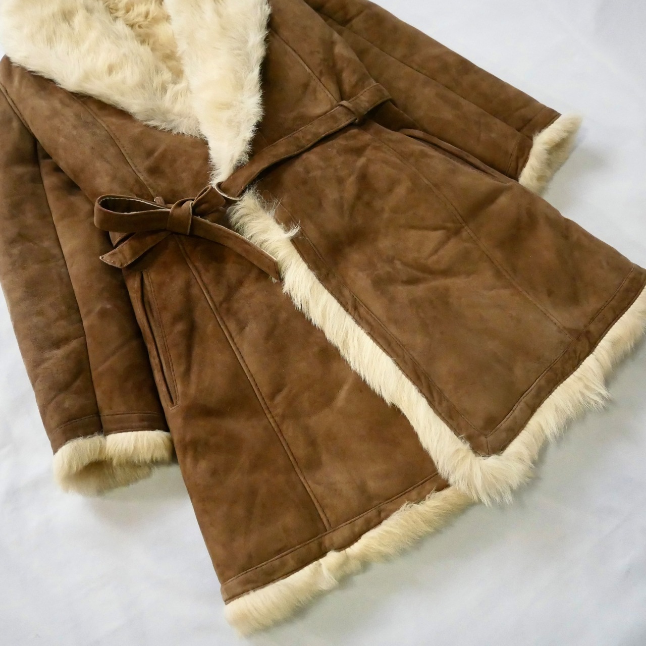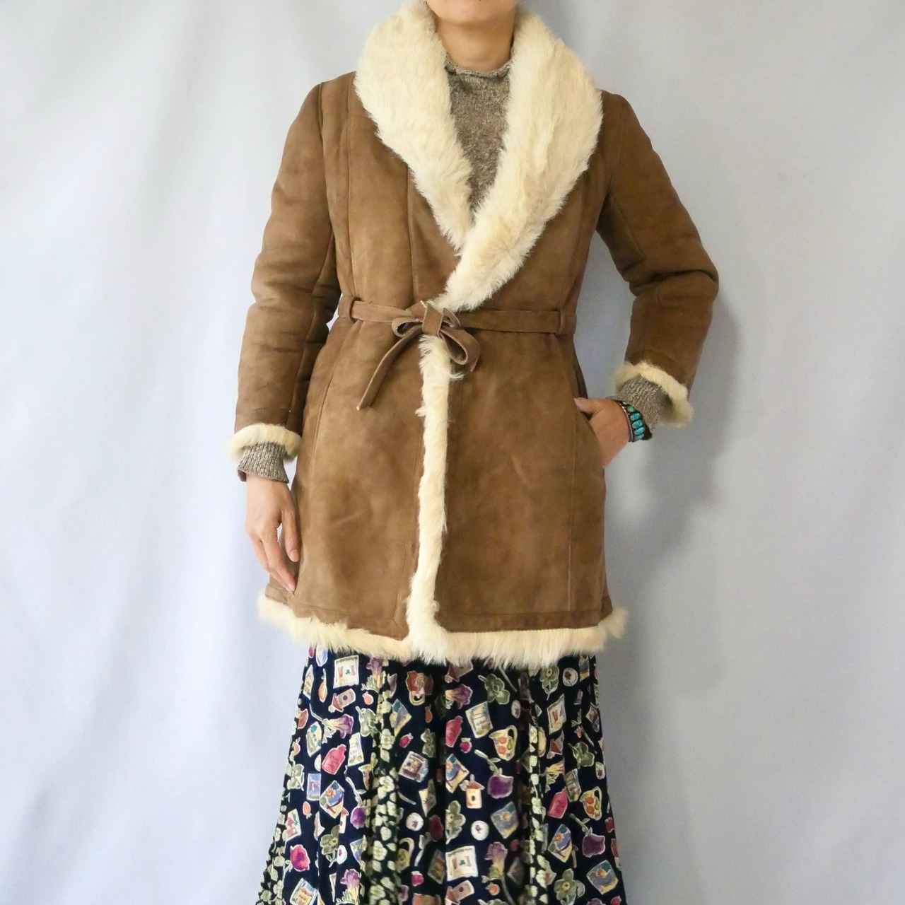 Made in Spain sheepskin beige wrap coat スペイン製 ベージュ ブラウン ムートン ベルト付き ラップコート | &Dorothy used&vintage 古着屋