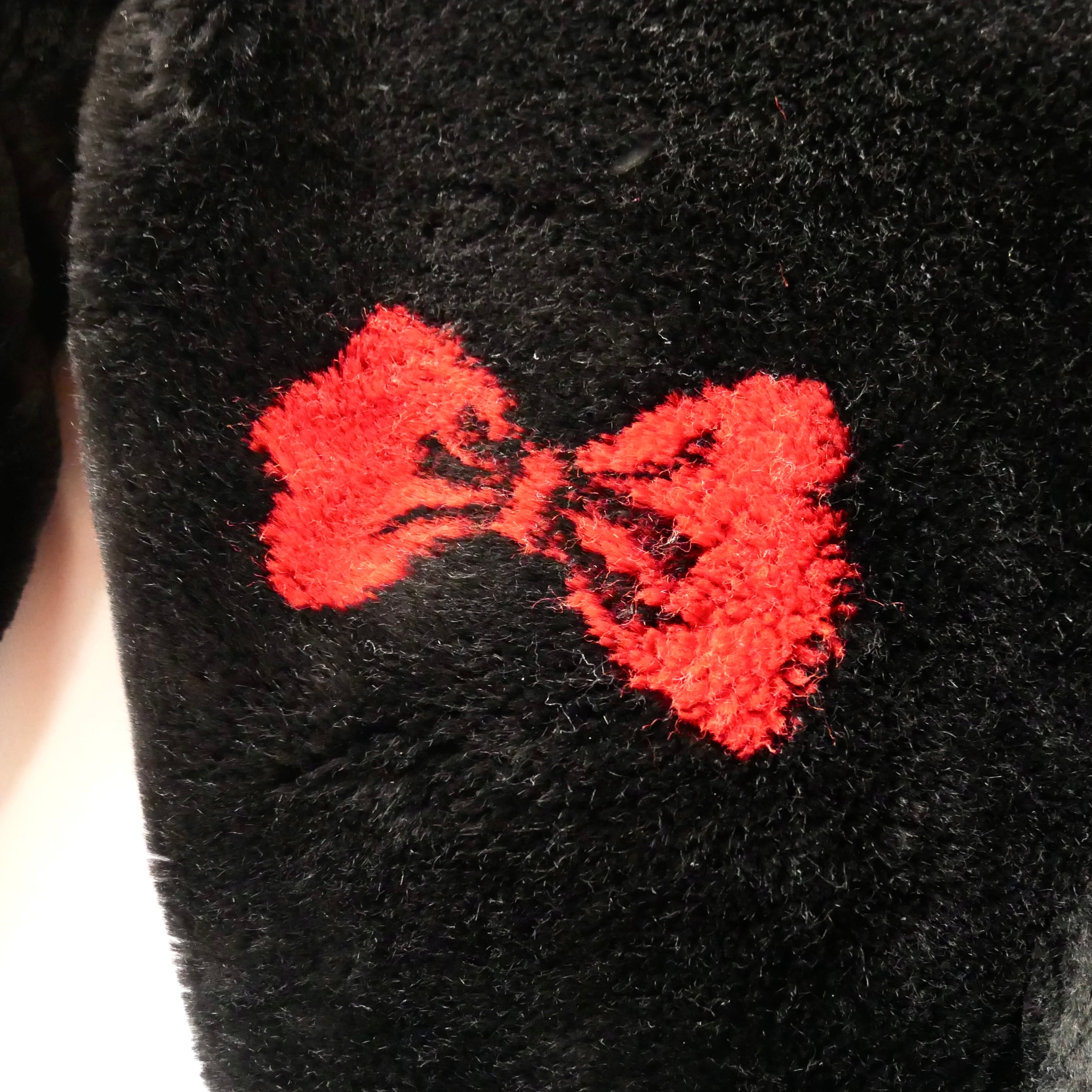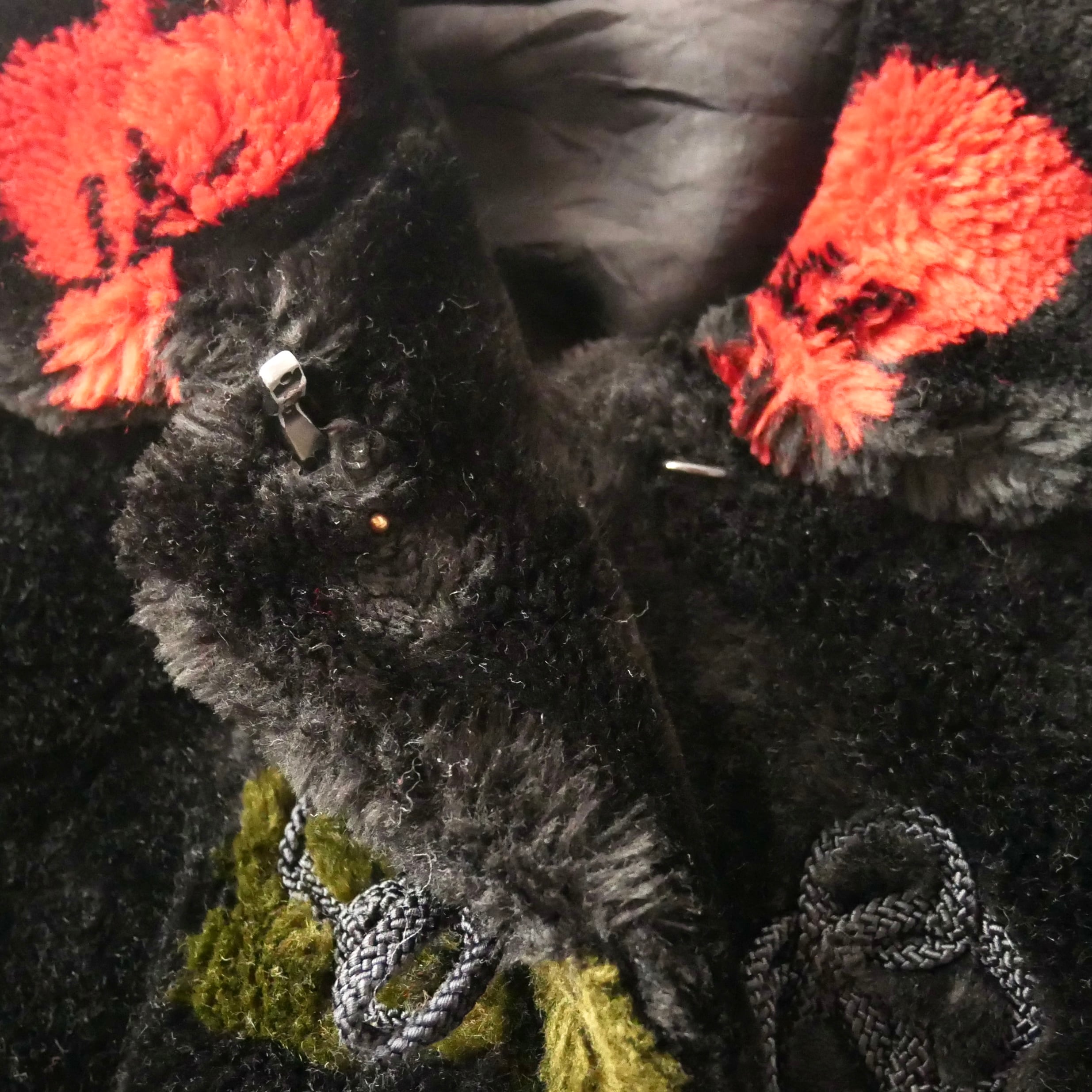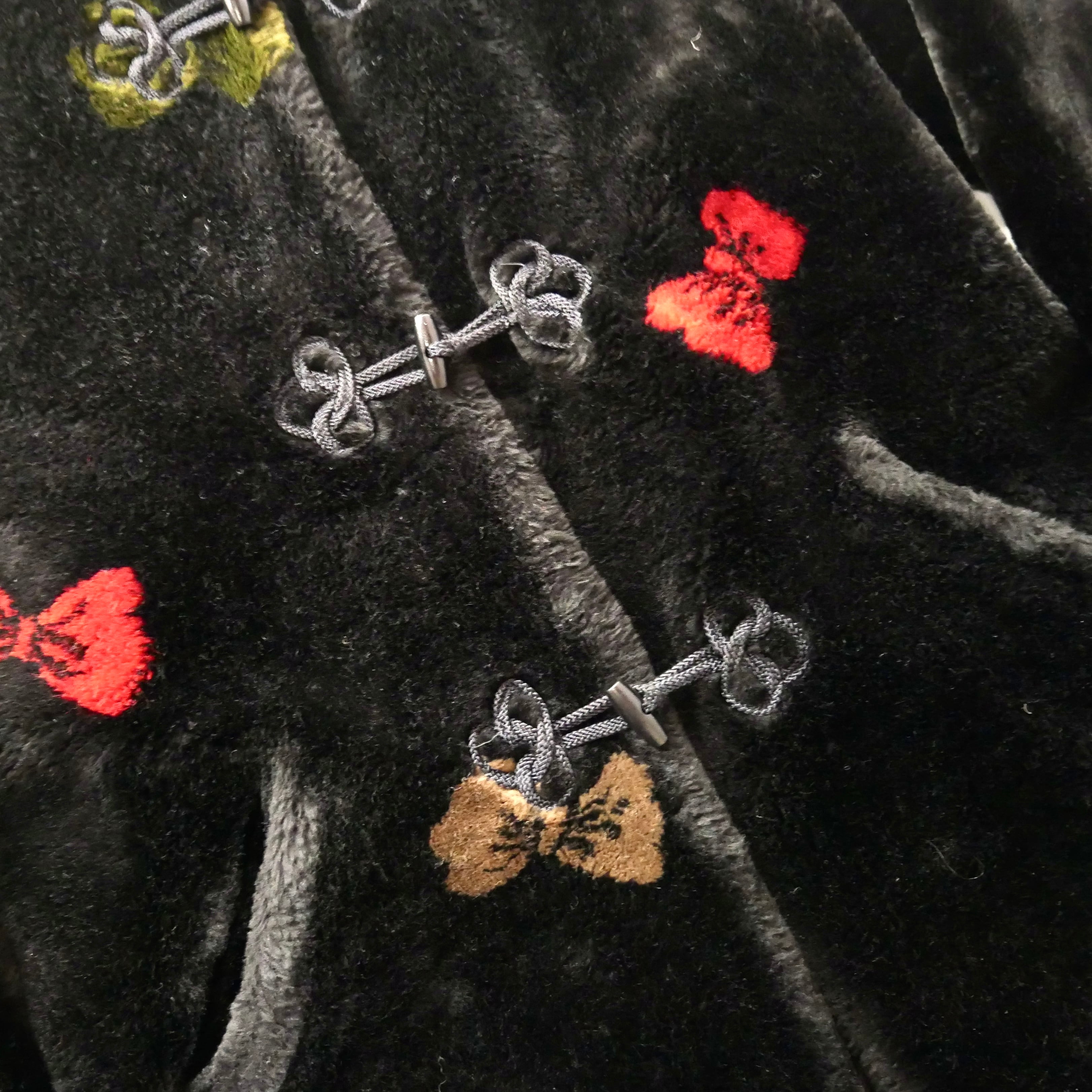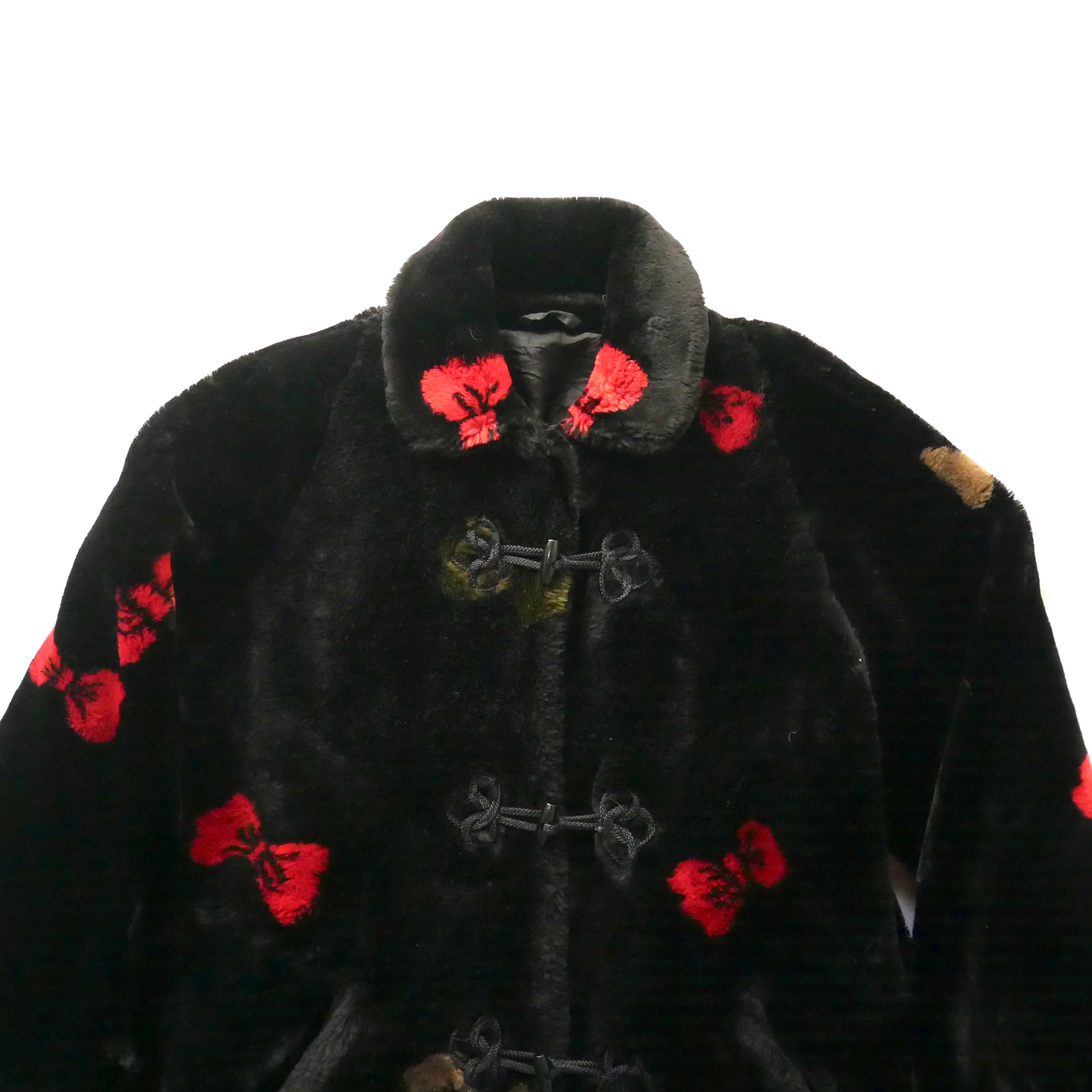 70-80s vintage madein France black ribbon fakefur jacket ヴィンテージ フランス製 黒 リボン総柄 フェイクファー ジャケット