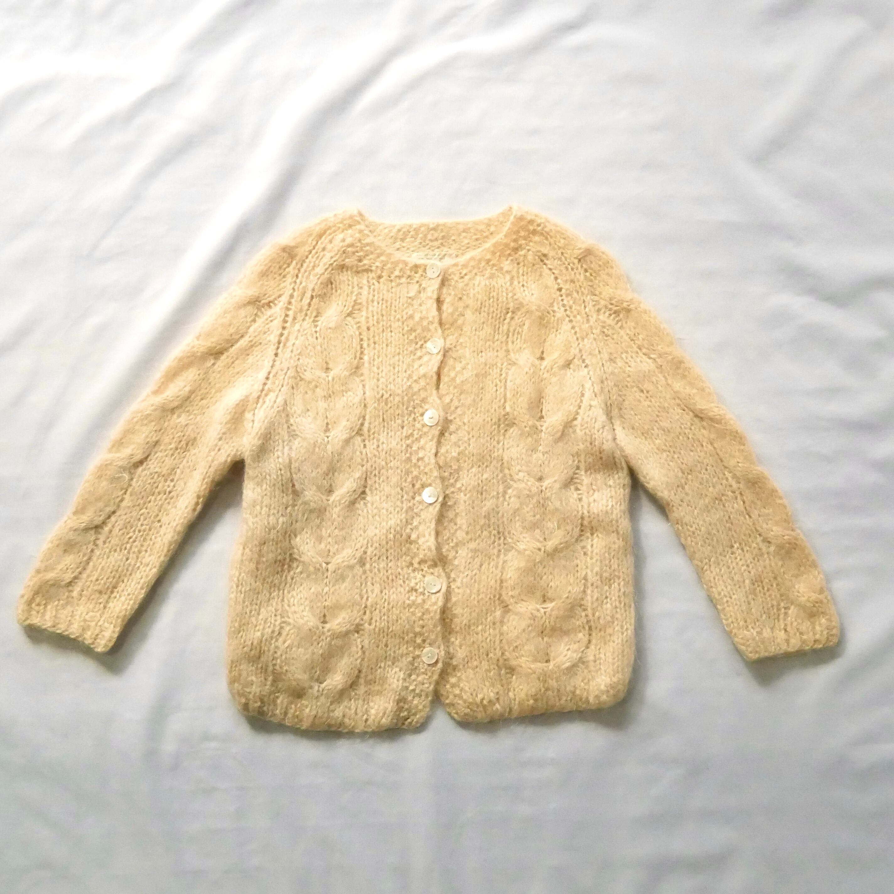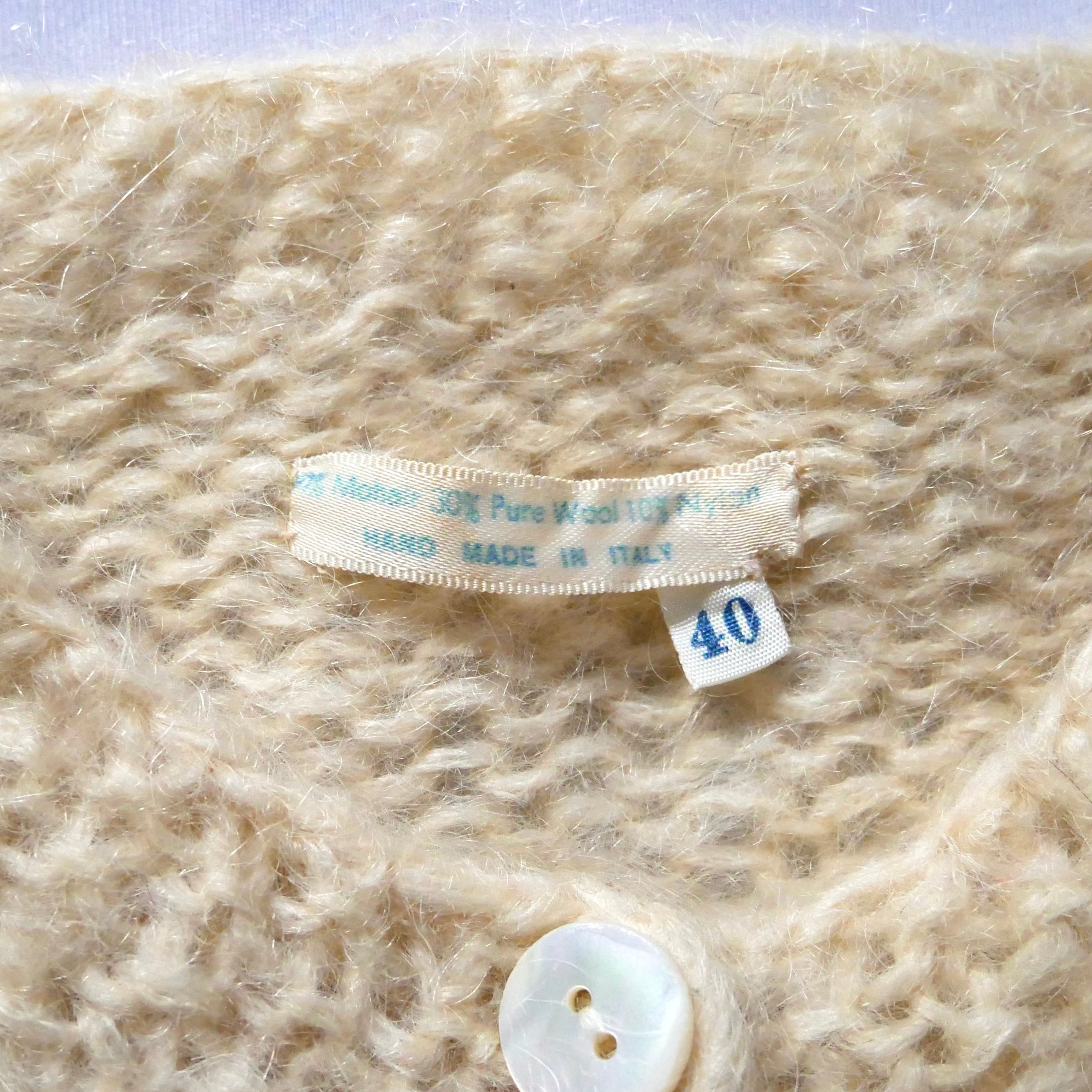 60〜70年代頃のイタリア製アイボリーモヘアミックスニットカーディガンです。