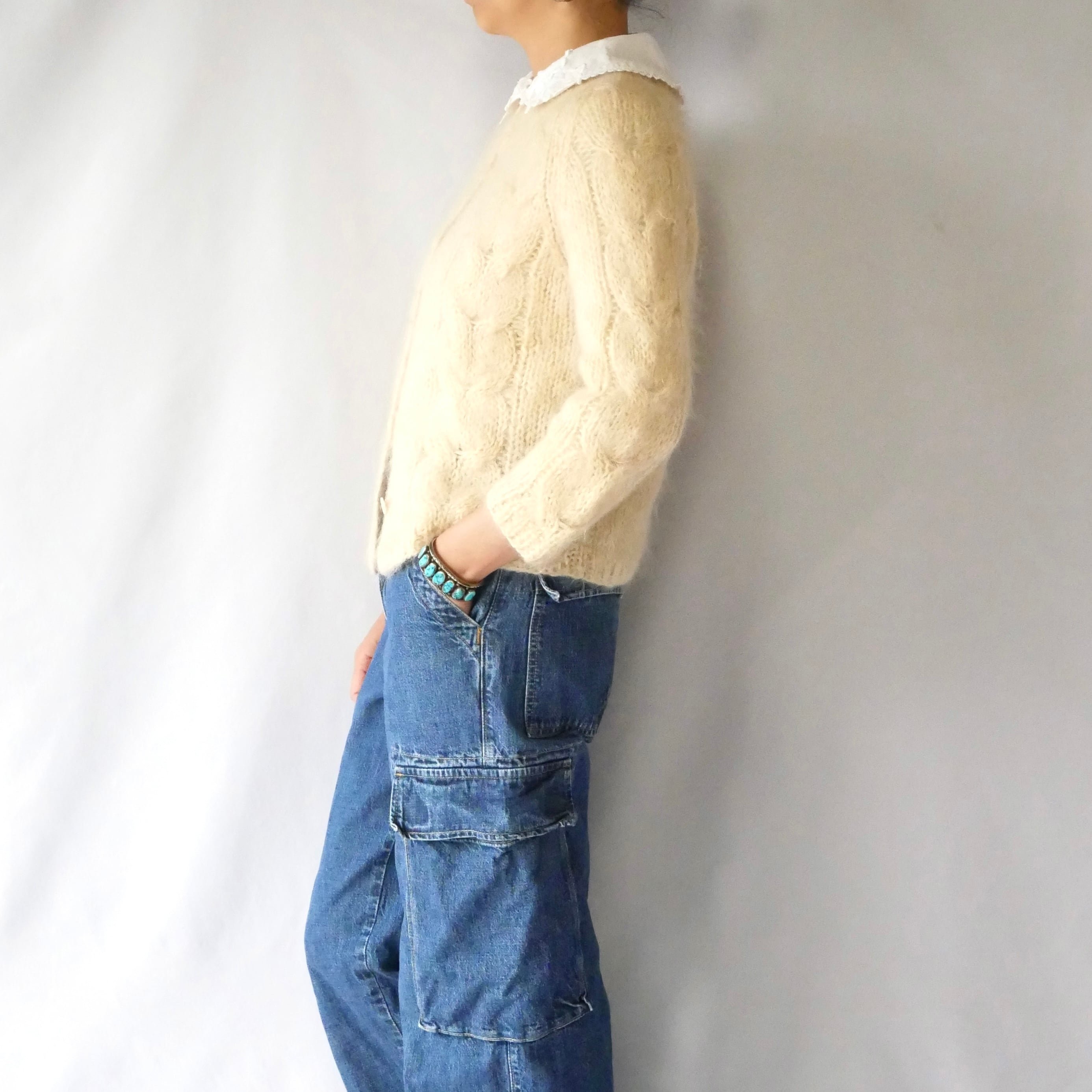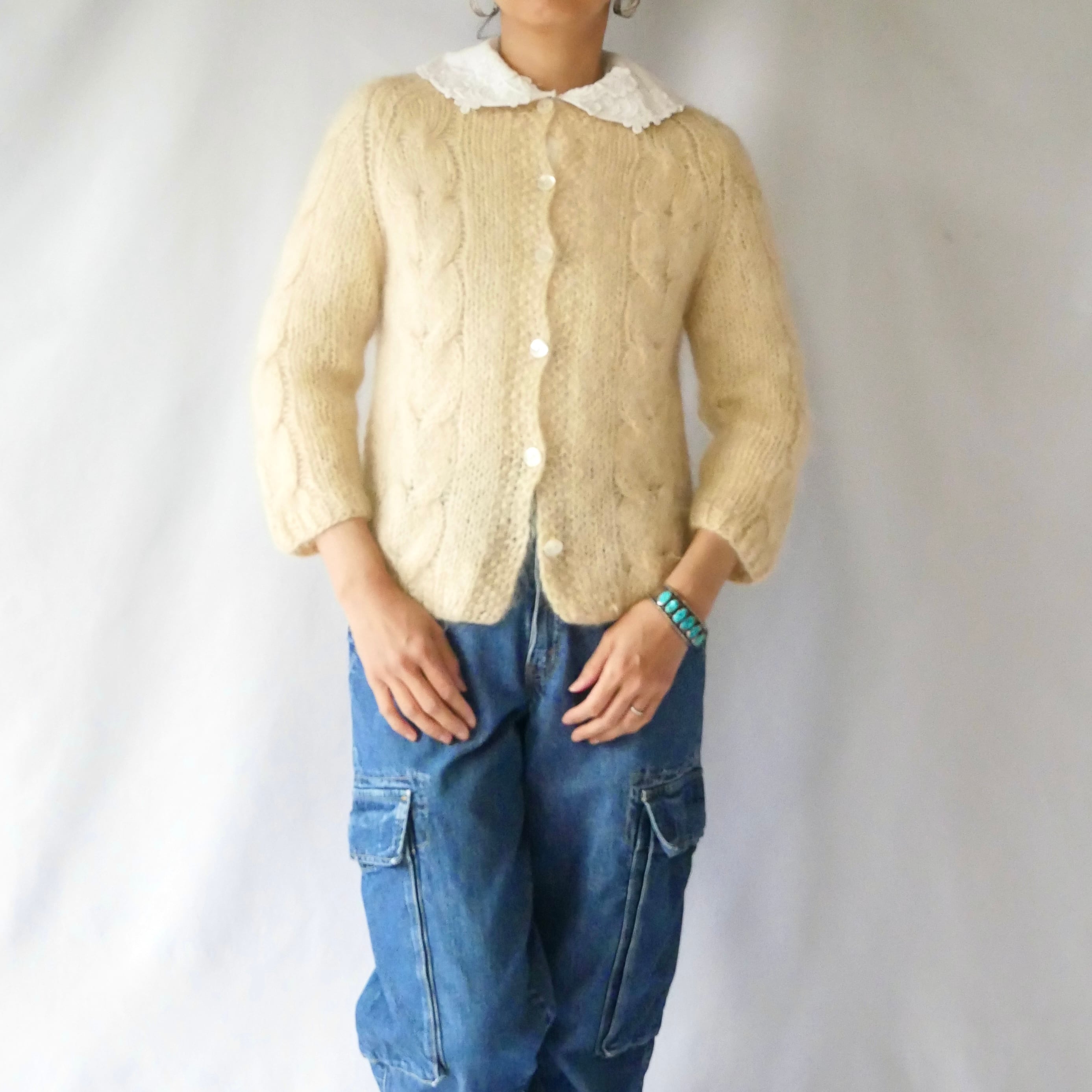 70s vintage madein Italy ivory mohair knit cardigan 70年代 ヴィンテージ イタリア製 アイボリー モヘア ニットカーディガン