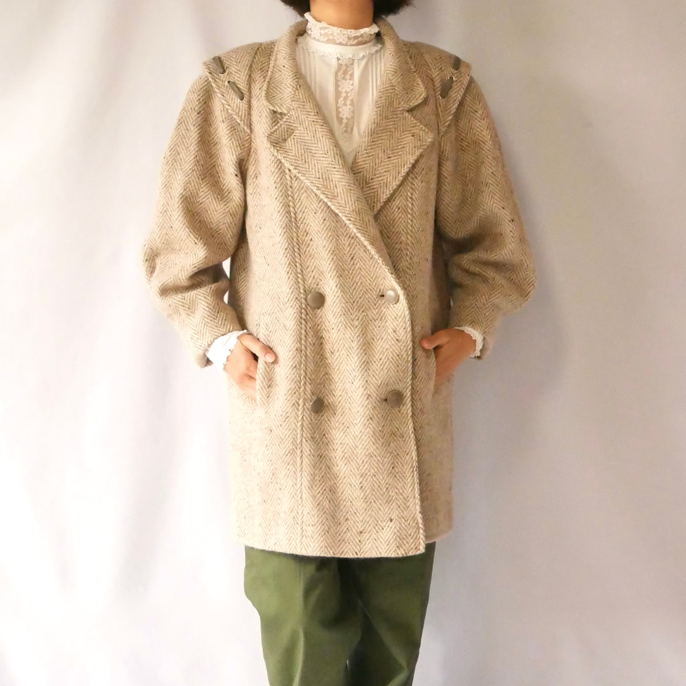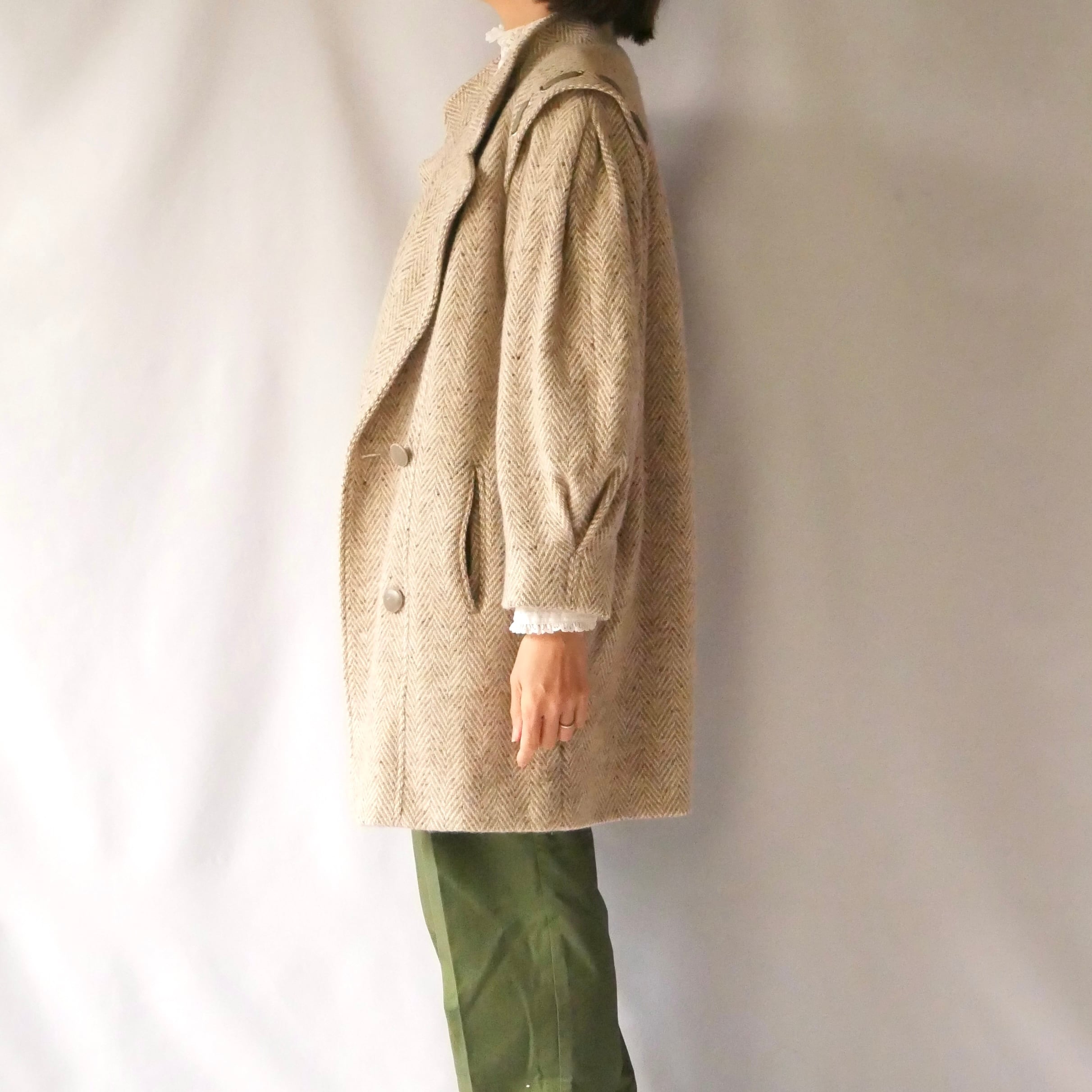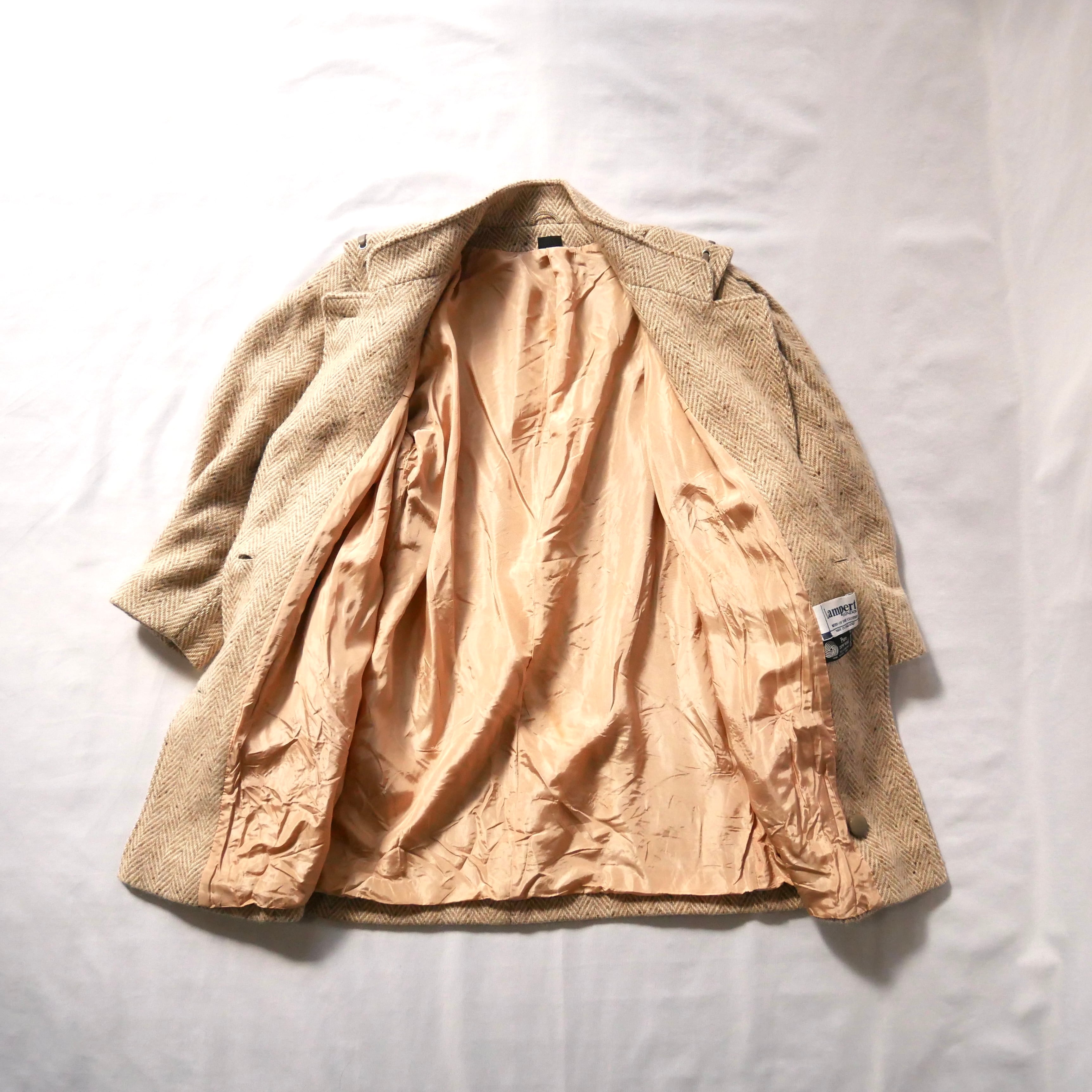80s vintage madein England lampert wool herringbone coat 80年代 ヴィンテージ イングランド製 ベージュ ヘリンボーン ウールコート | &Dorothy used&vintage 古着屋