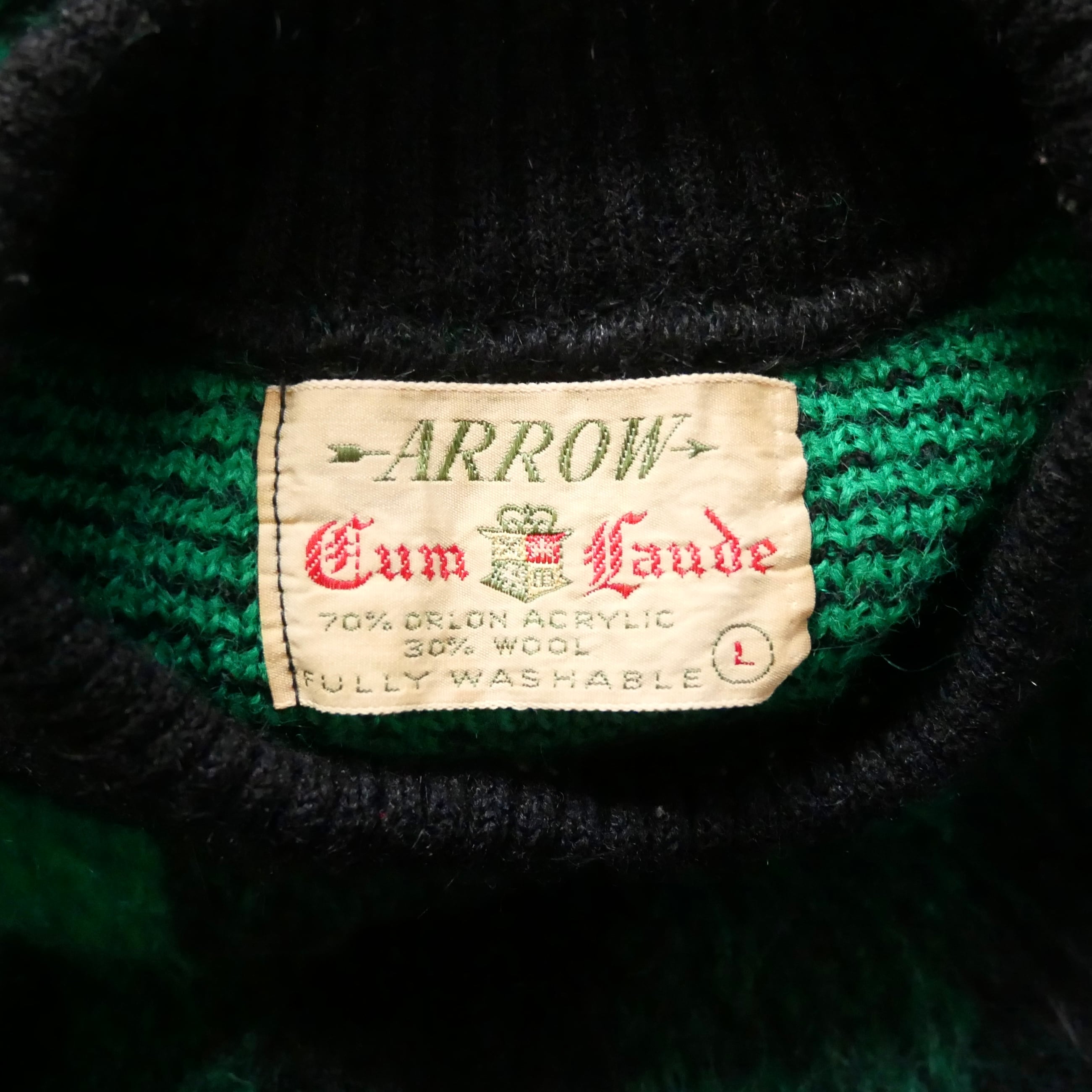 60s vintage ARROW green buffalo check knit 60年代 ヴィンテージ アロー バッファローチェック 緑 アクリルニット