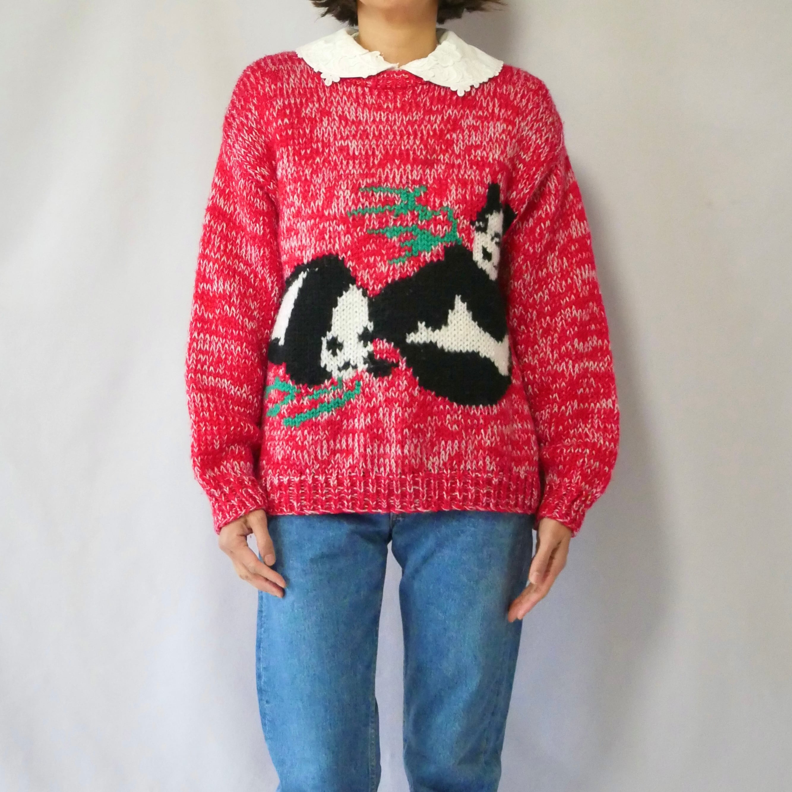 2頭のパンダが愛らしい、80年代アクリルニットです。