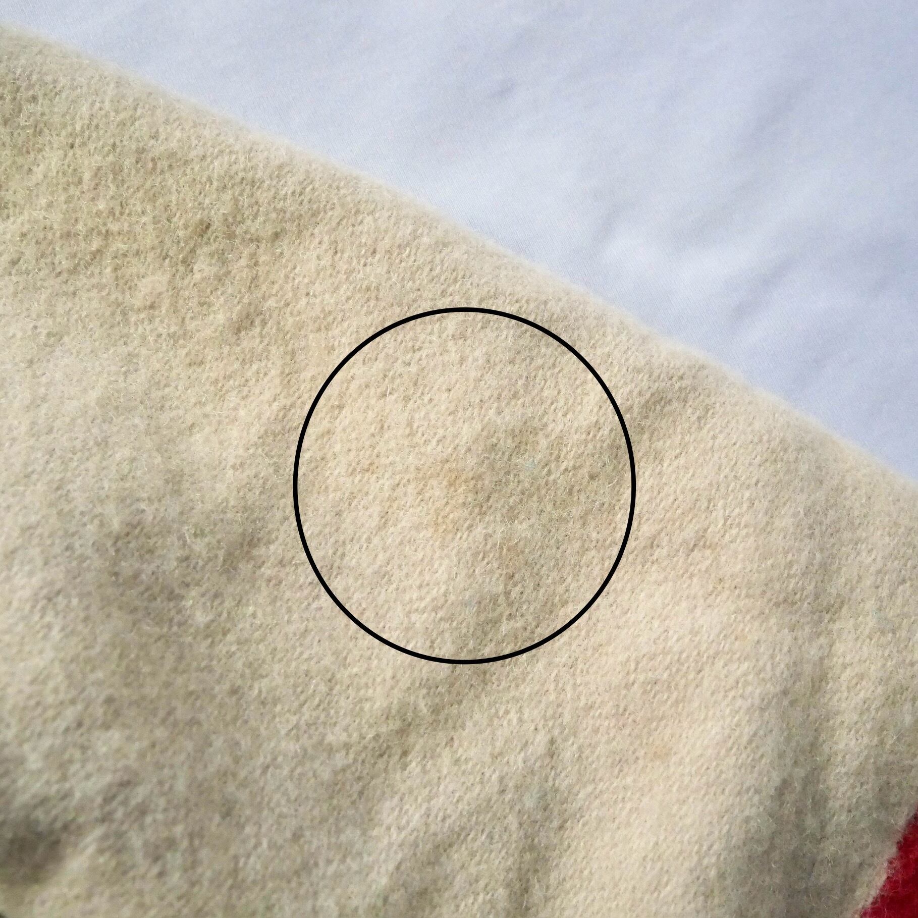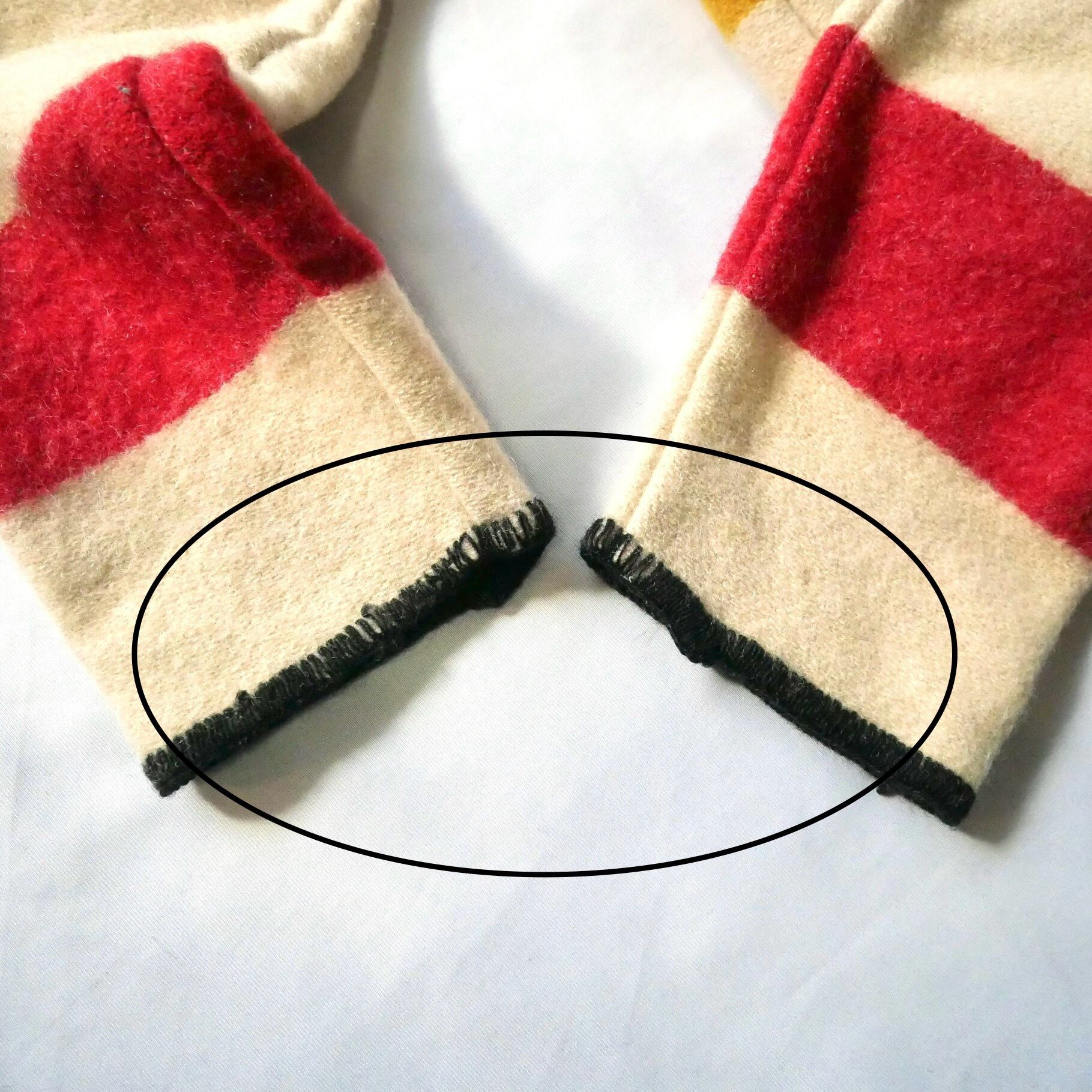 *袖口の黒のかがり縫いされている毛糸にほつれあり。