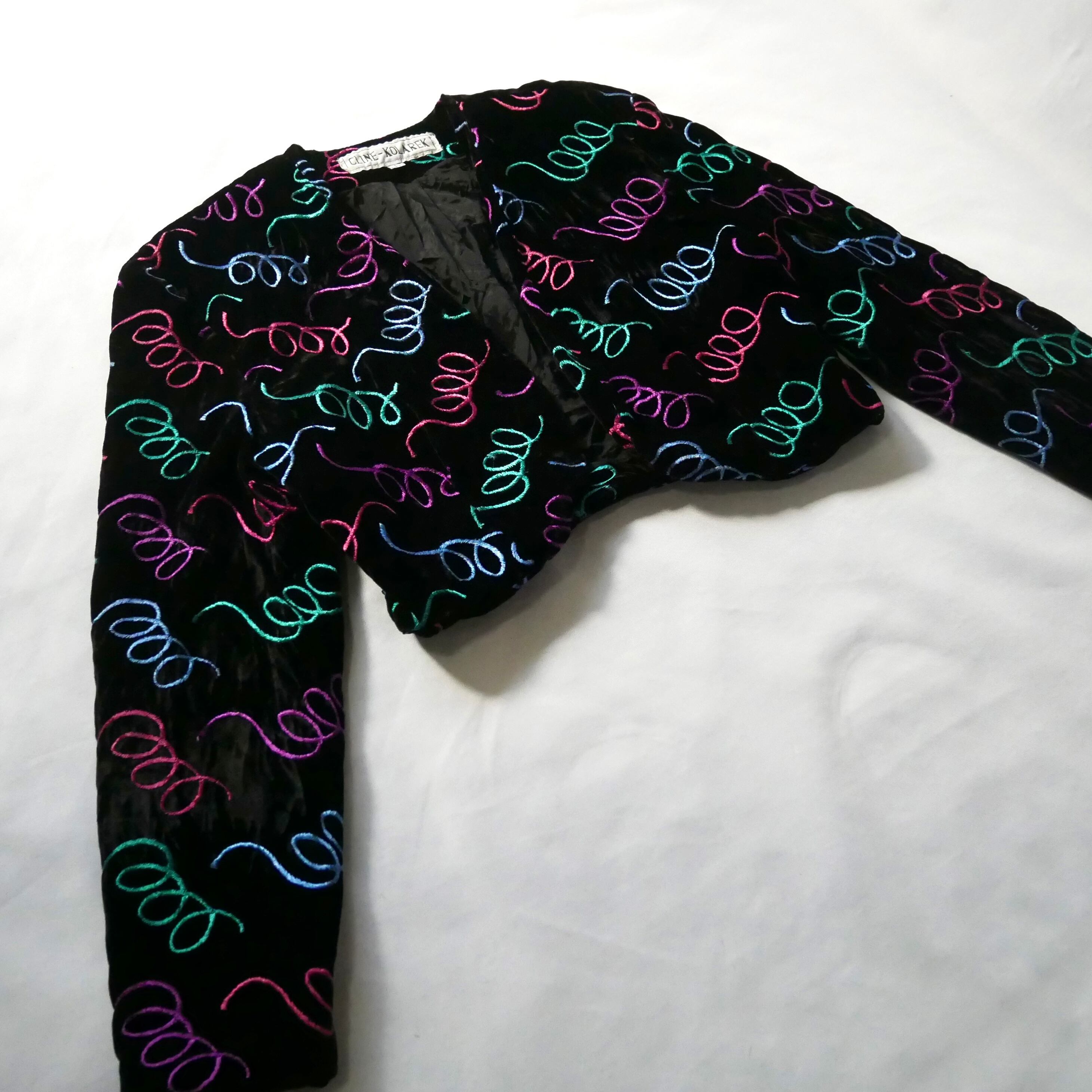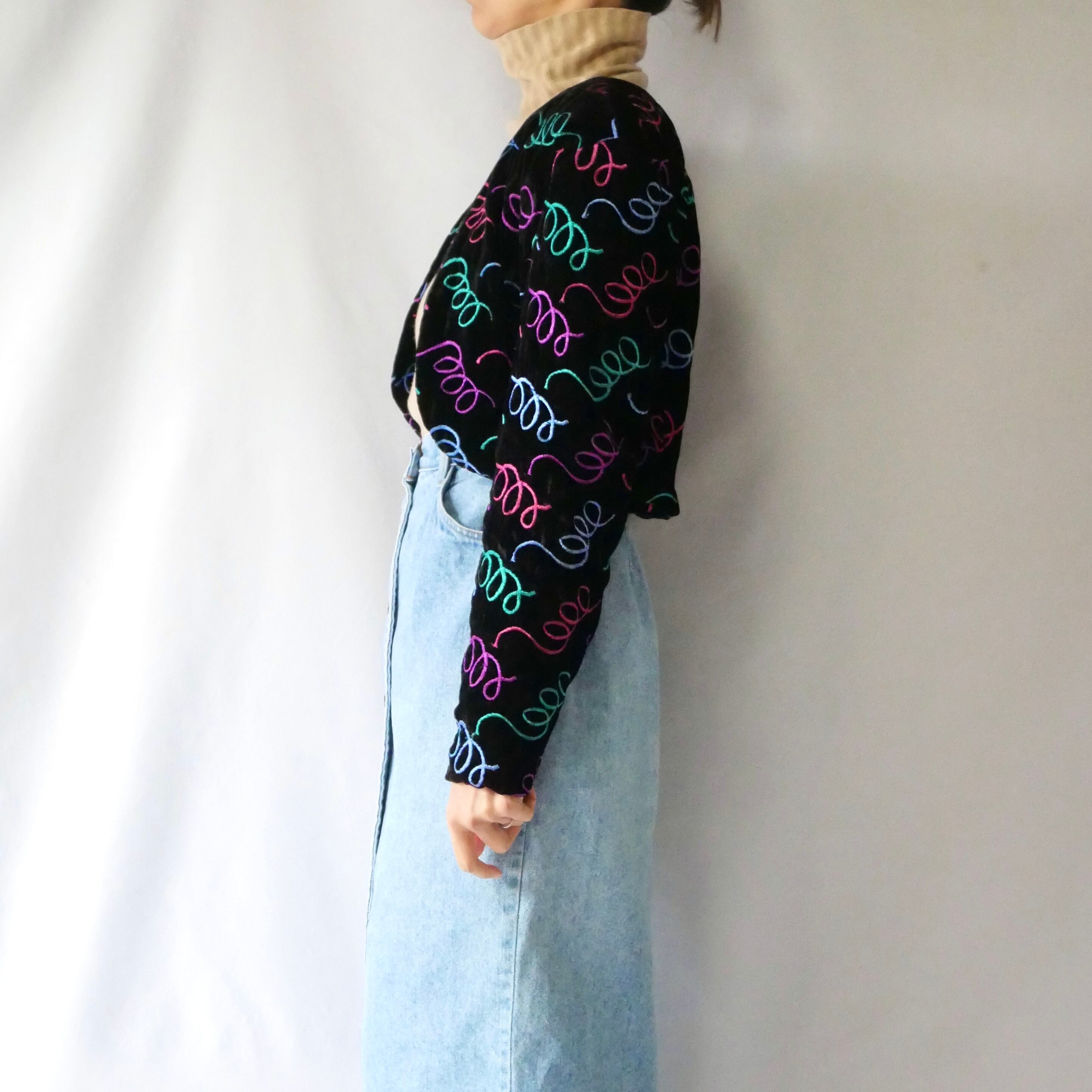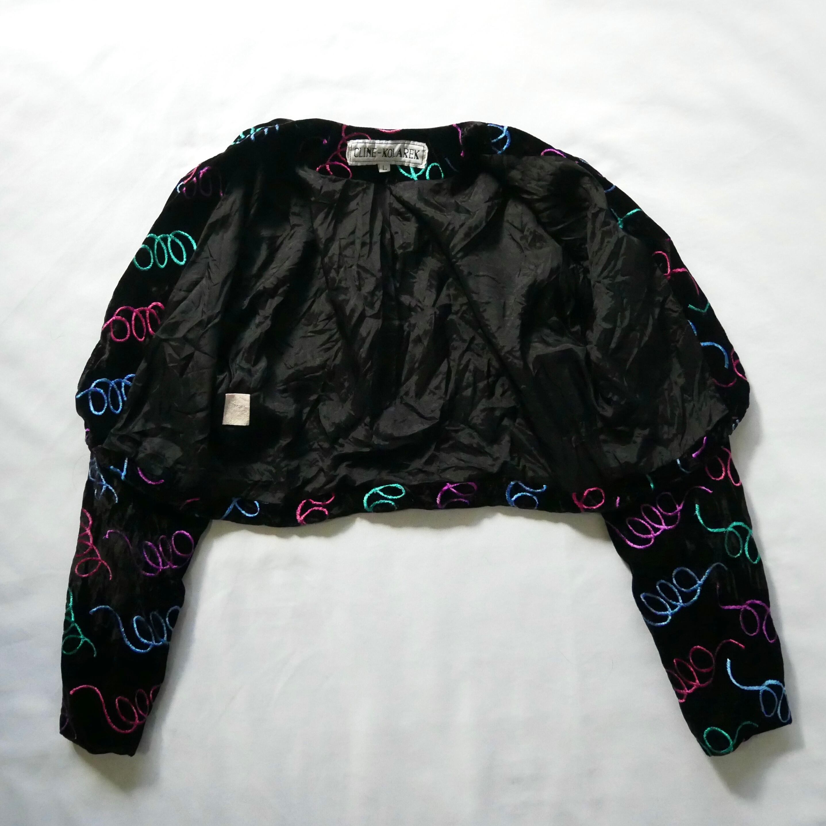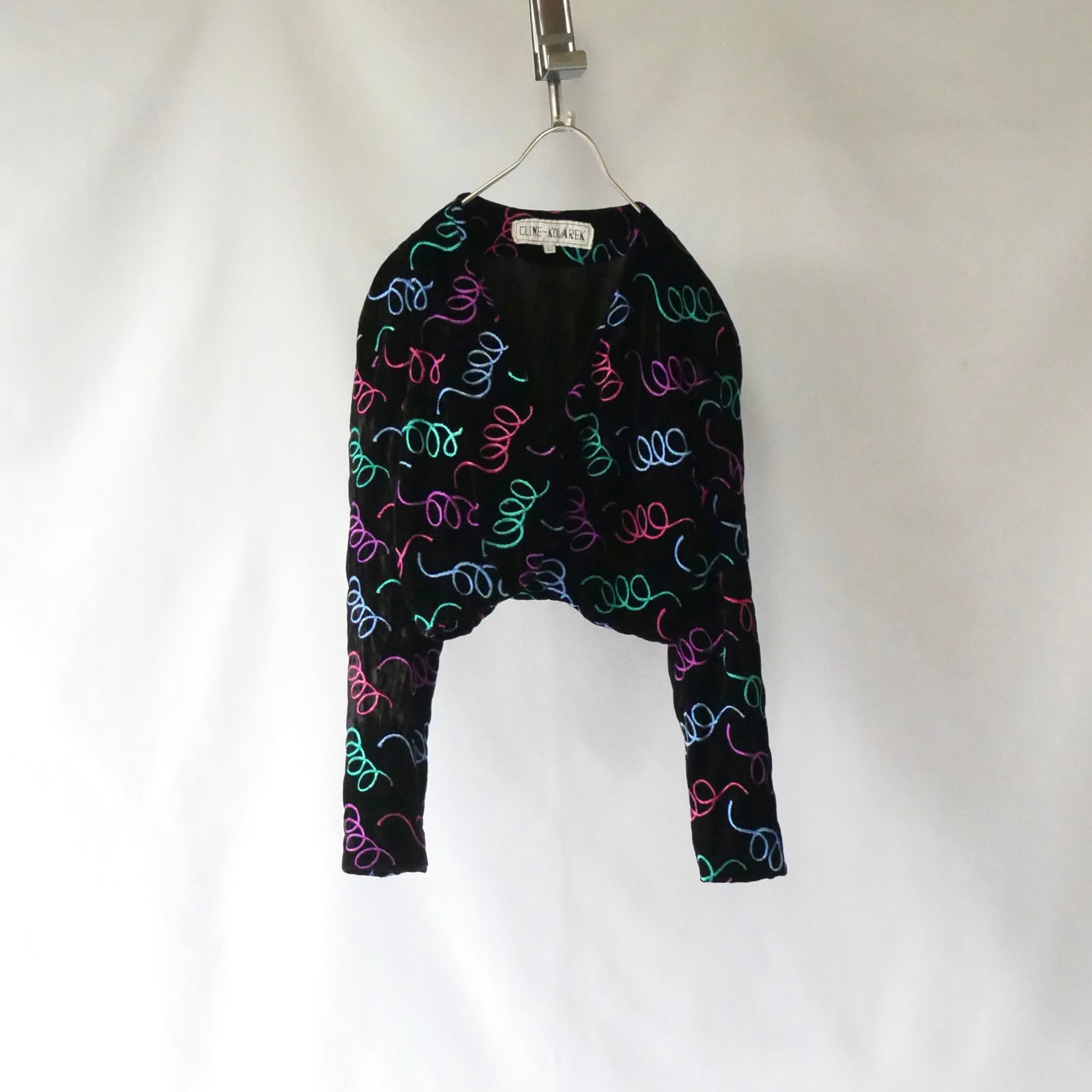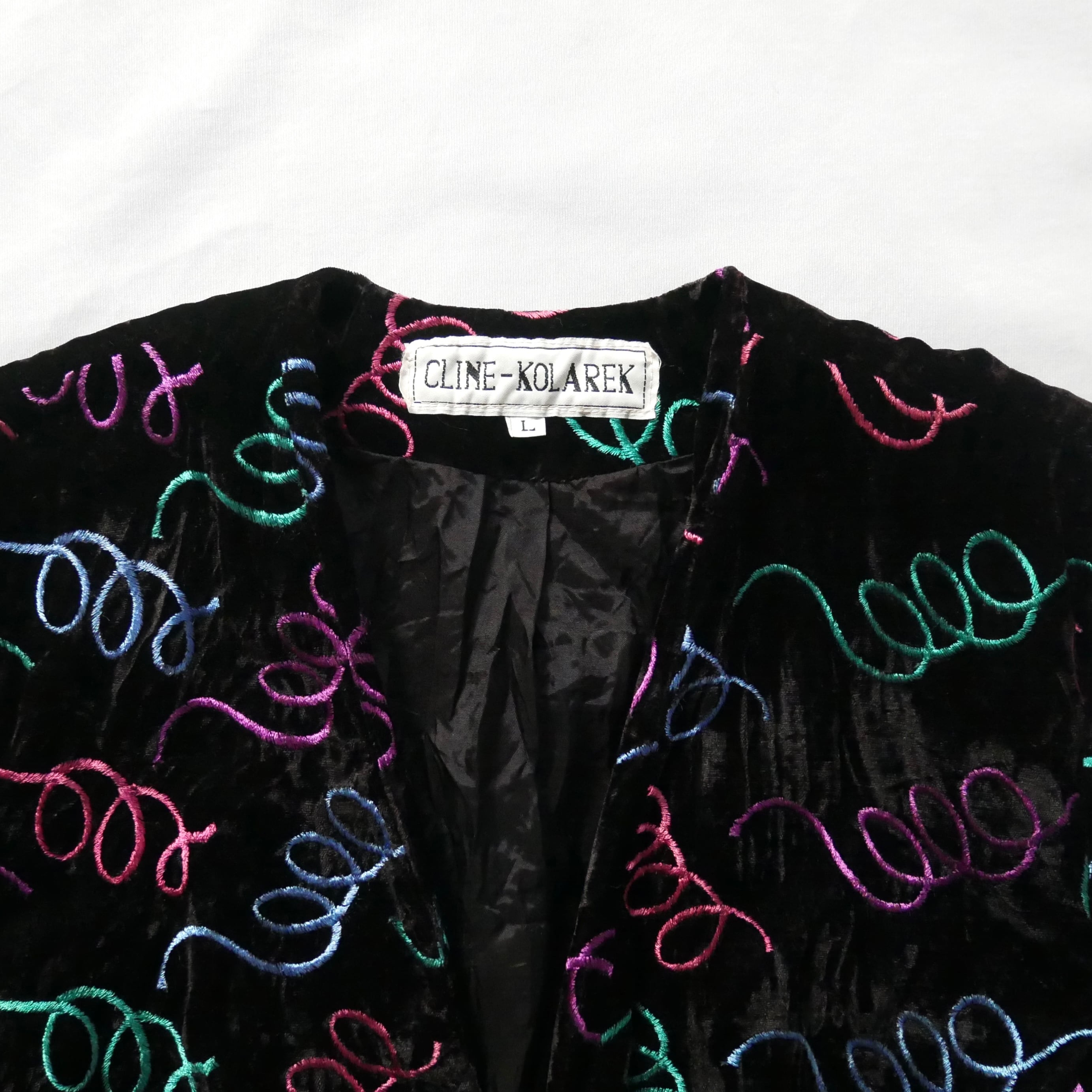 80s vintage cline-kolarek black velour colorful embroidery jacket 80年代 ヴィンテージ アメリカ製 黒ベロア カラフル刺繍 ショート丈 ジャケット