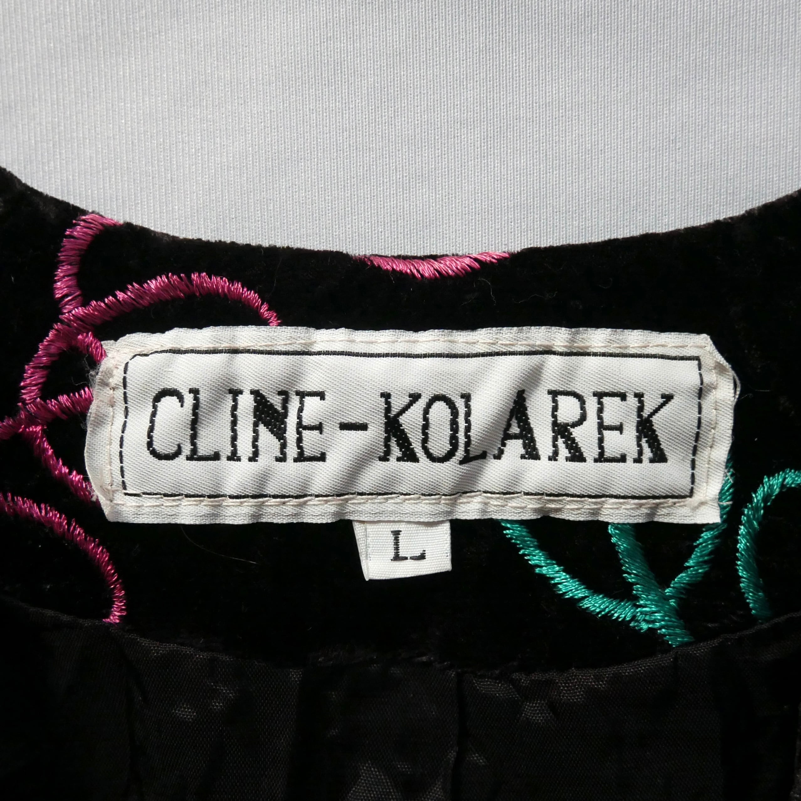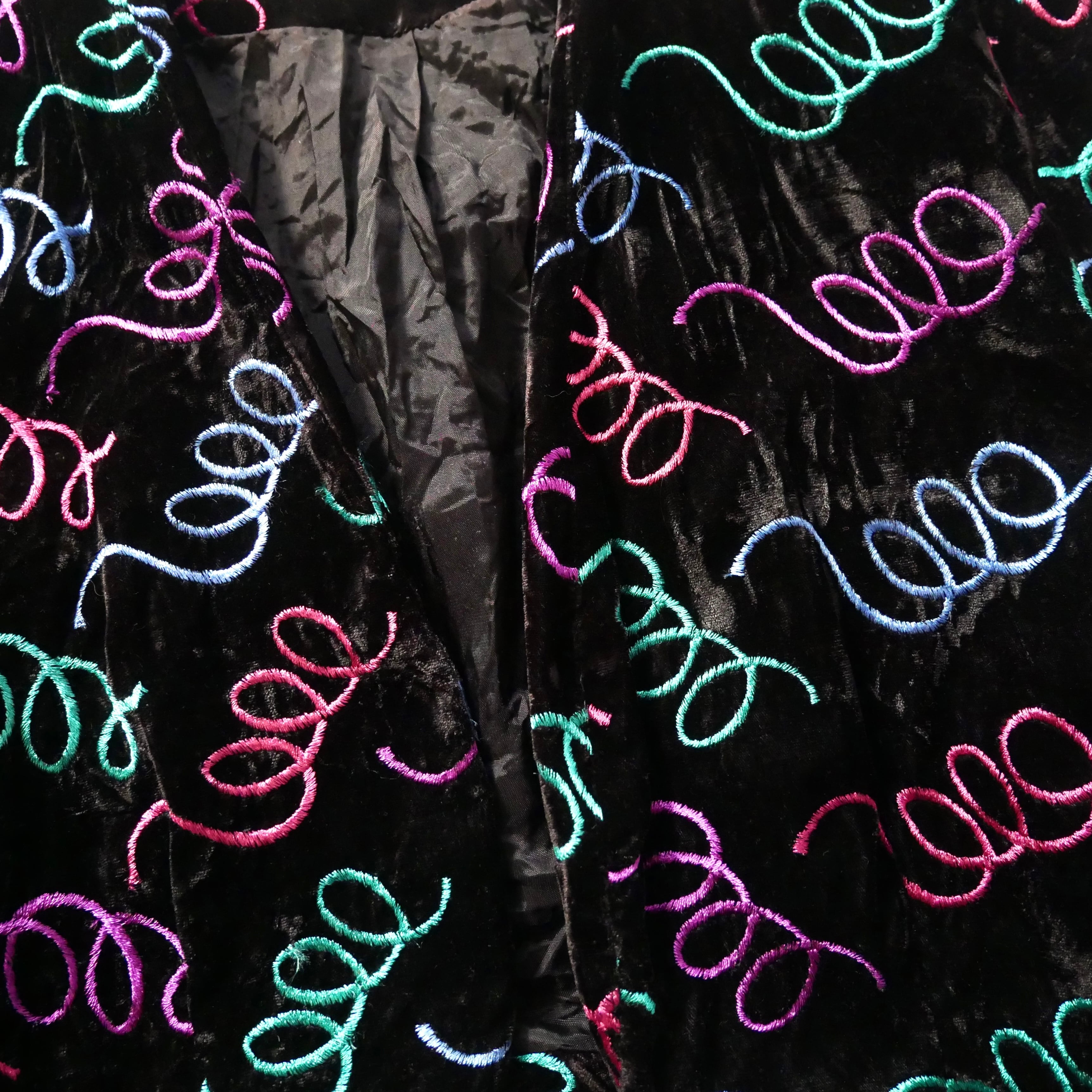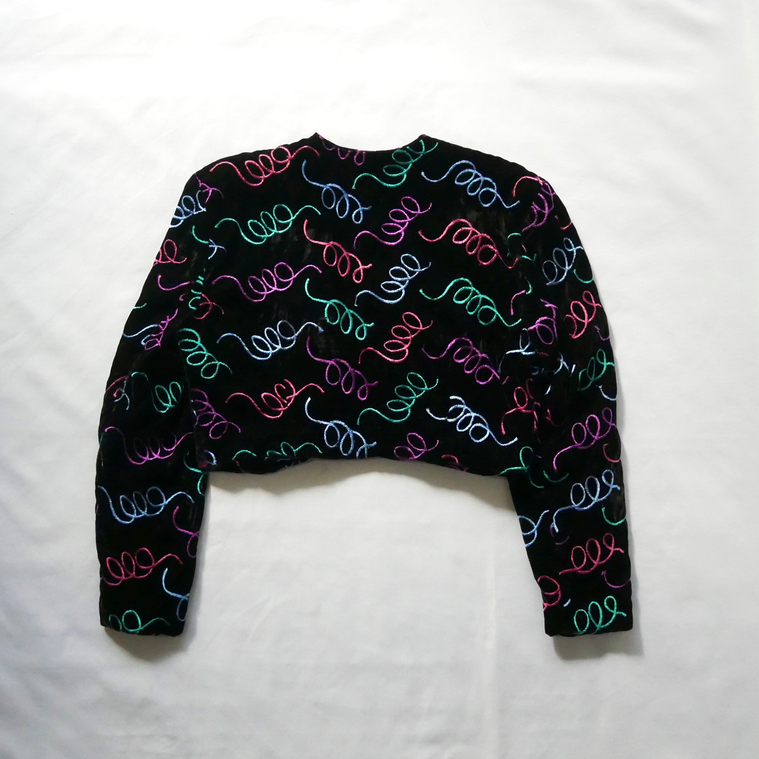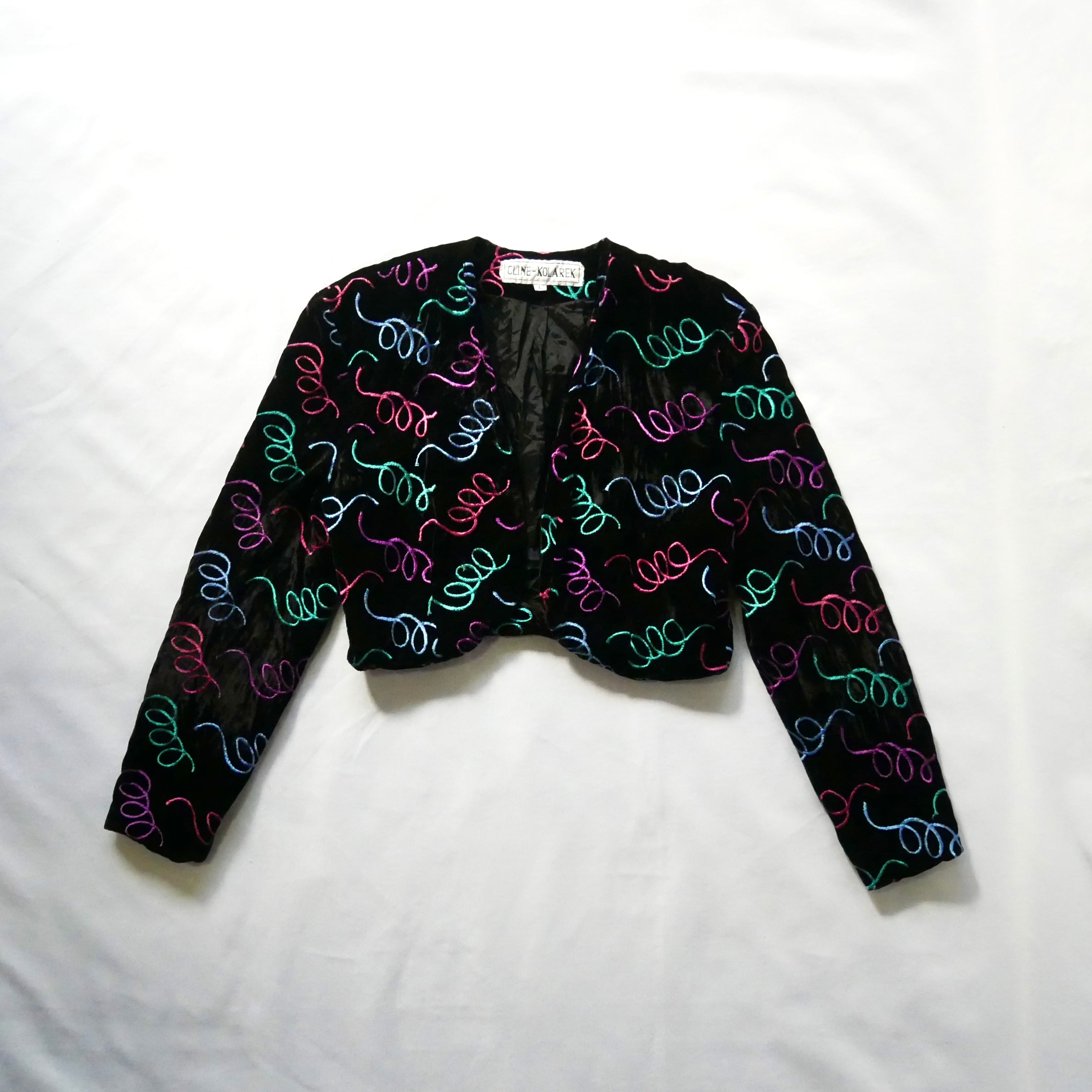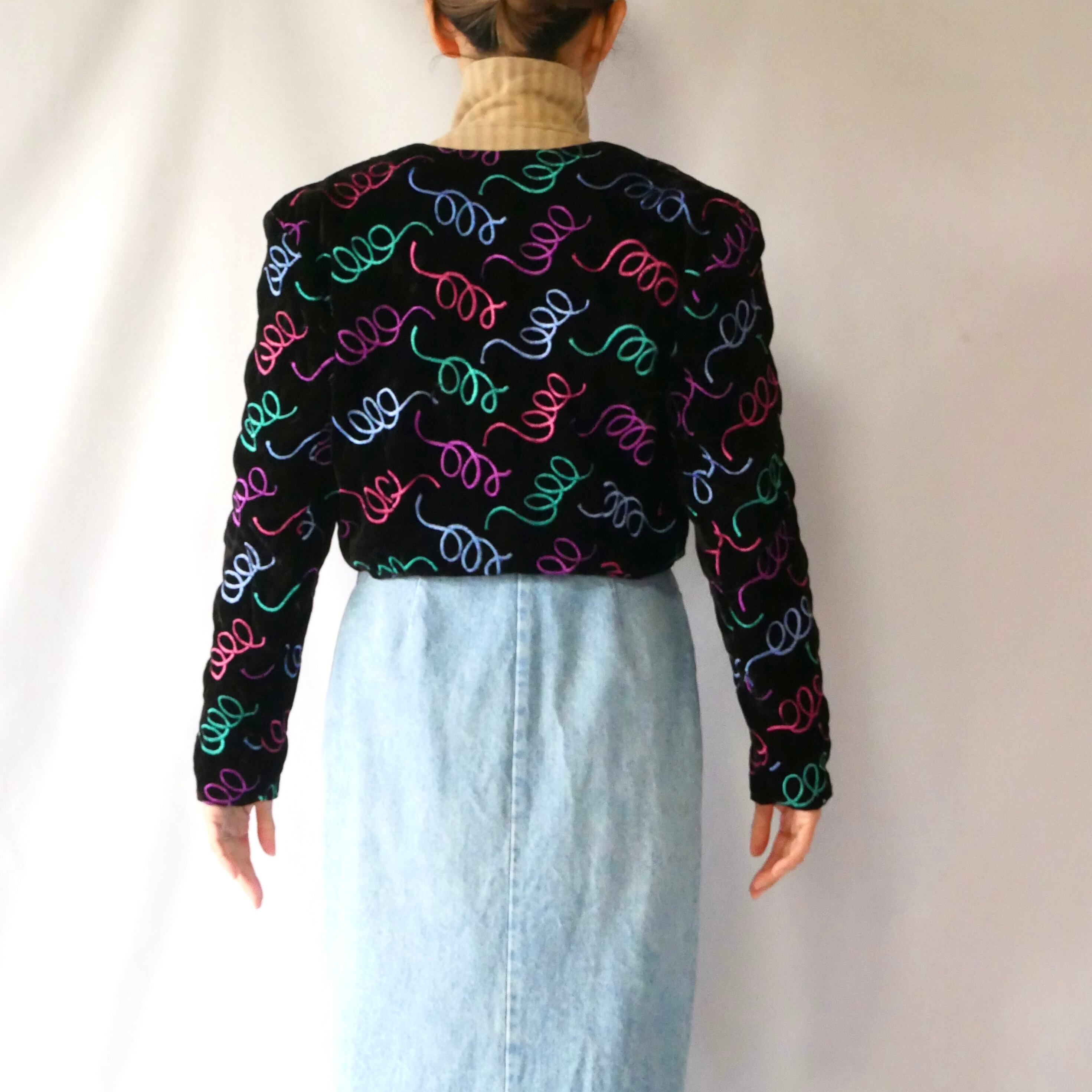80s vintage cline-kolarek black velour colorful embroidery jacket 80年代 ヴィンテージ アメリカ製 黒ベロア カラフル刺繍 ショート丈 ジャケット