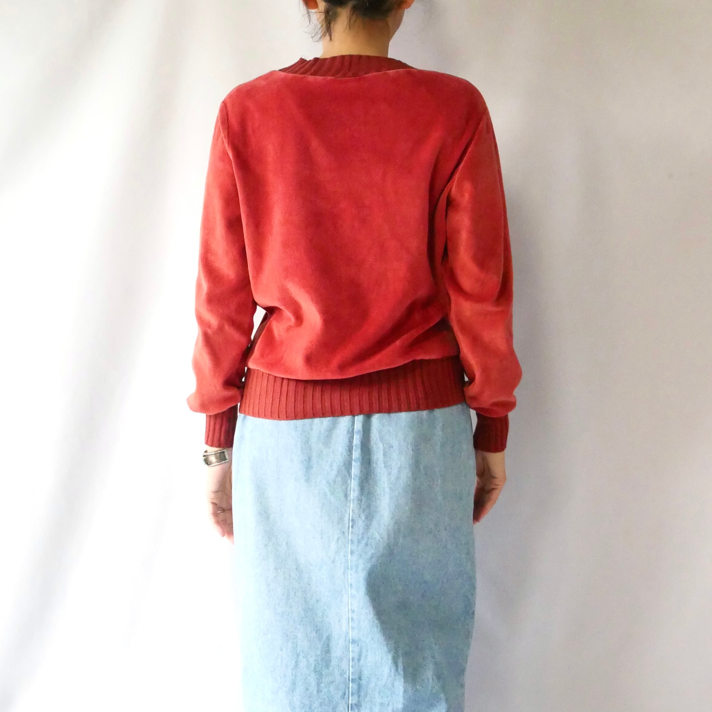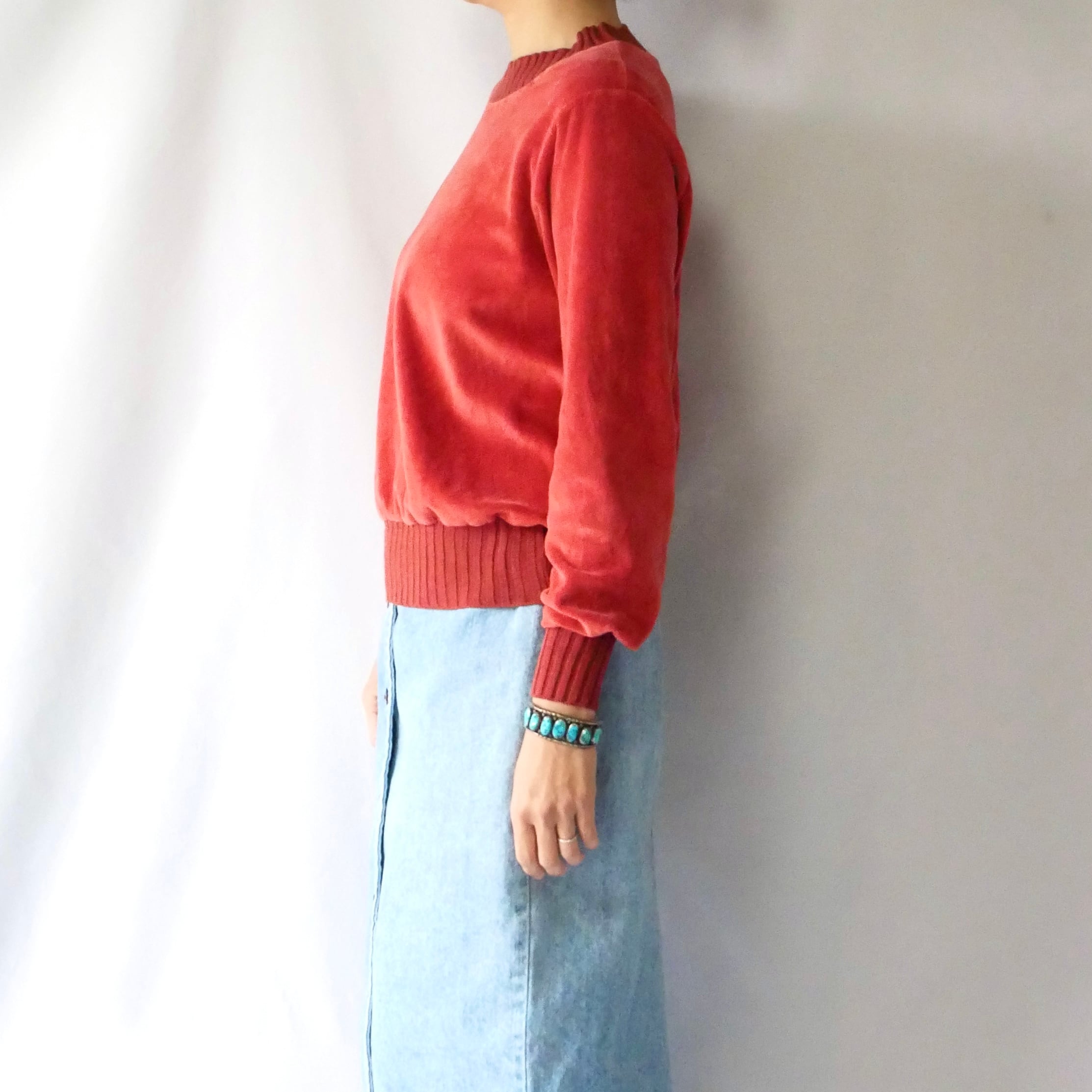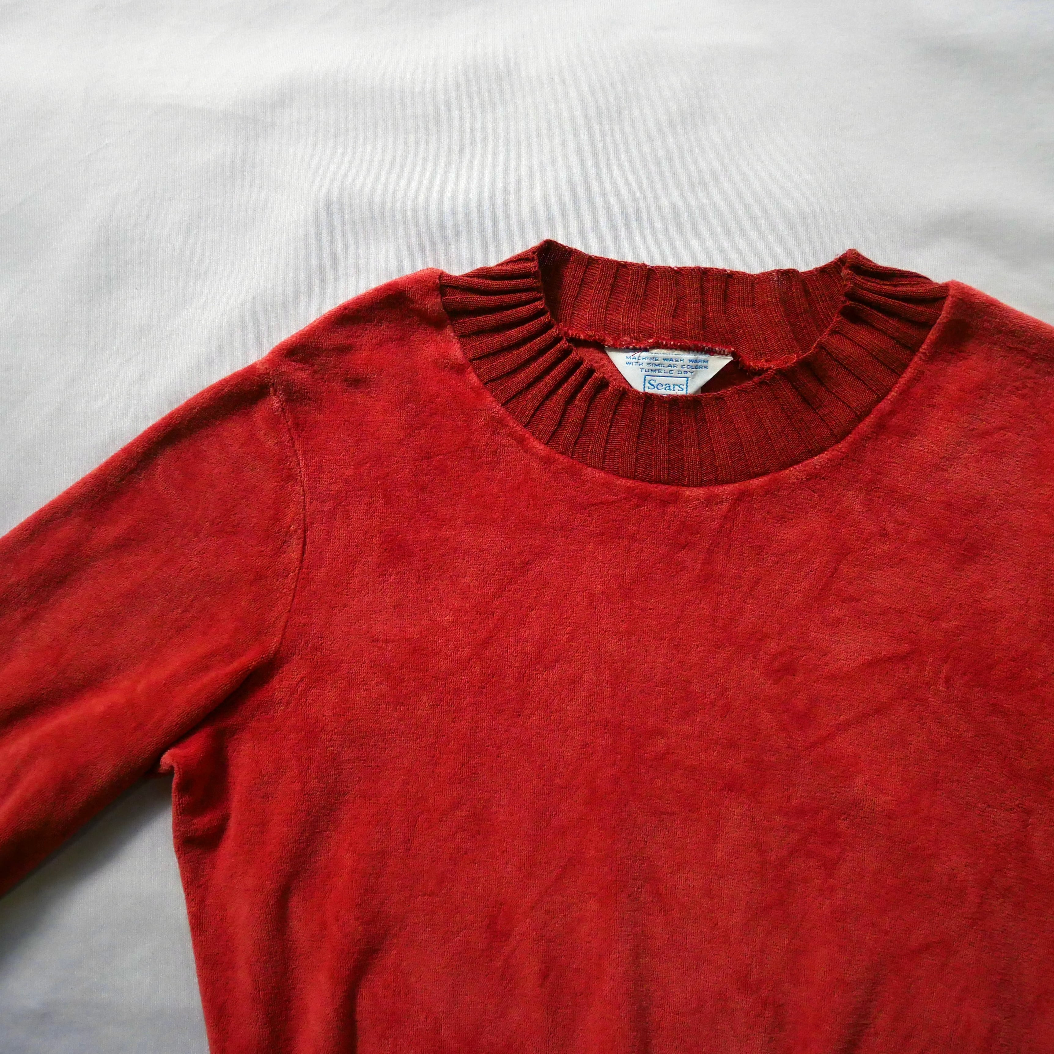 70-80s vintage sears dark orange velour sweater tops ヴィンテージ シアーズ レンガ色 ベロアトップス