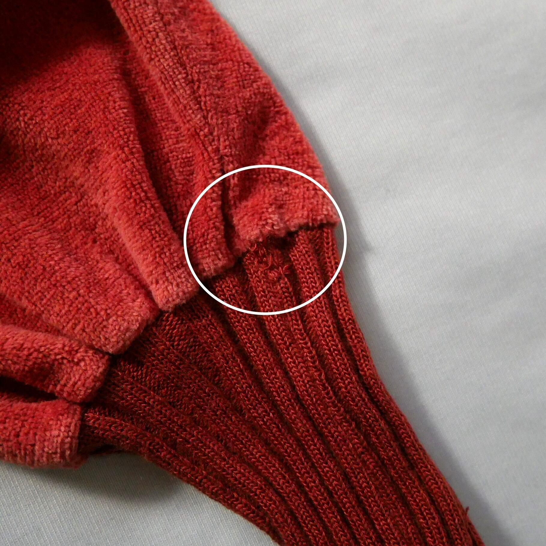 レンガ色のようなダークオレンジに長めのリブが可愛いです。