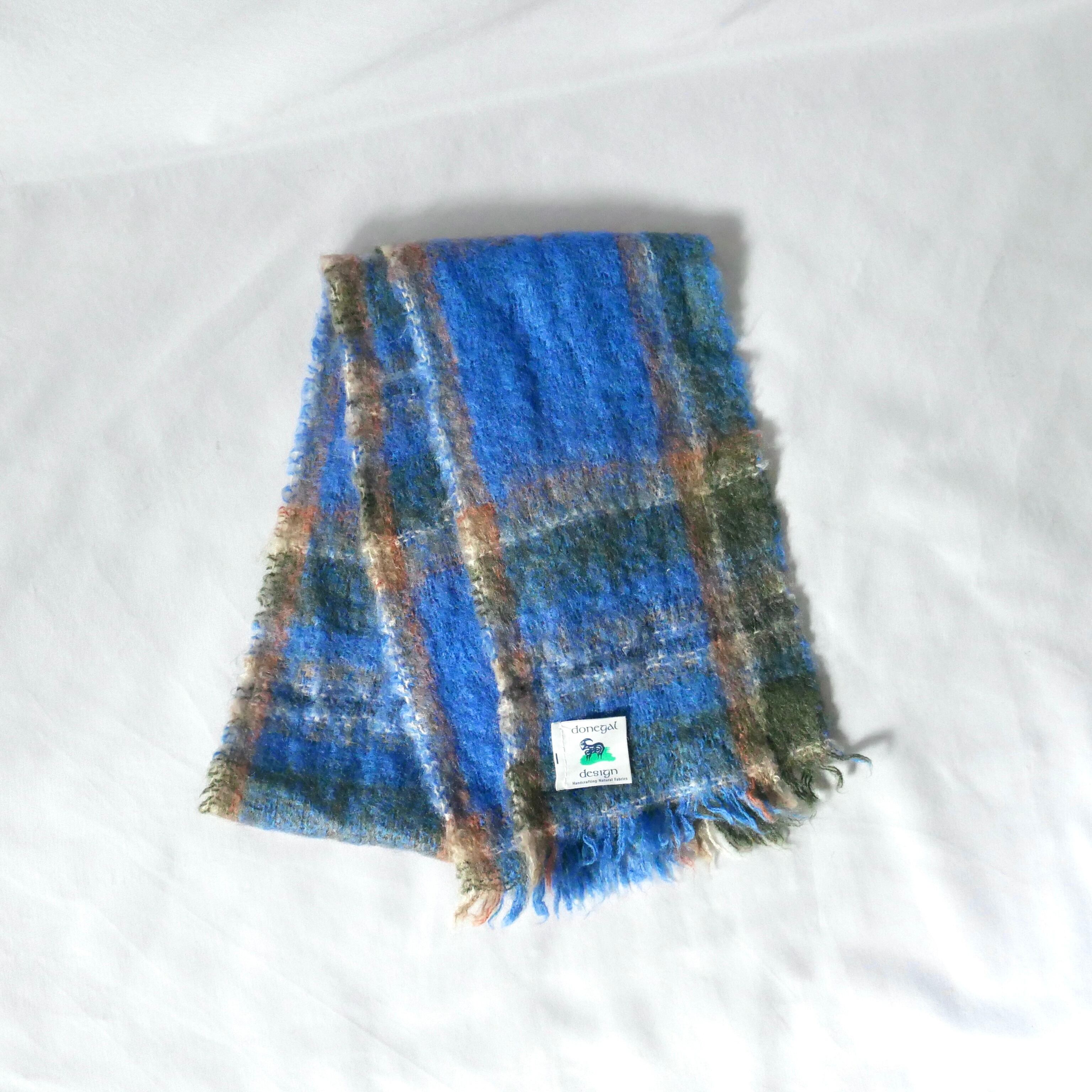 Madein Ireland mohair blue muffler アイルランド製 モヘア ブルーチェック マフラー