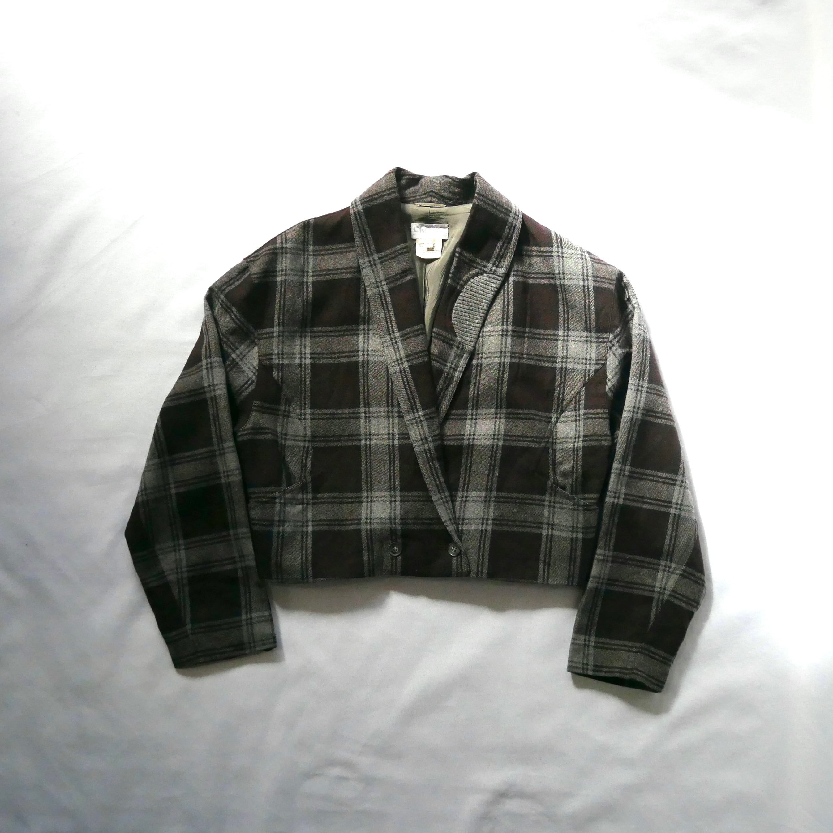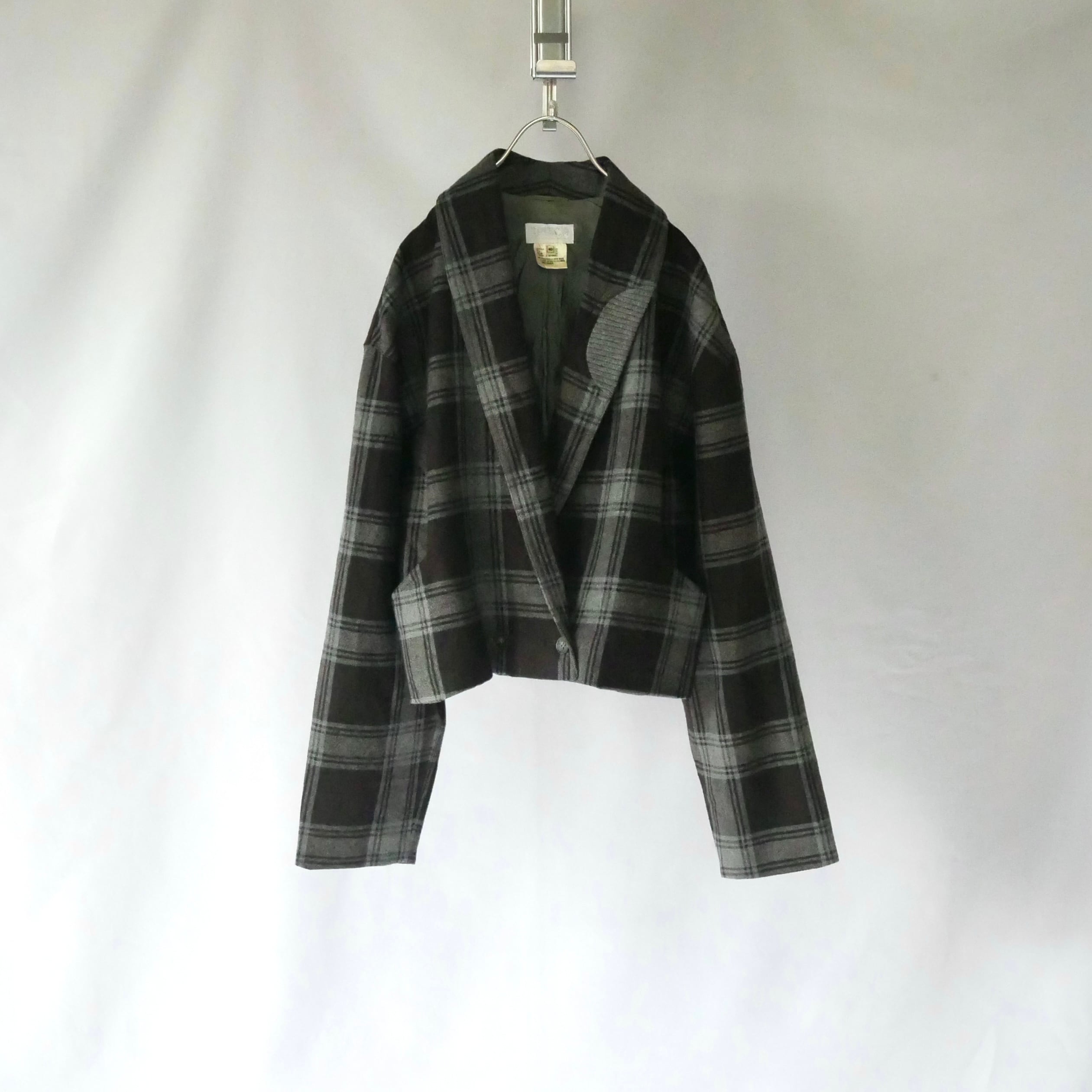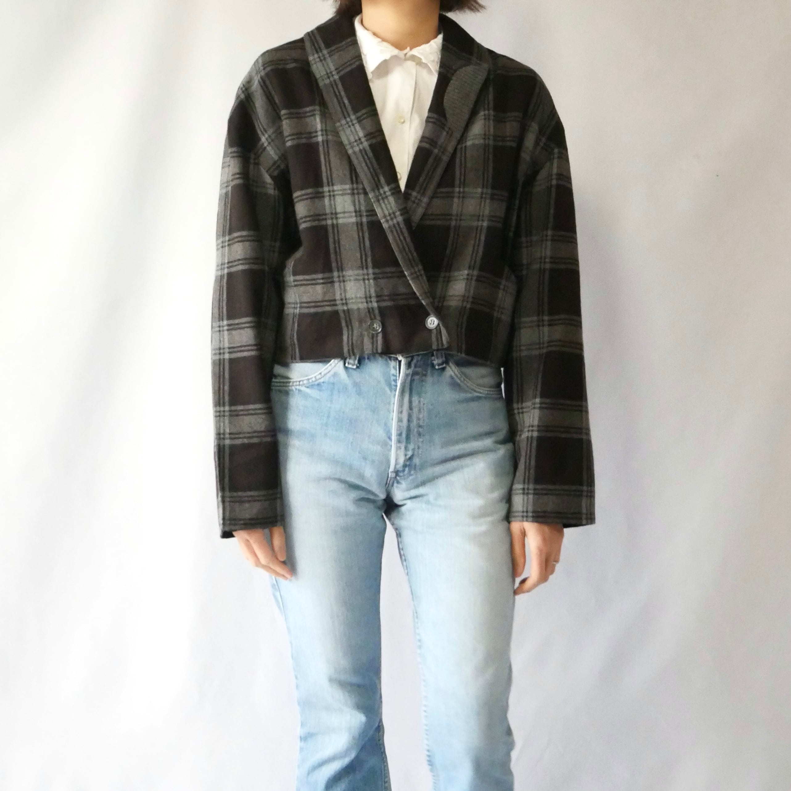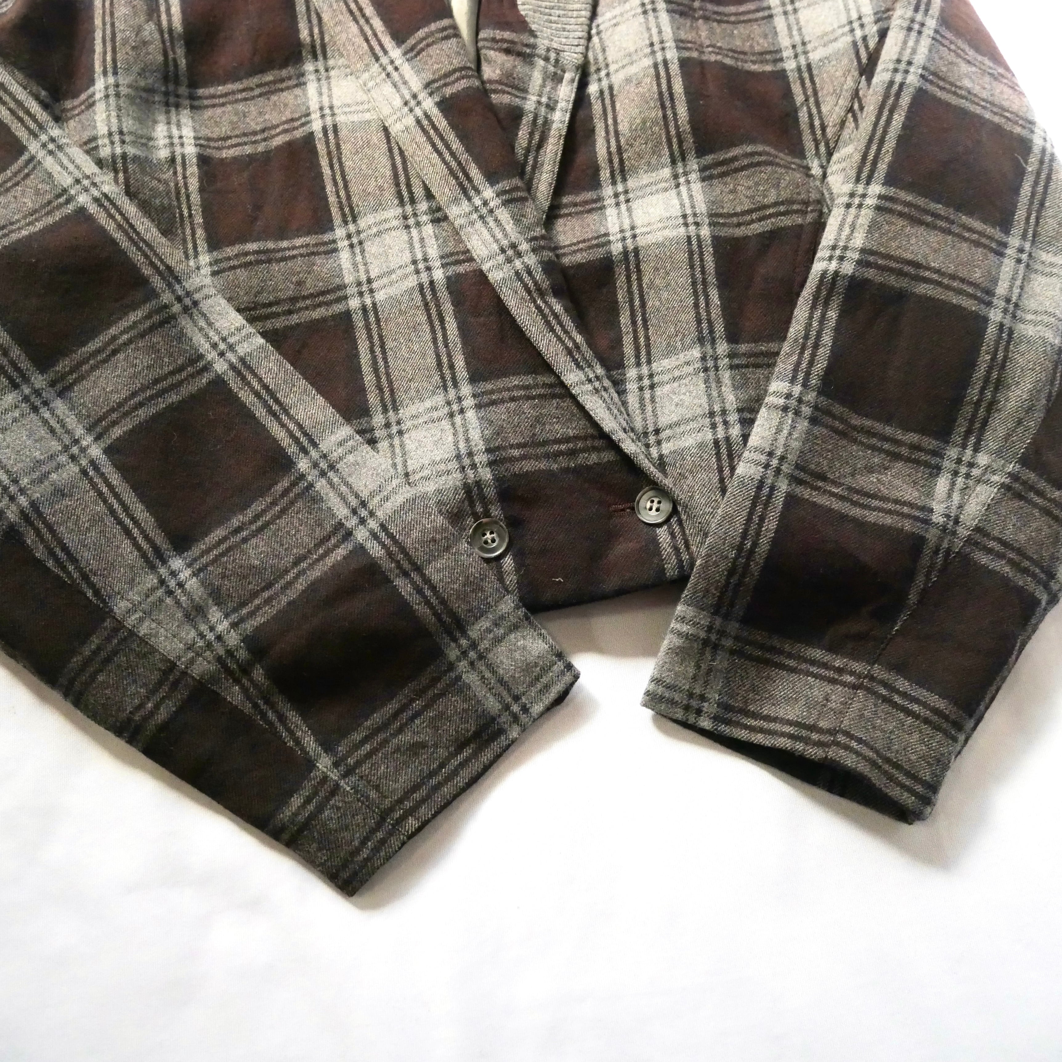 80s madein W.Germany woolcheck short jacket 80年代 西ドイツ製 ブラウンチェック ウール ショート丈ジャケット