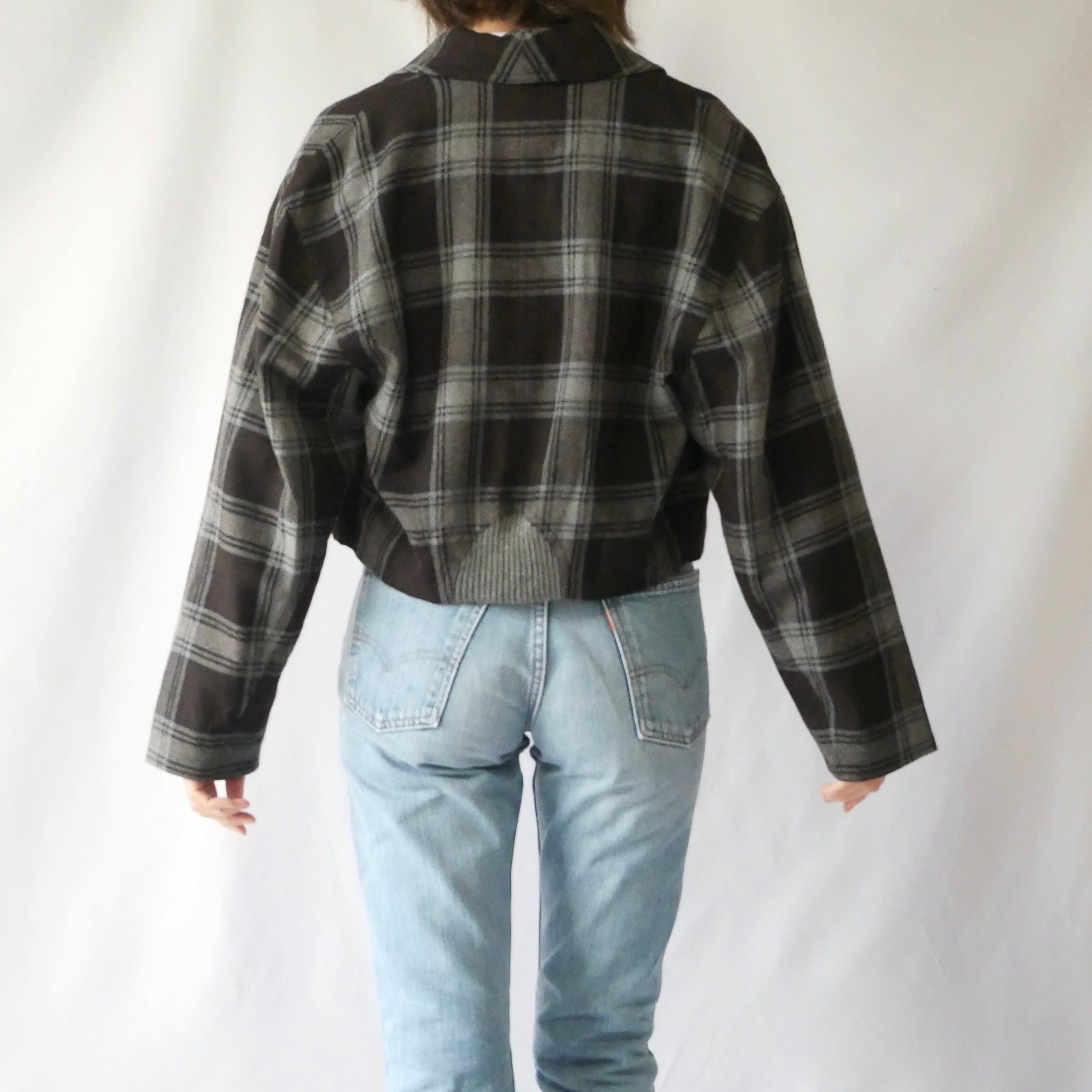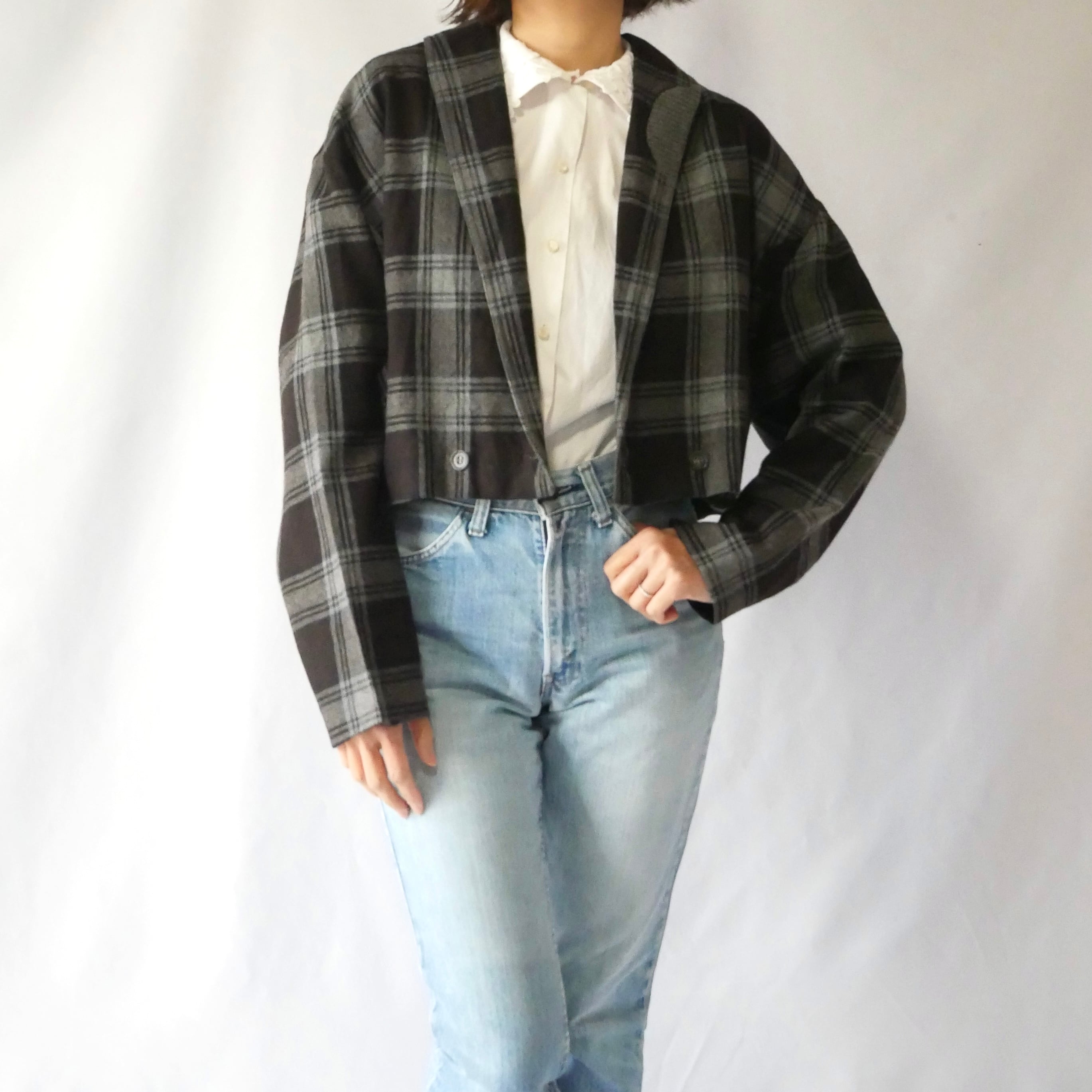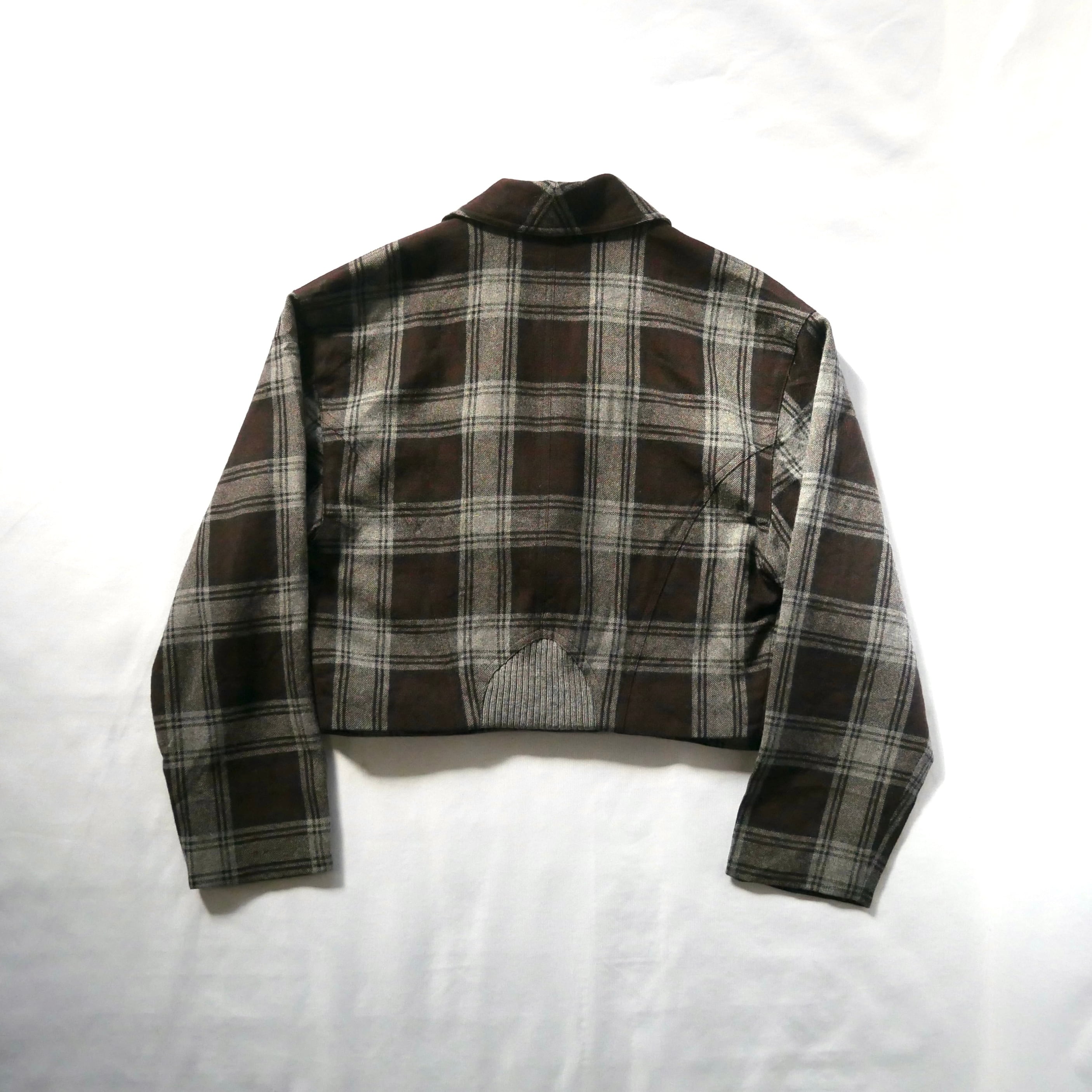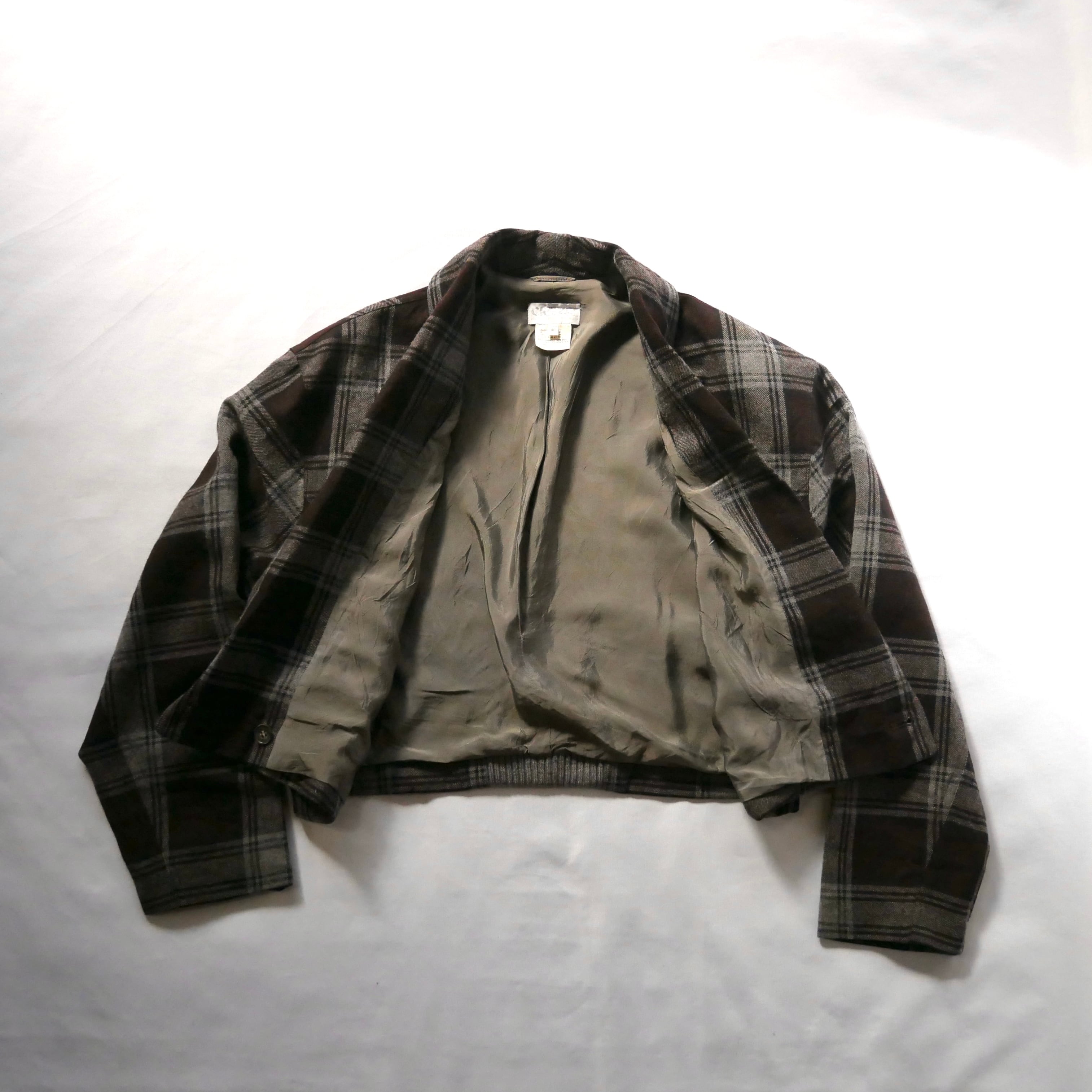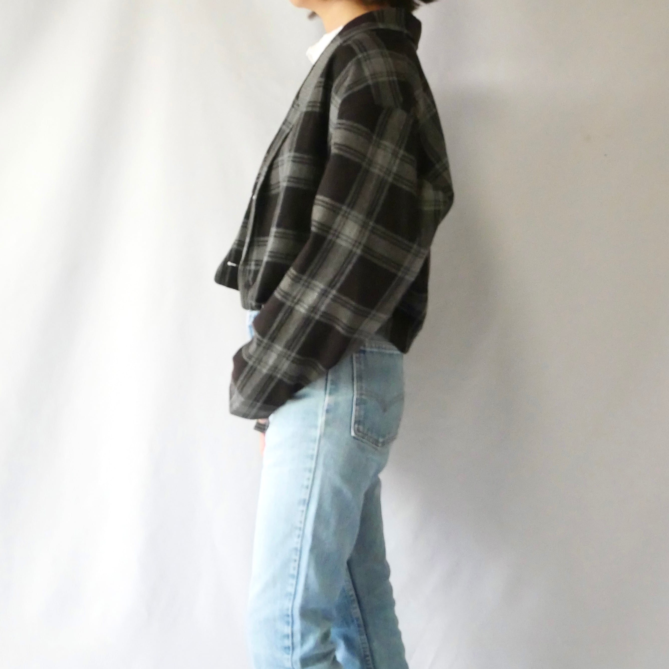80s madein W.Germany woolcheck short jacket 80年代 西ドイツ製 ブラウンチェック ウール ショート丈ジャケット