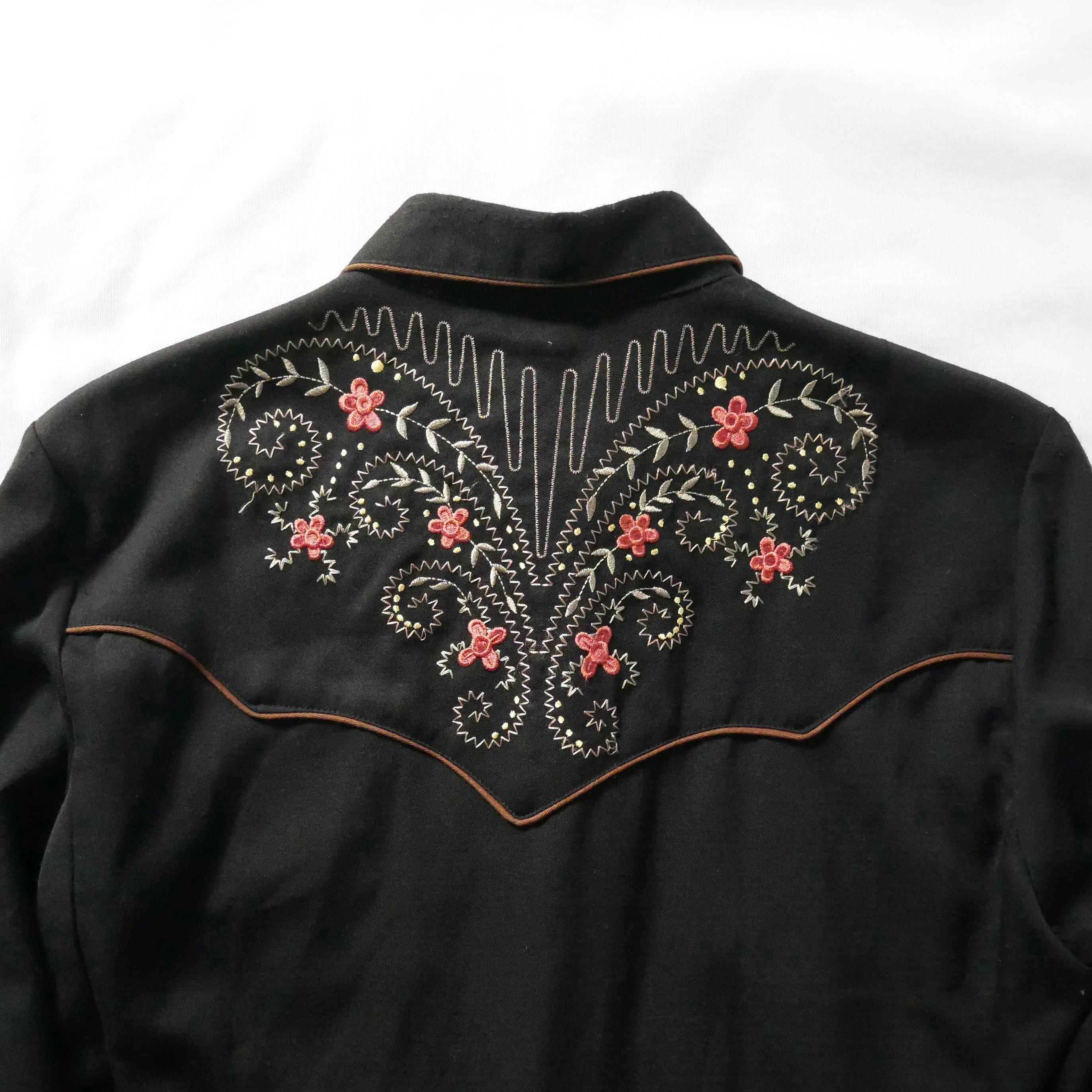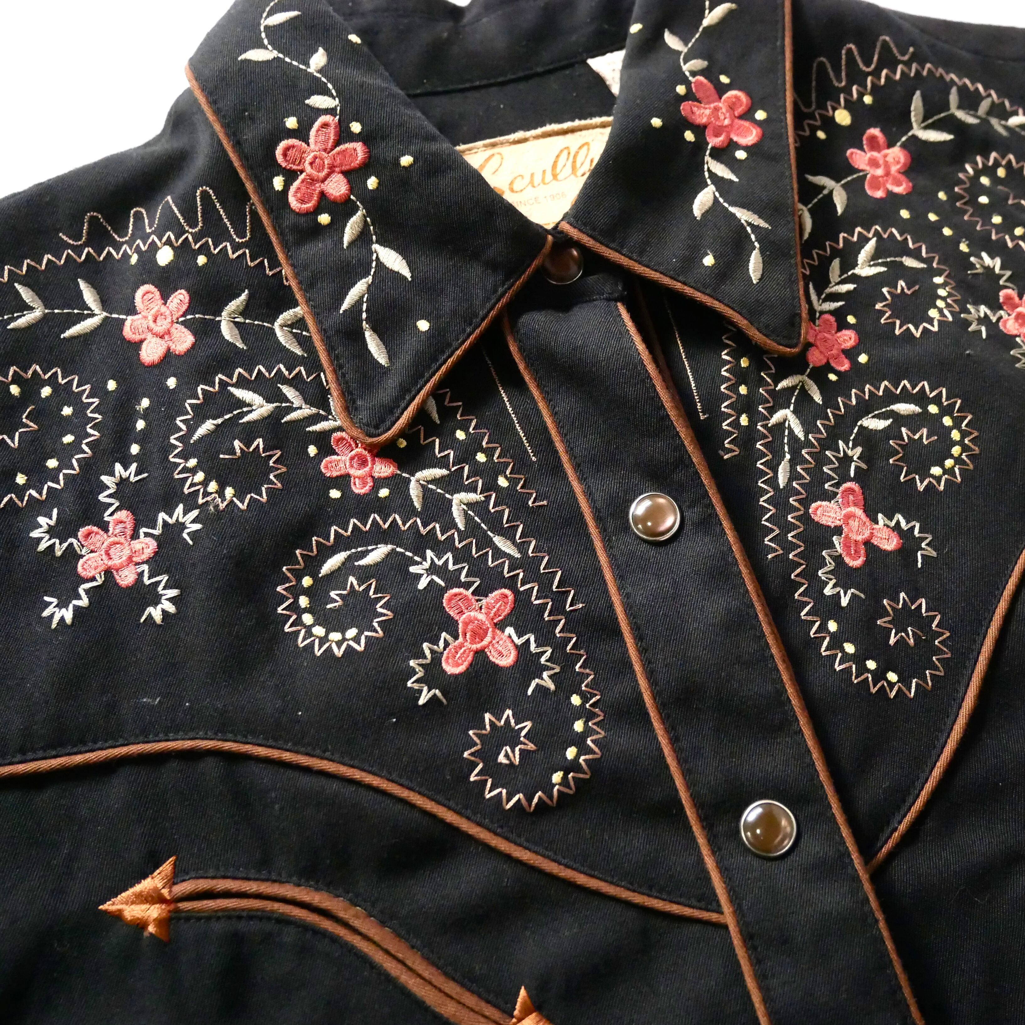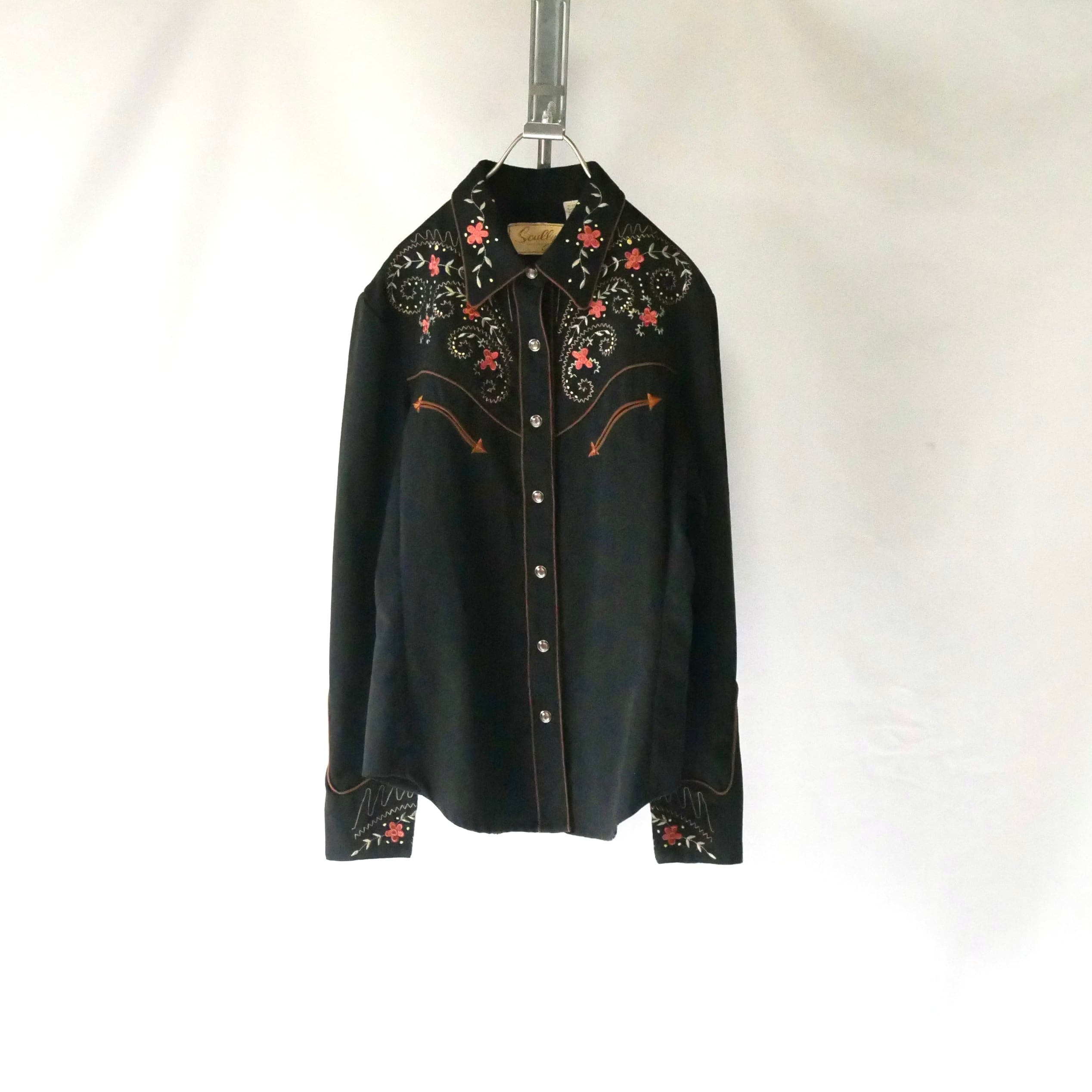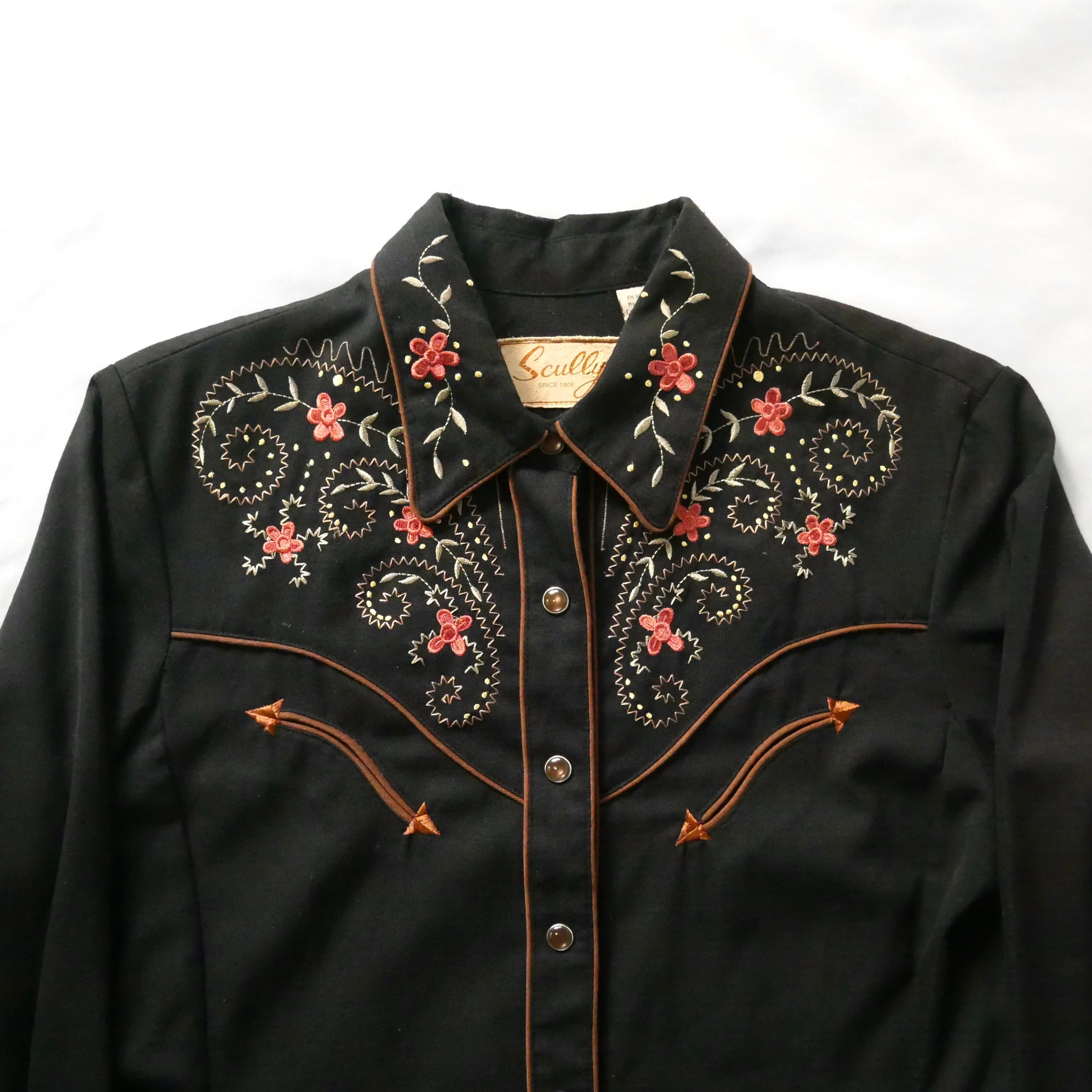 90s scully black floral embroidery western shirt 90年代 スカリー 黒 刺繍 ウエスタンシャツ