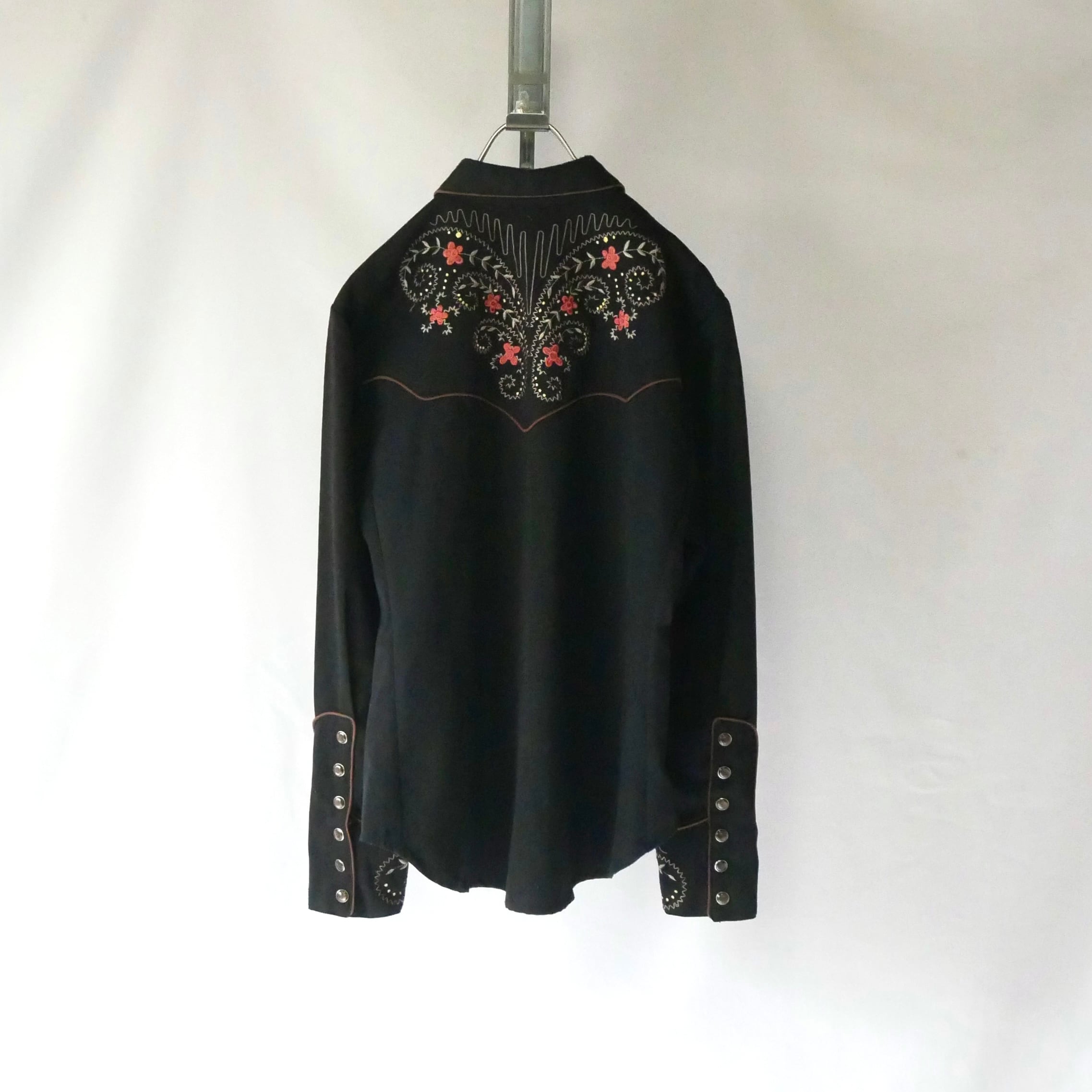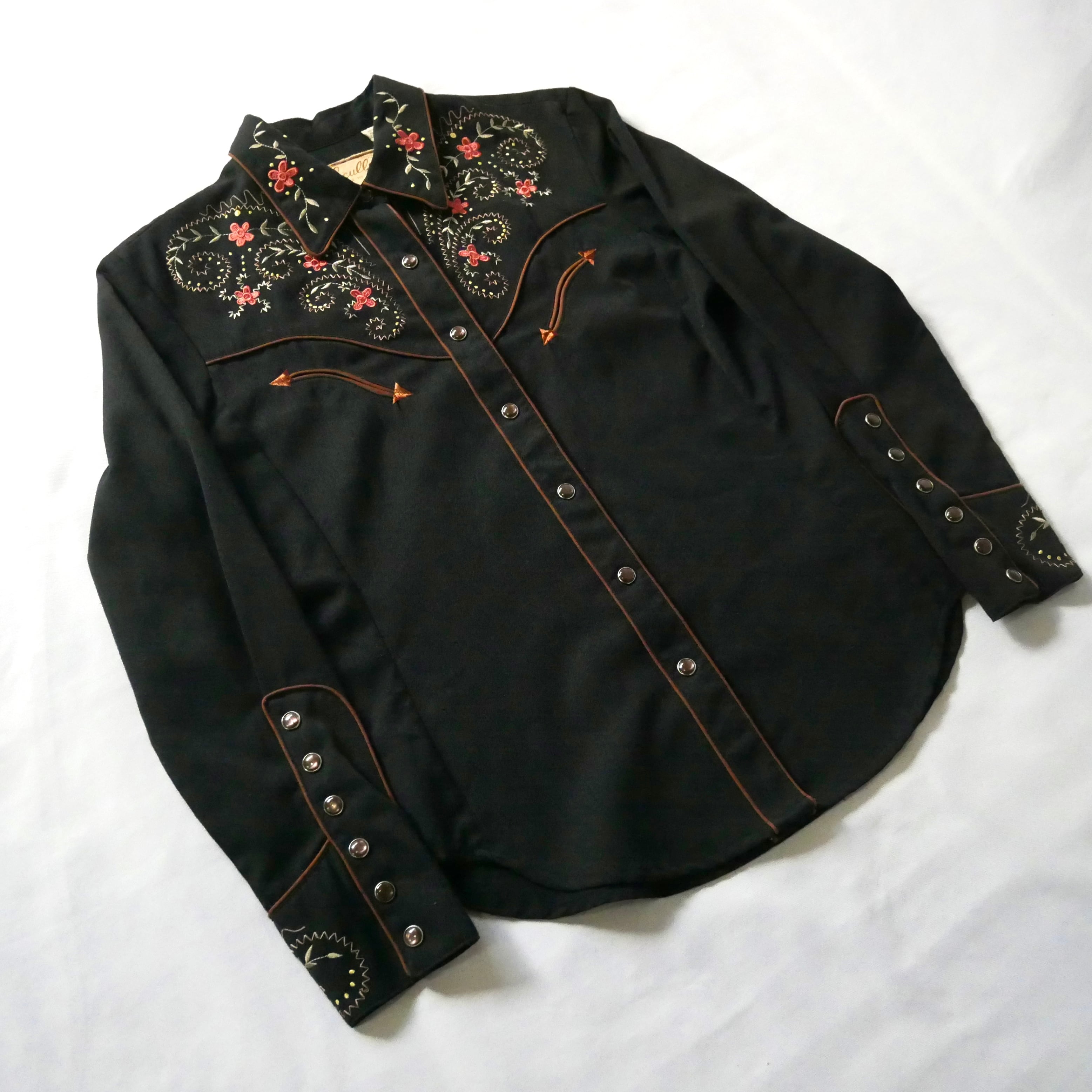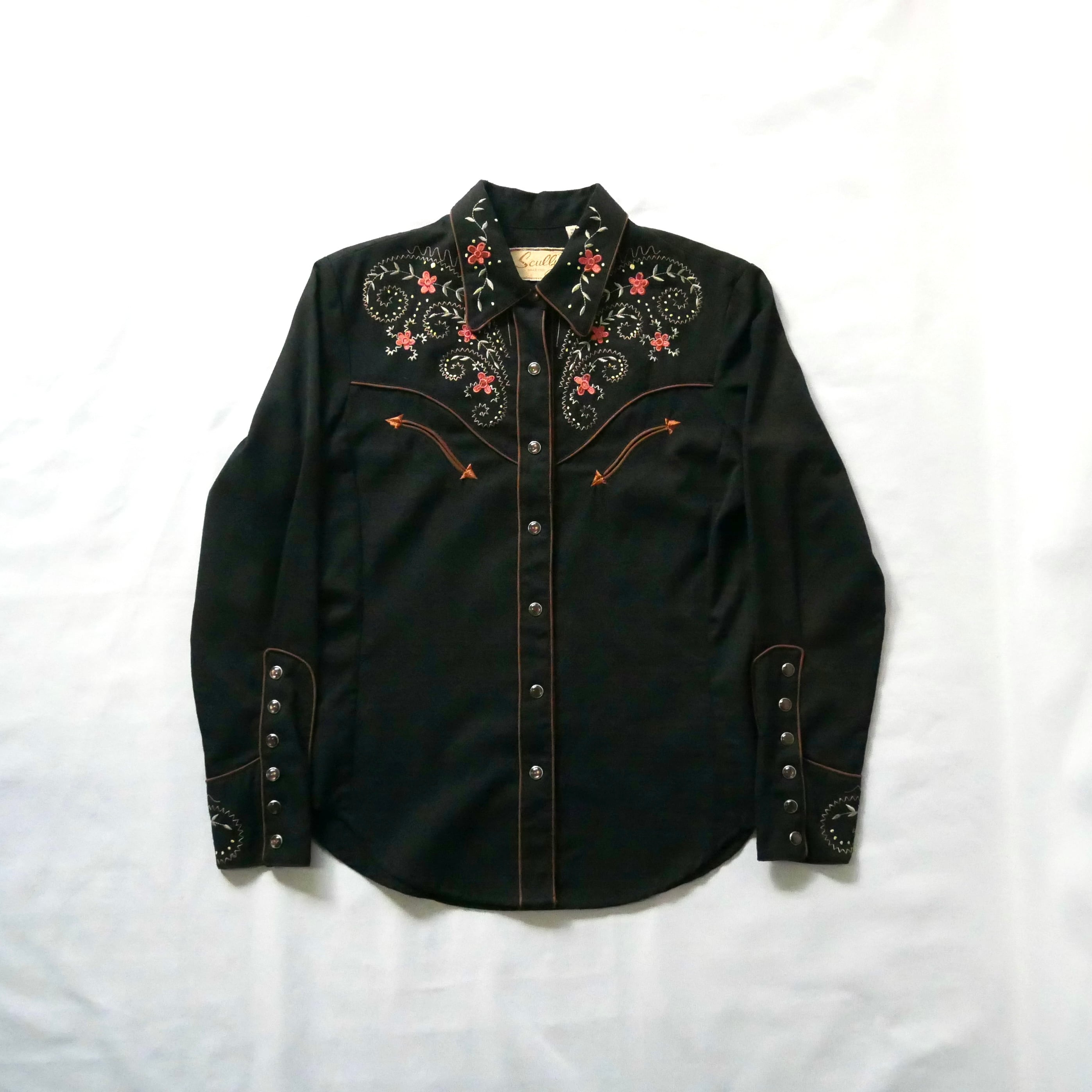 90s scully black floral embroidery western shirt 90年代 スカリー 黒 刺繍 ウエスタンシャツ